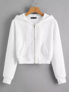 للنساء - سترة بغطاء للرأس بجيب الكنغر وسحاب ورباط