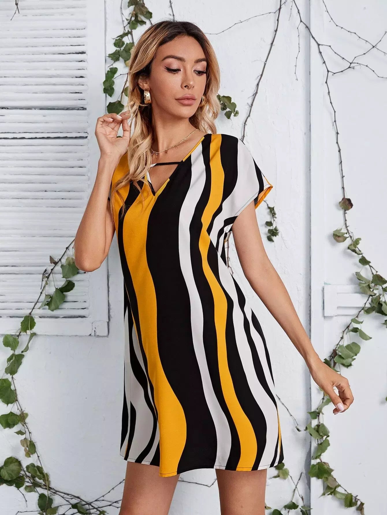 فستان برقبة بفتحة رقبة بفتحة رقبة ملون