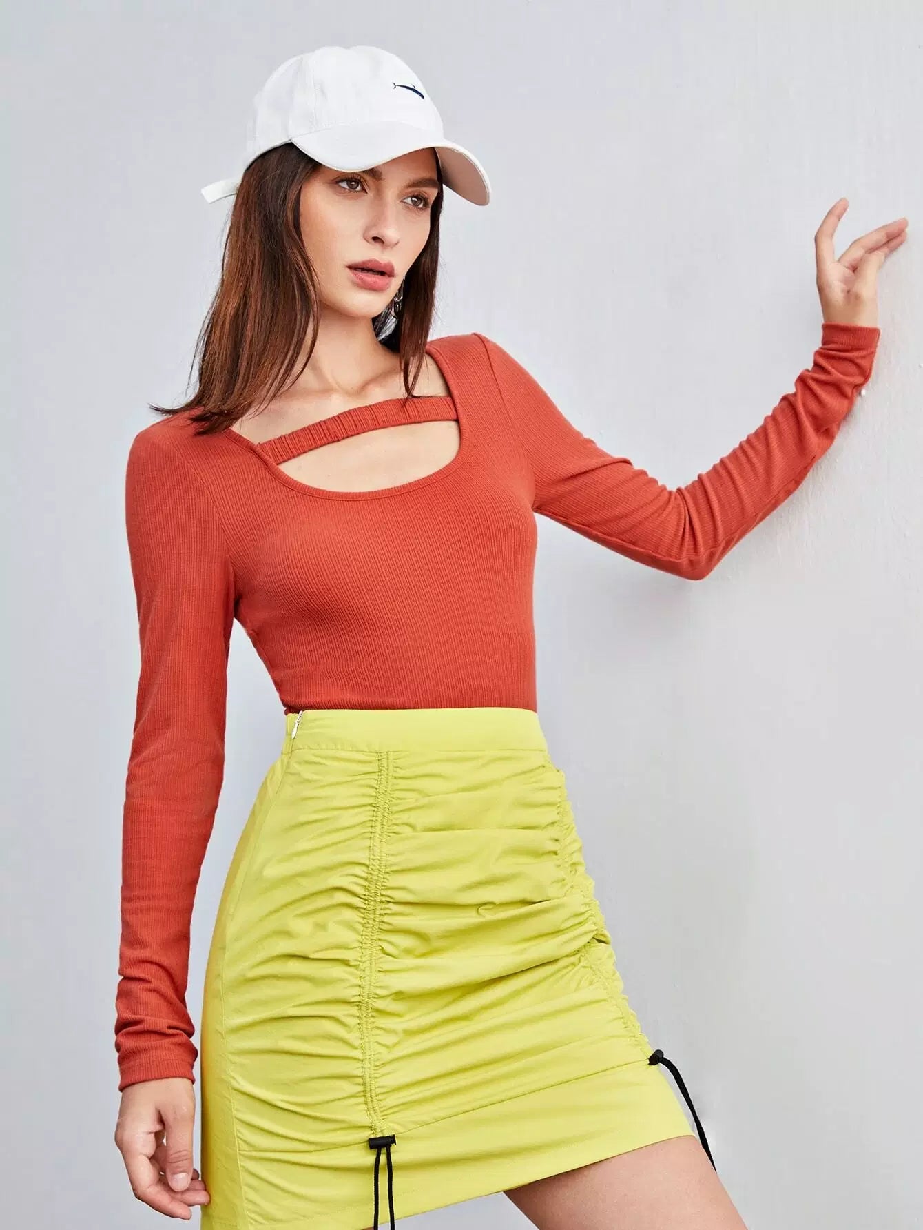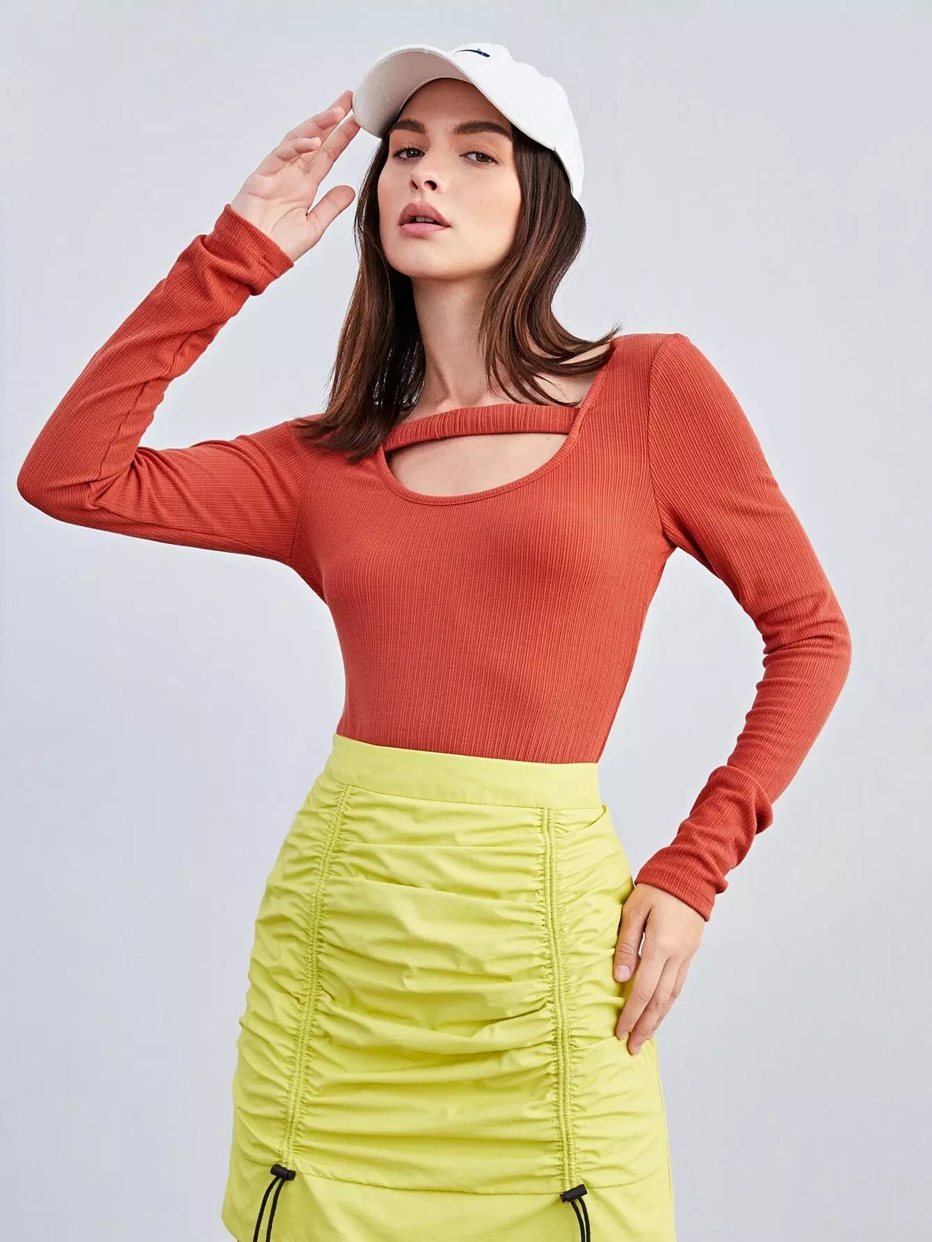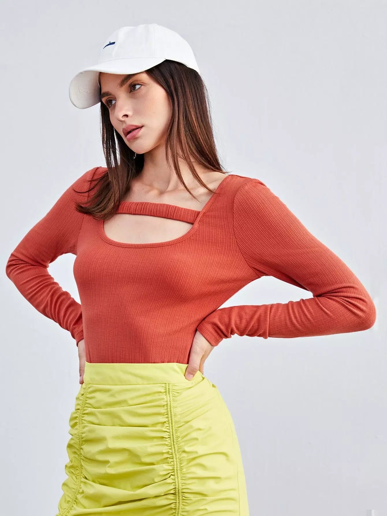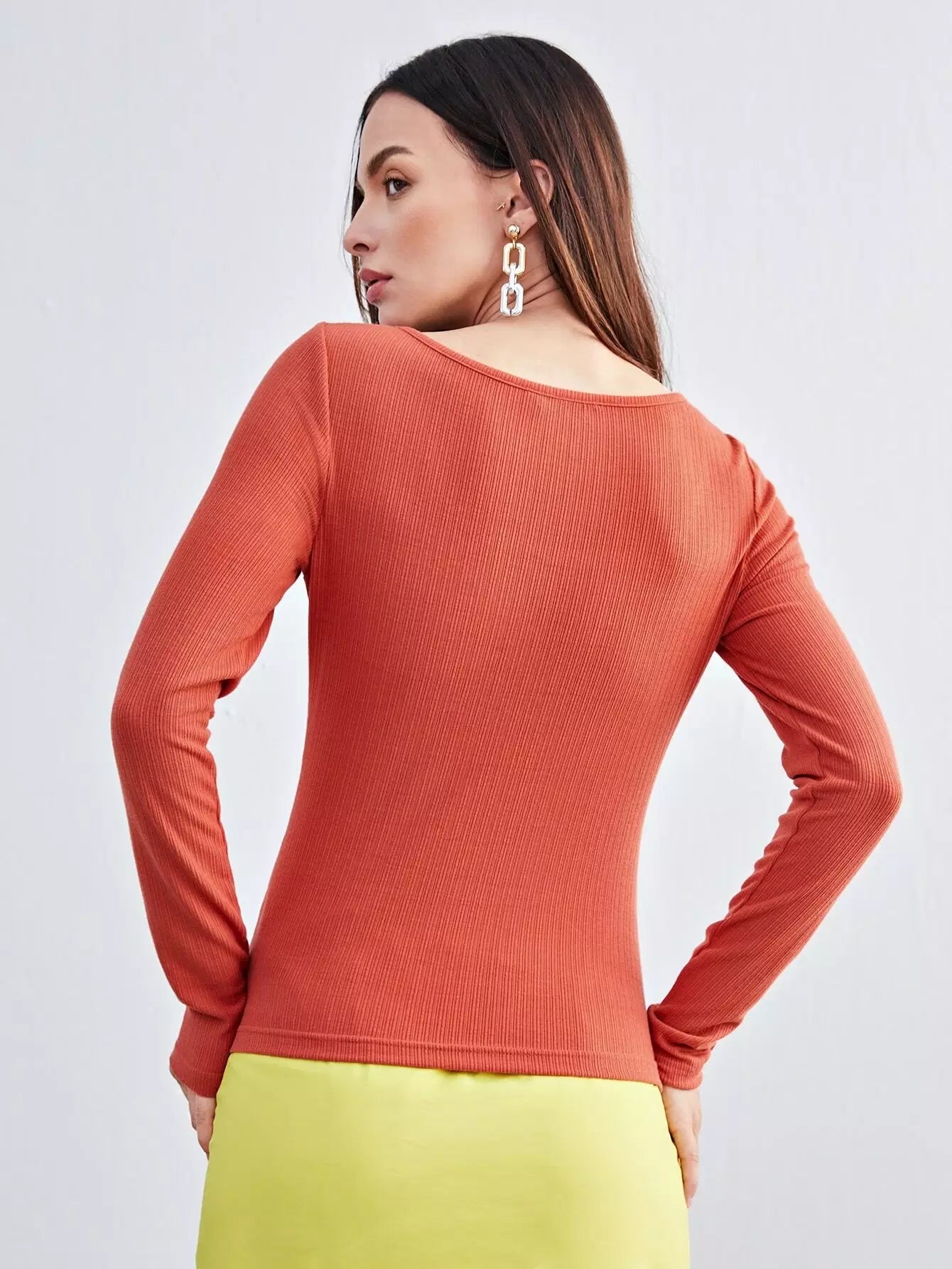 تي شيرت محبوك بفتحة رقبة على شكل ثقب المفتاح