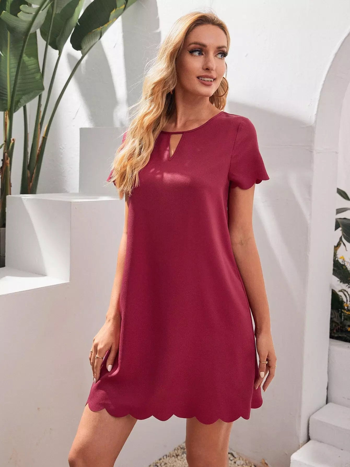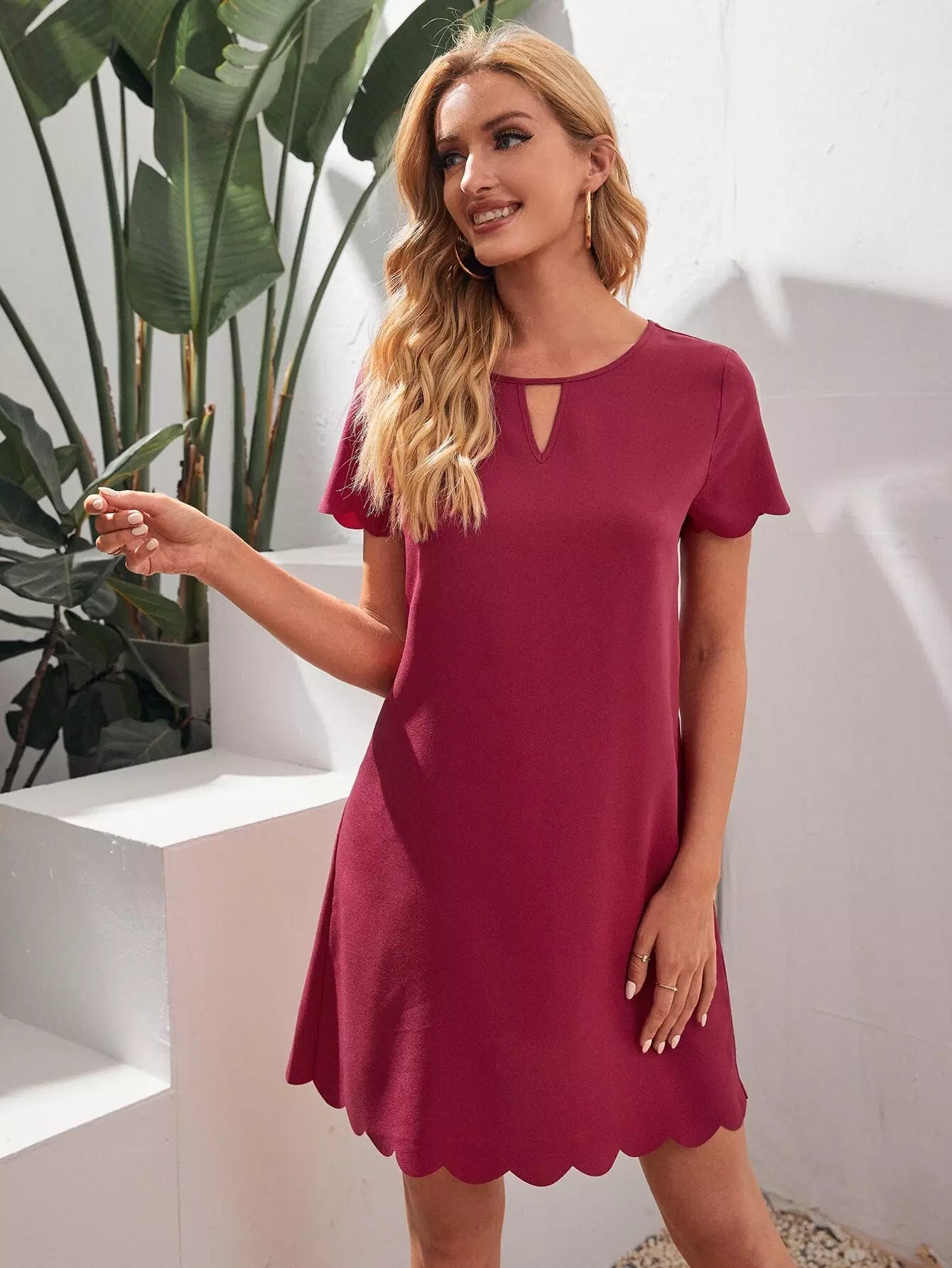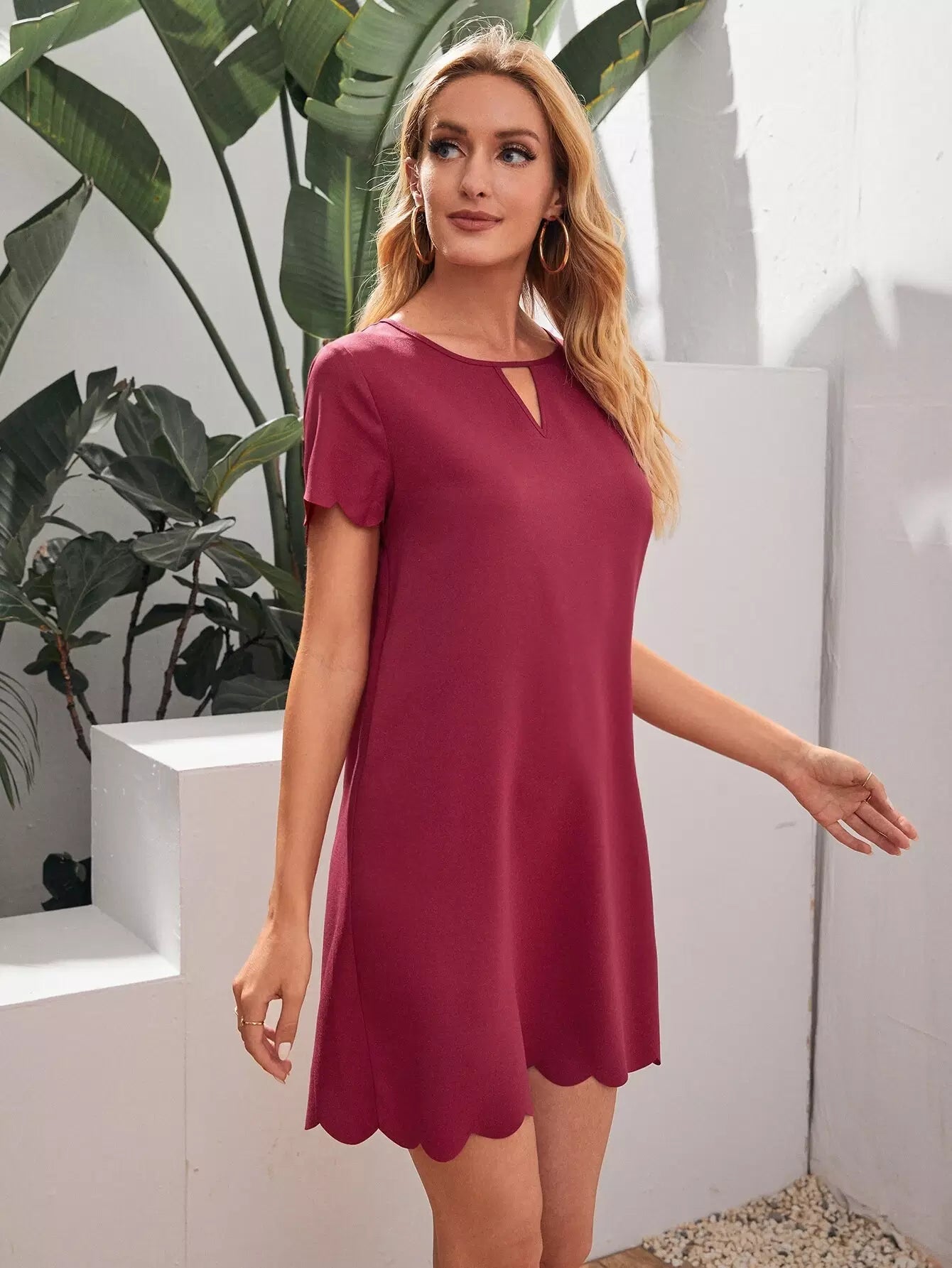 فستان برقبة بفتحة عنق بفتحة رقبة على شكل صدفة