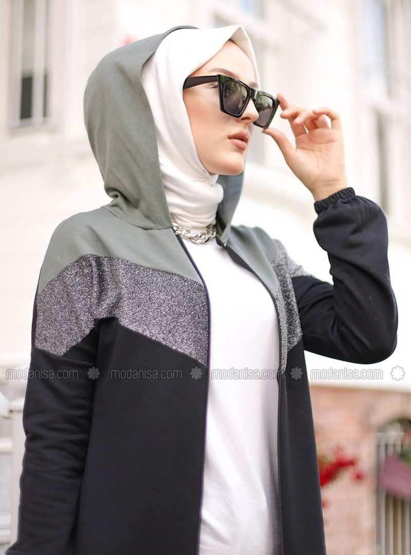 الكاكي الأسود المعطف الخفيف غير المبطنة