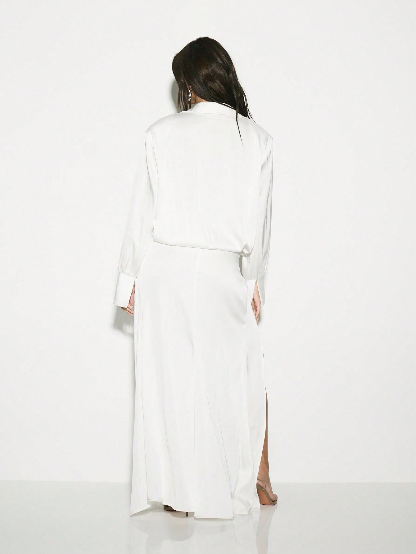 فستان ماكسي أنيق بياقة منخفضة وأكمام طويلة مناسب للسهرة الرسمية وحفلات الزفاف وخصر مجمع ومناسبات خاصة من مجموعة فاخرة