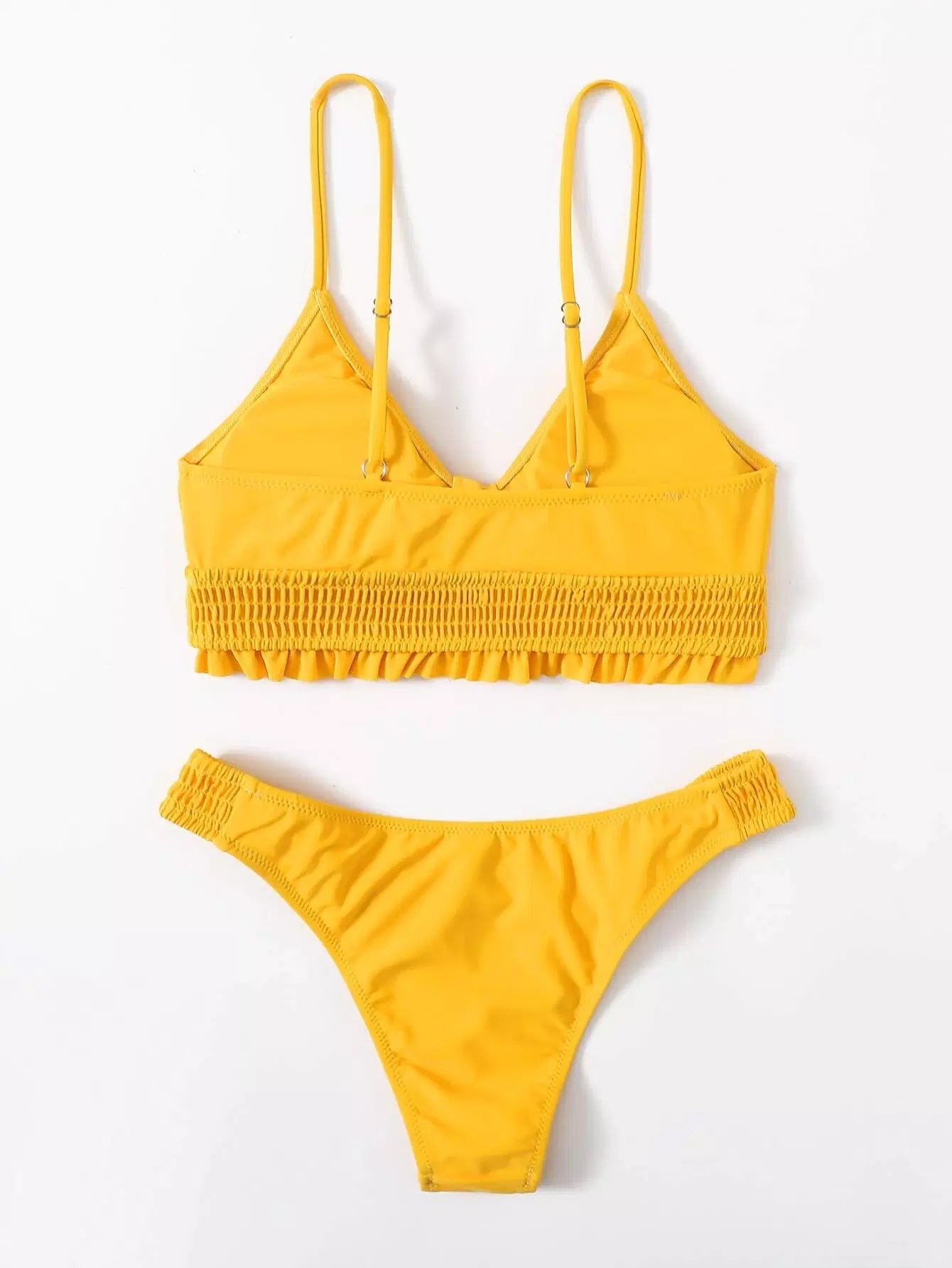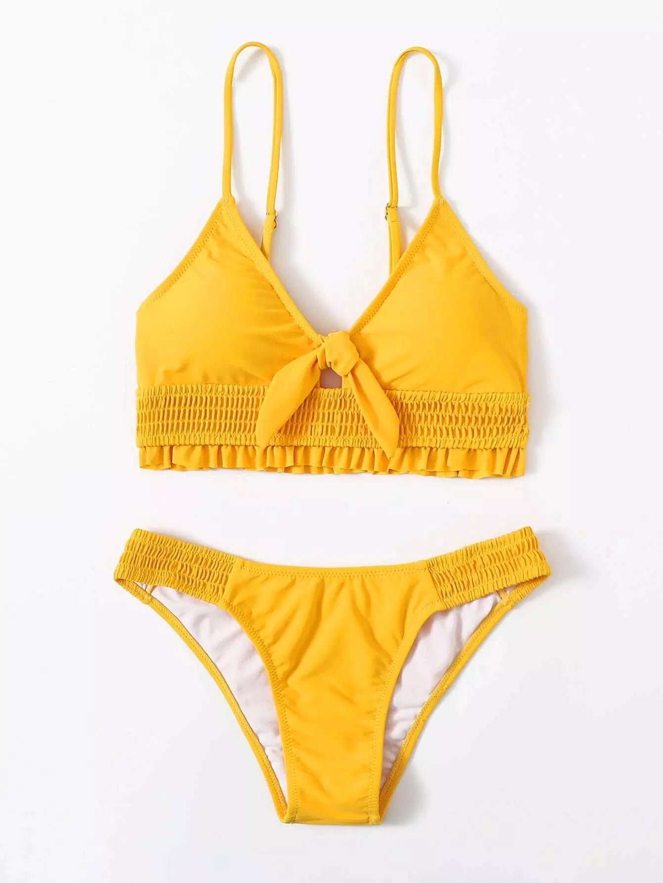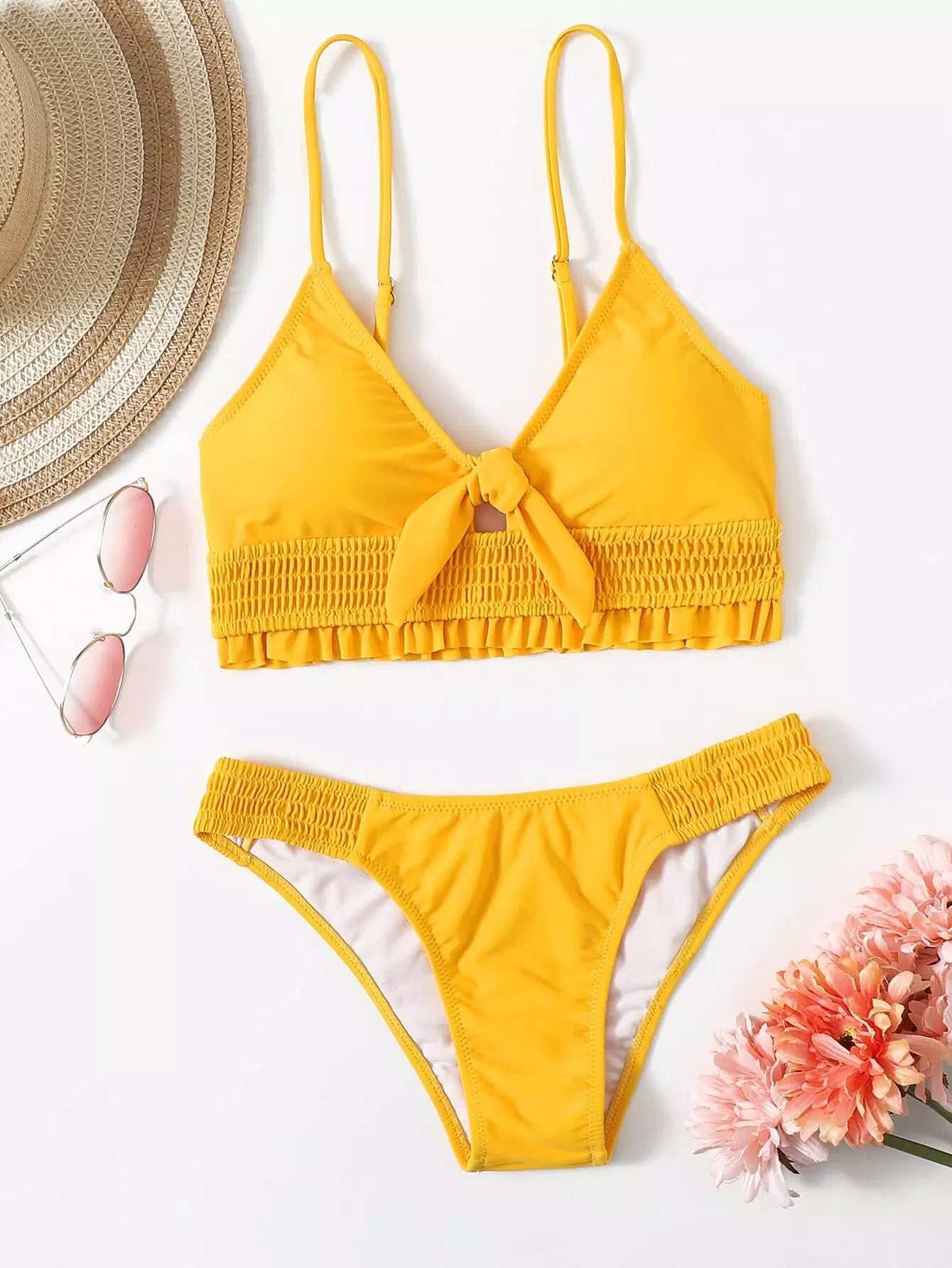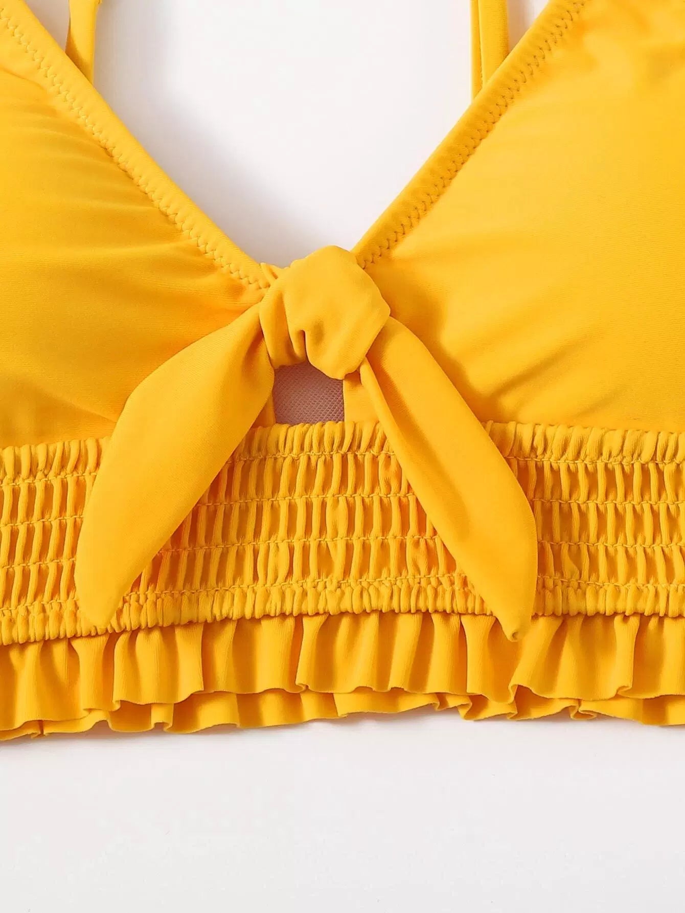 بدلة سباحة بيكيني بحافة كشكش على شكل عقدة