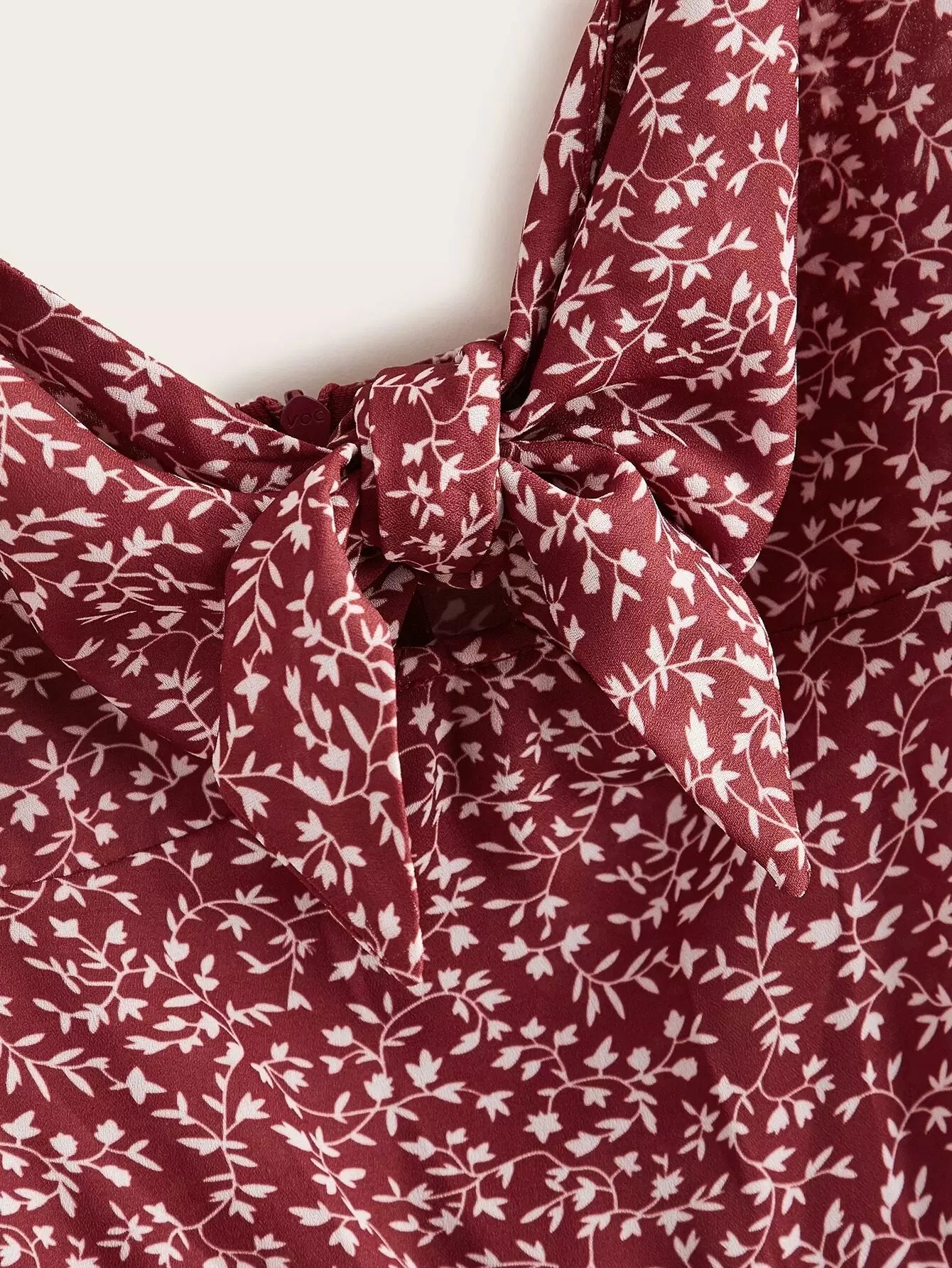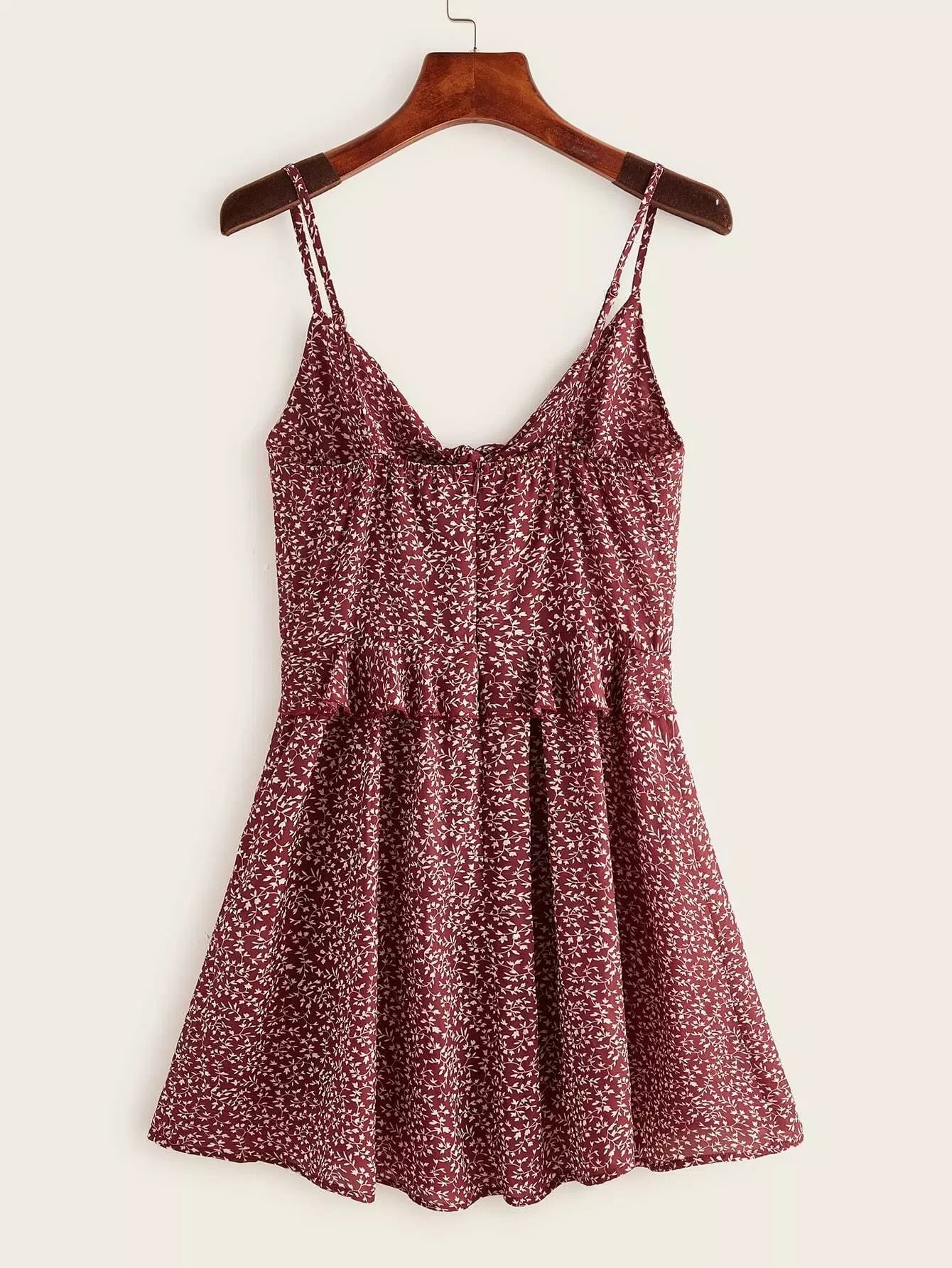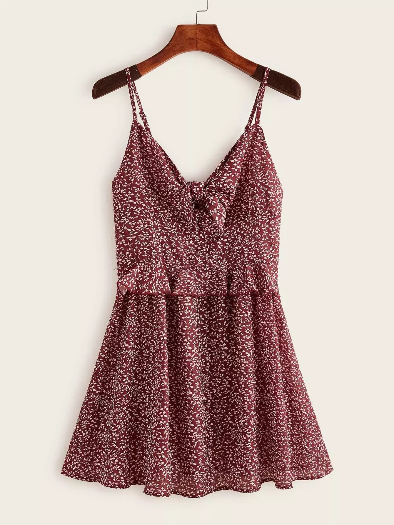فستان كشكش بحواف مكشكشة أمامية بعقدة من الأمام مزين بكشكشة زهرية
