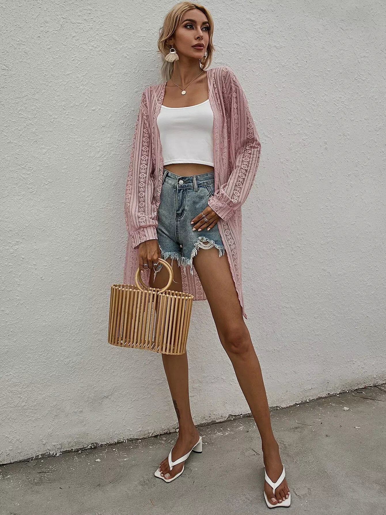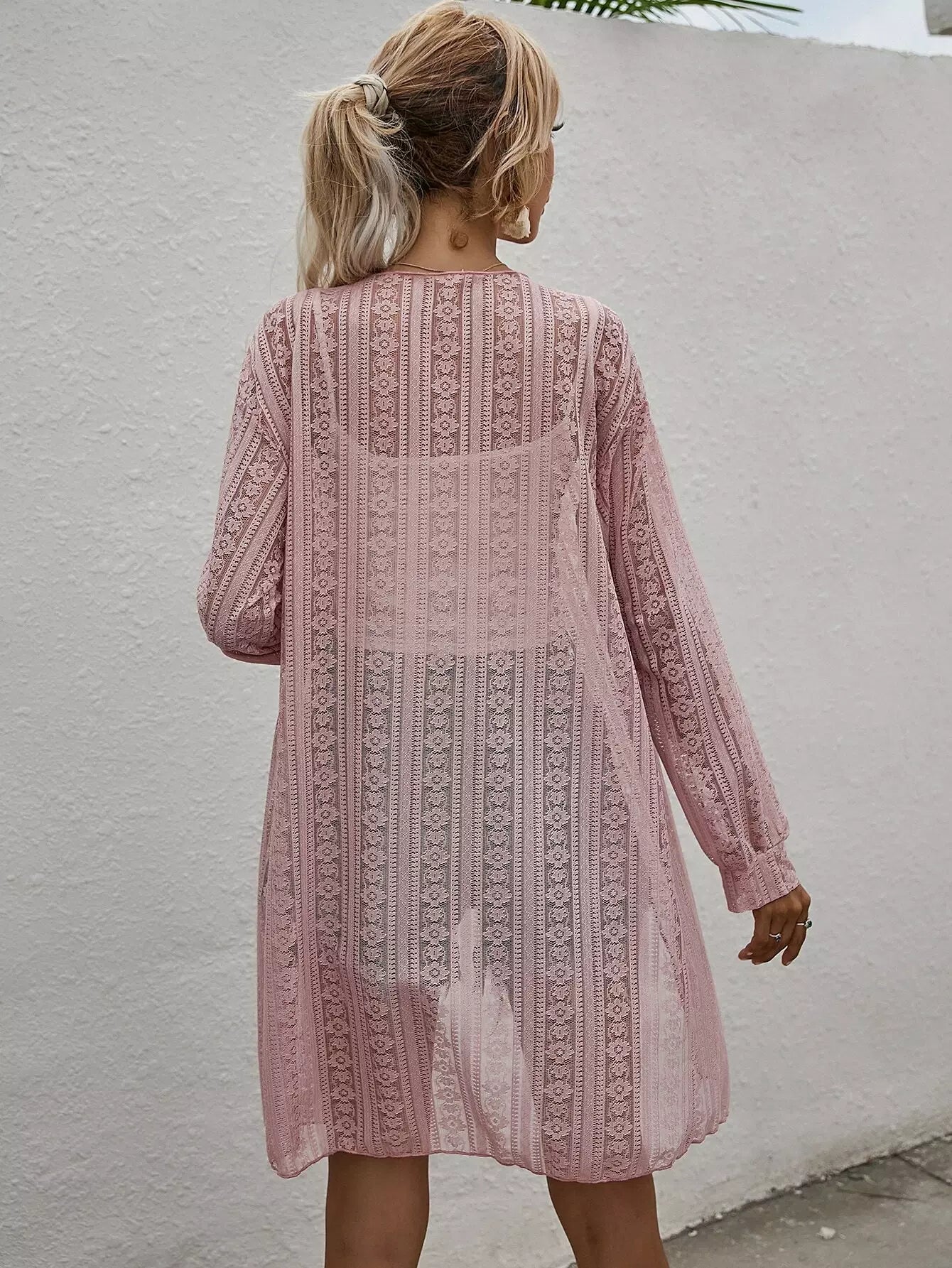 بلوزة دانتيل مفتوح من الأمام منسدل الكتفين من الدانتيل