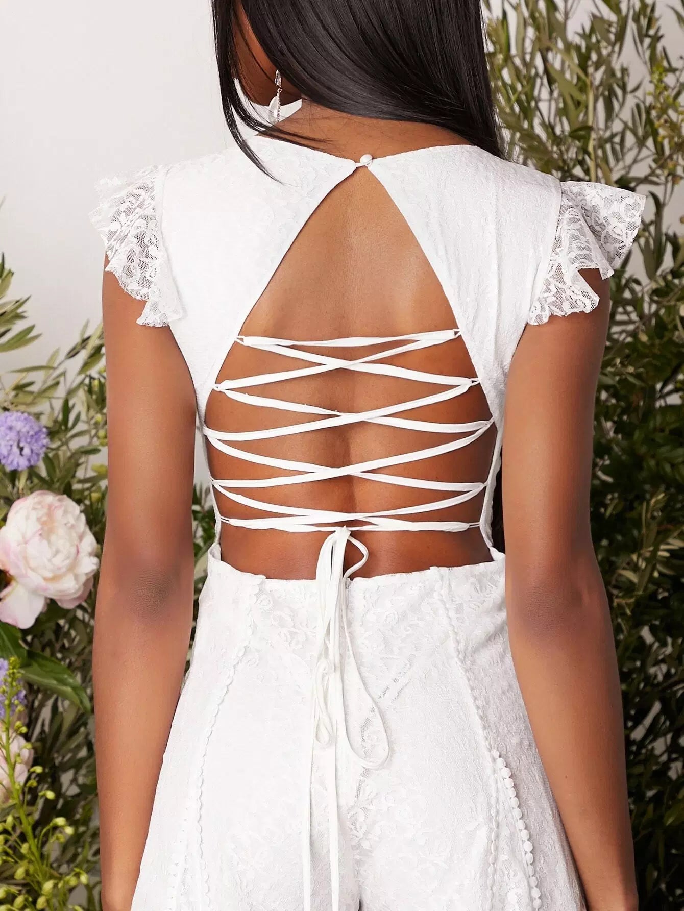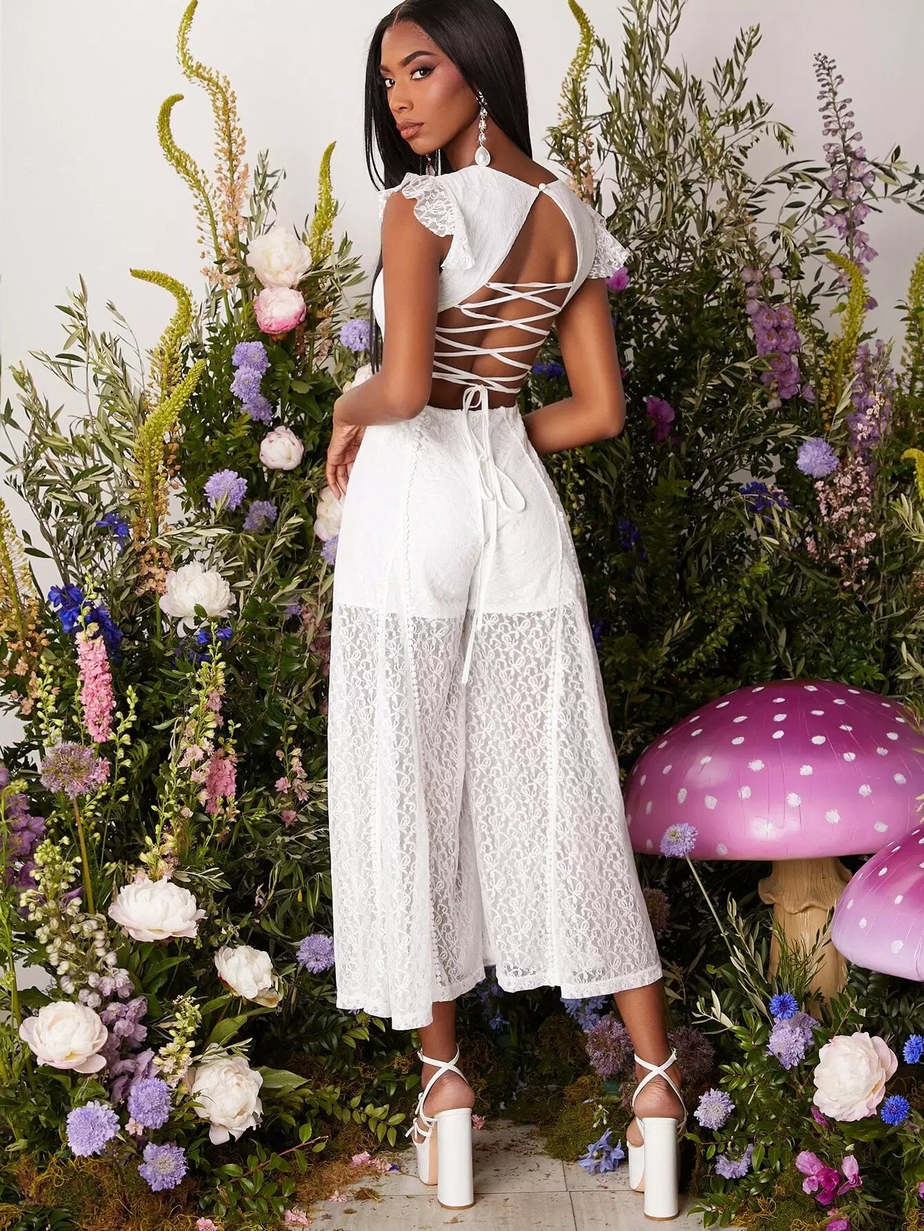 جمبسوت مكشكش من الدانتيل المتراكب من الدانتيل المكشكش