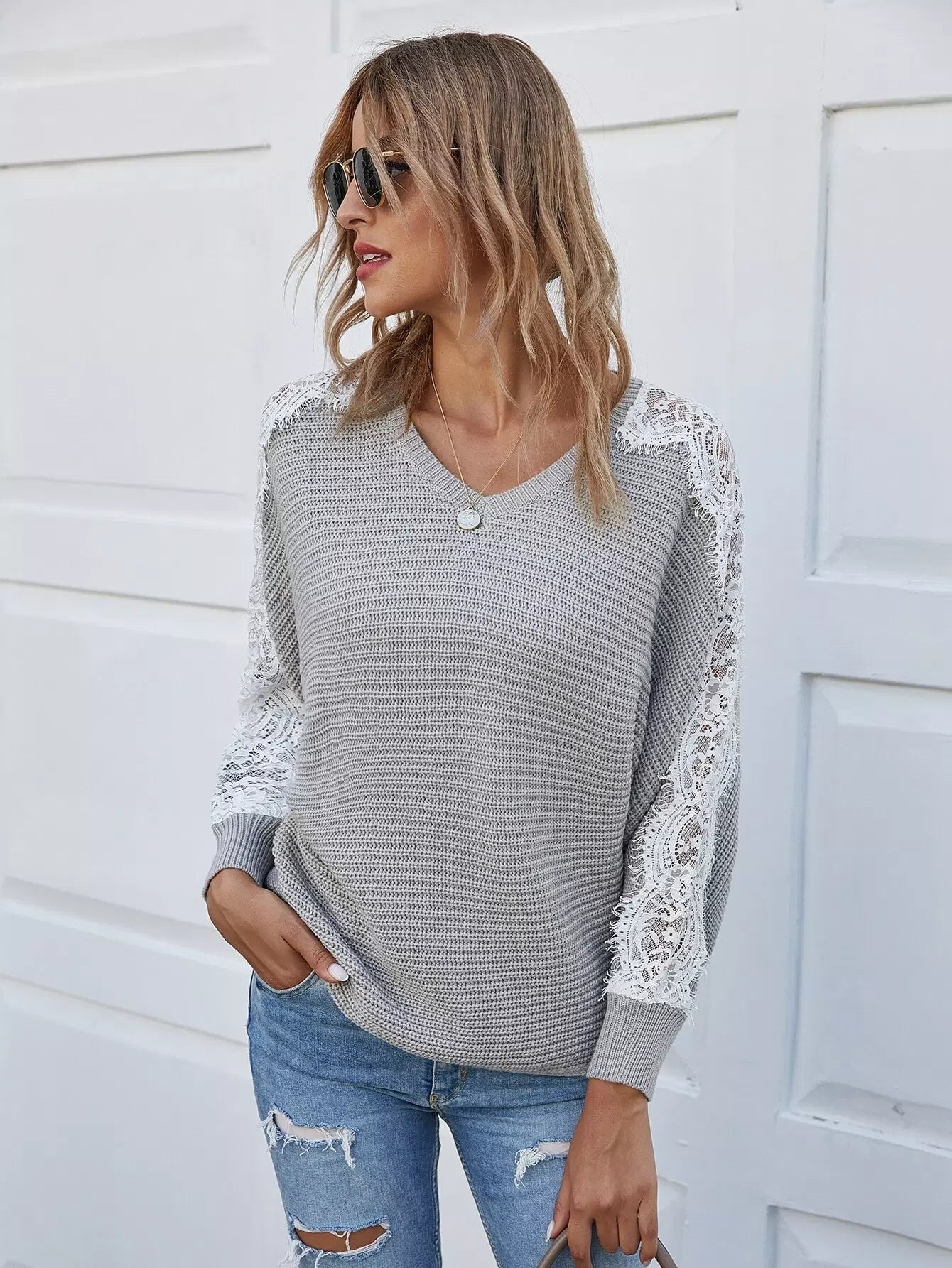 سترة بأكمام من الدانتيل بأكمام باتوينغ