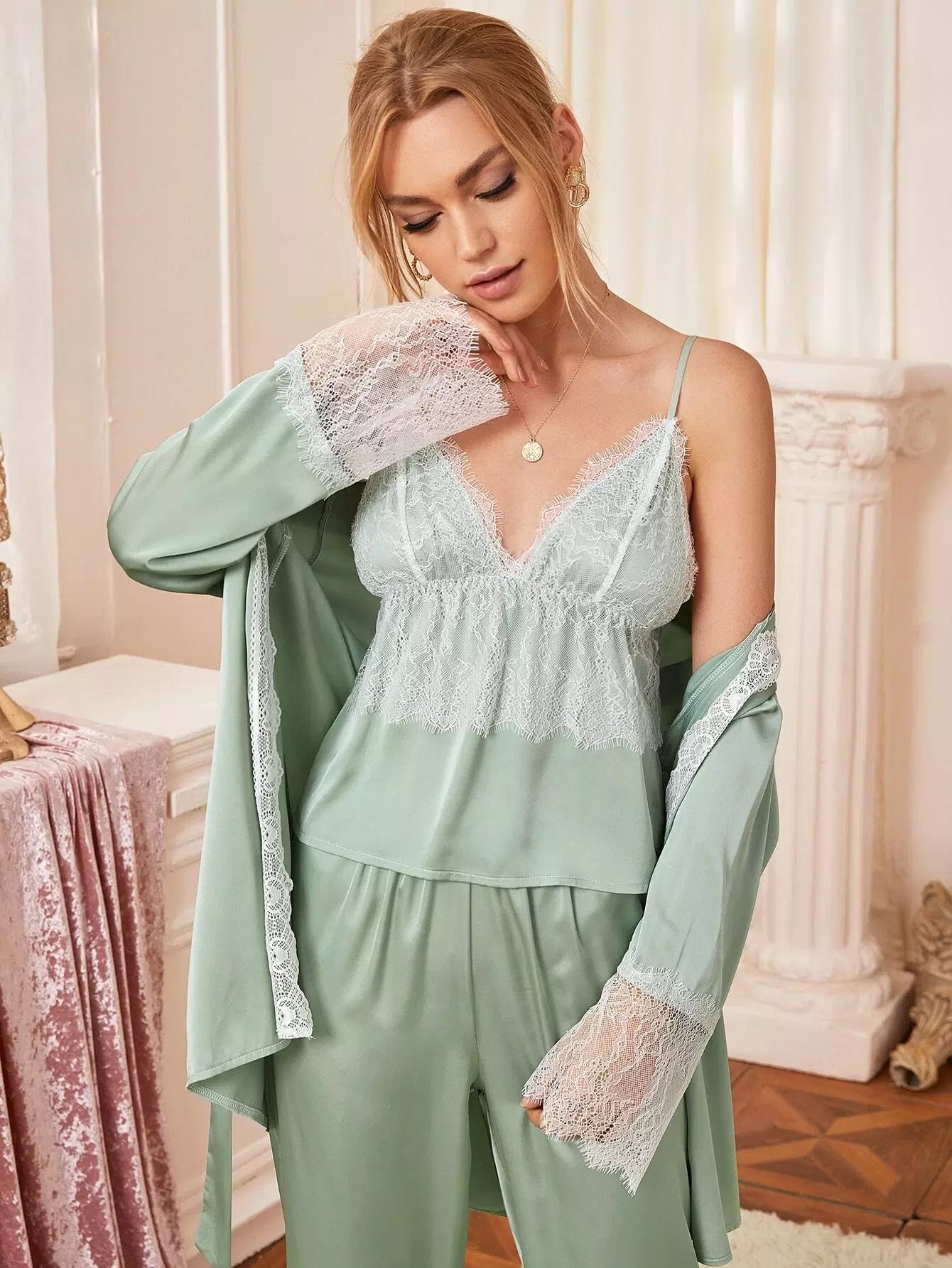 للنساء - طقم قميص وسروال كامي من الدانتيل مع رداء