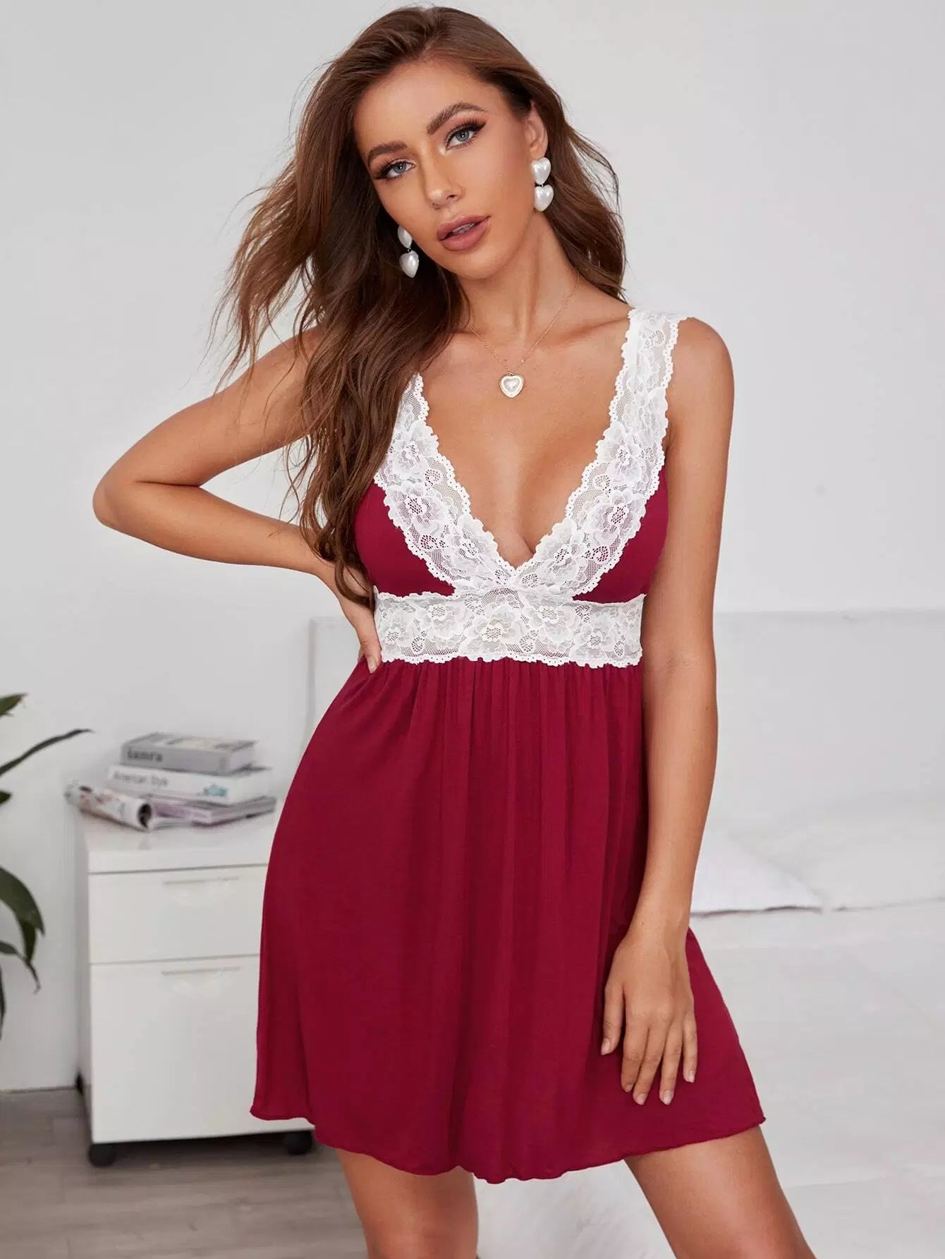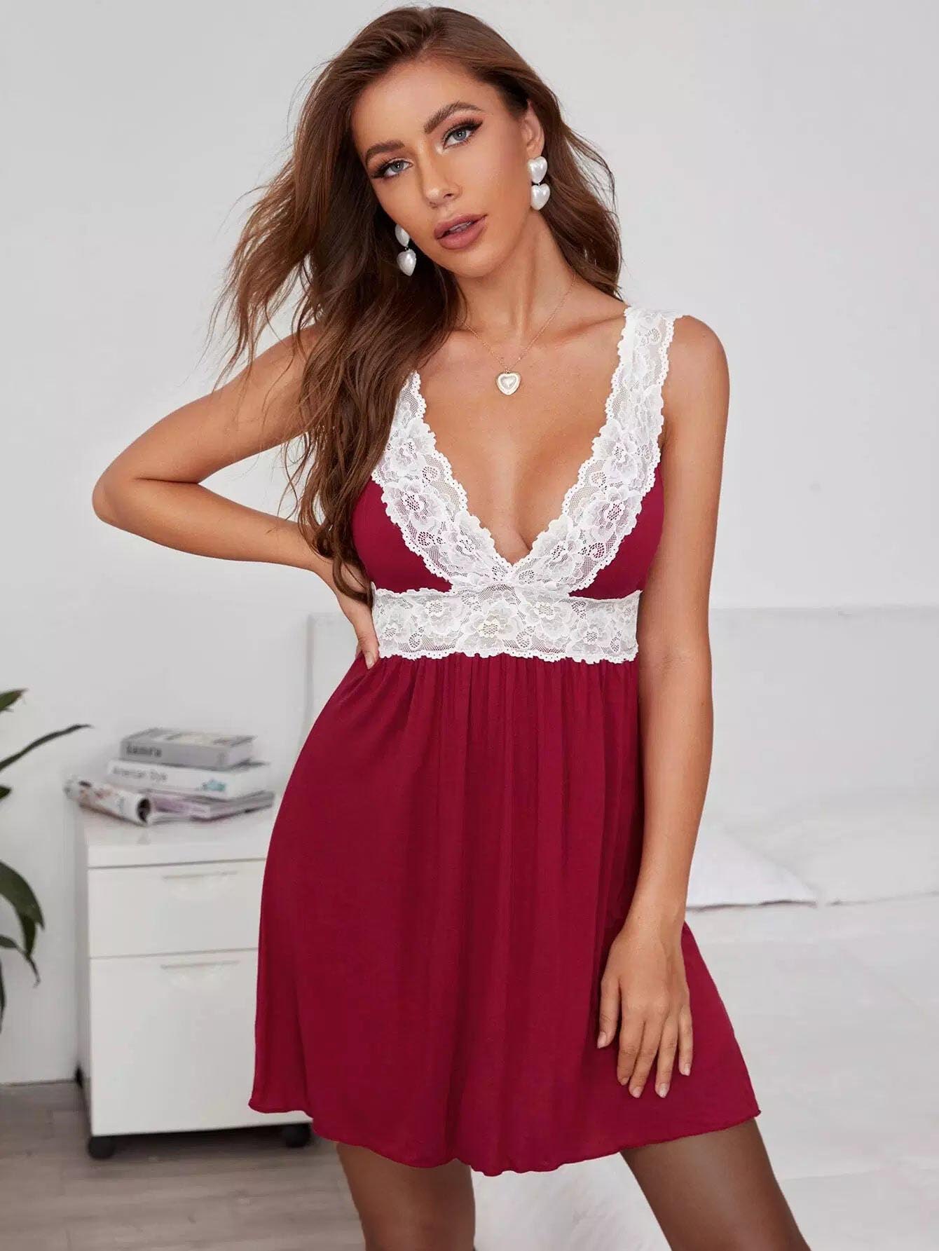فستان سهرة مودال بحواف من الدانتيل