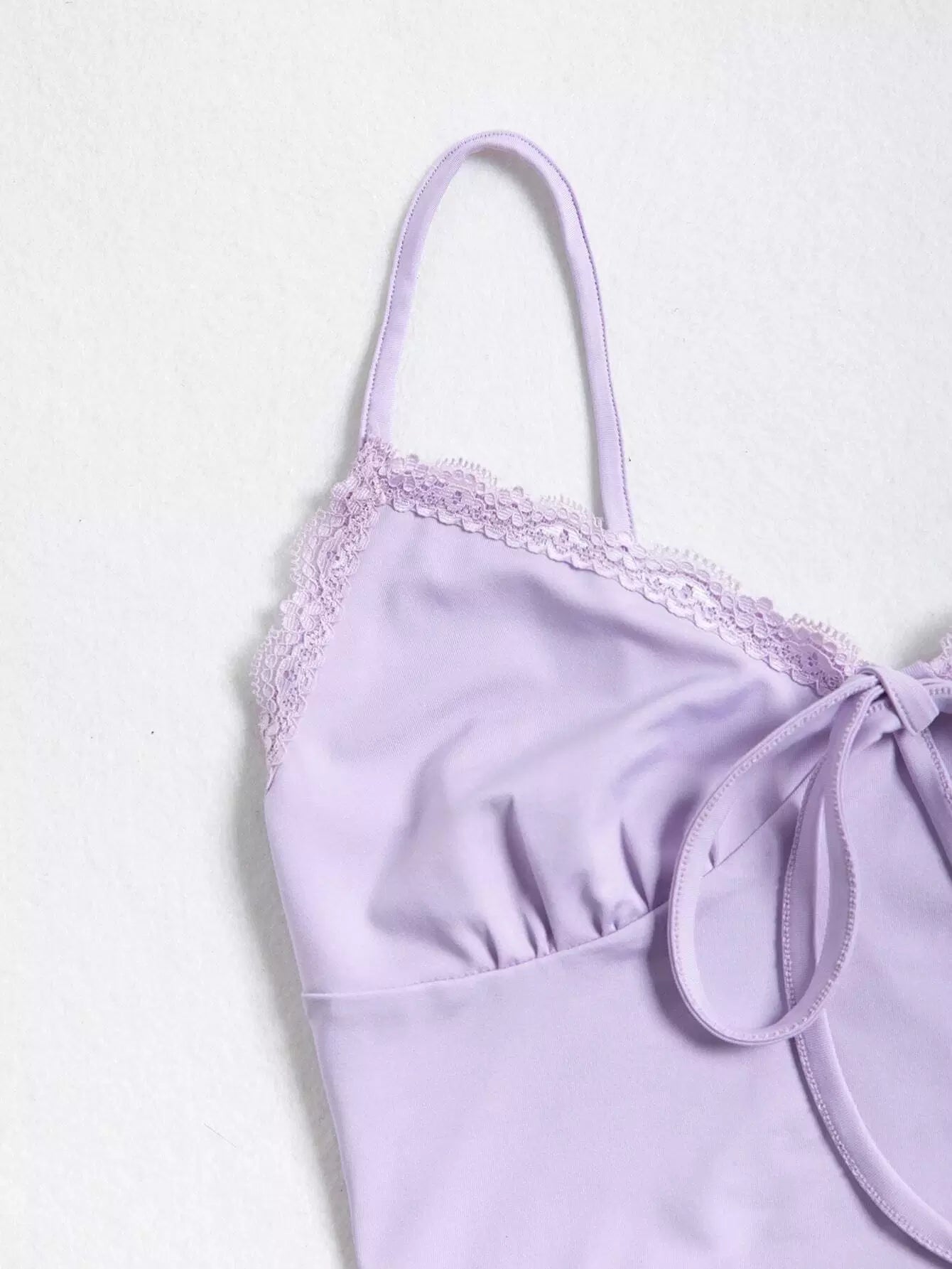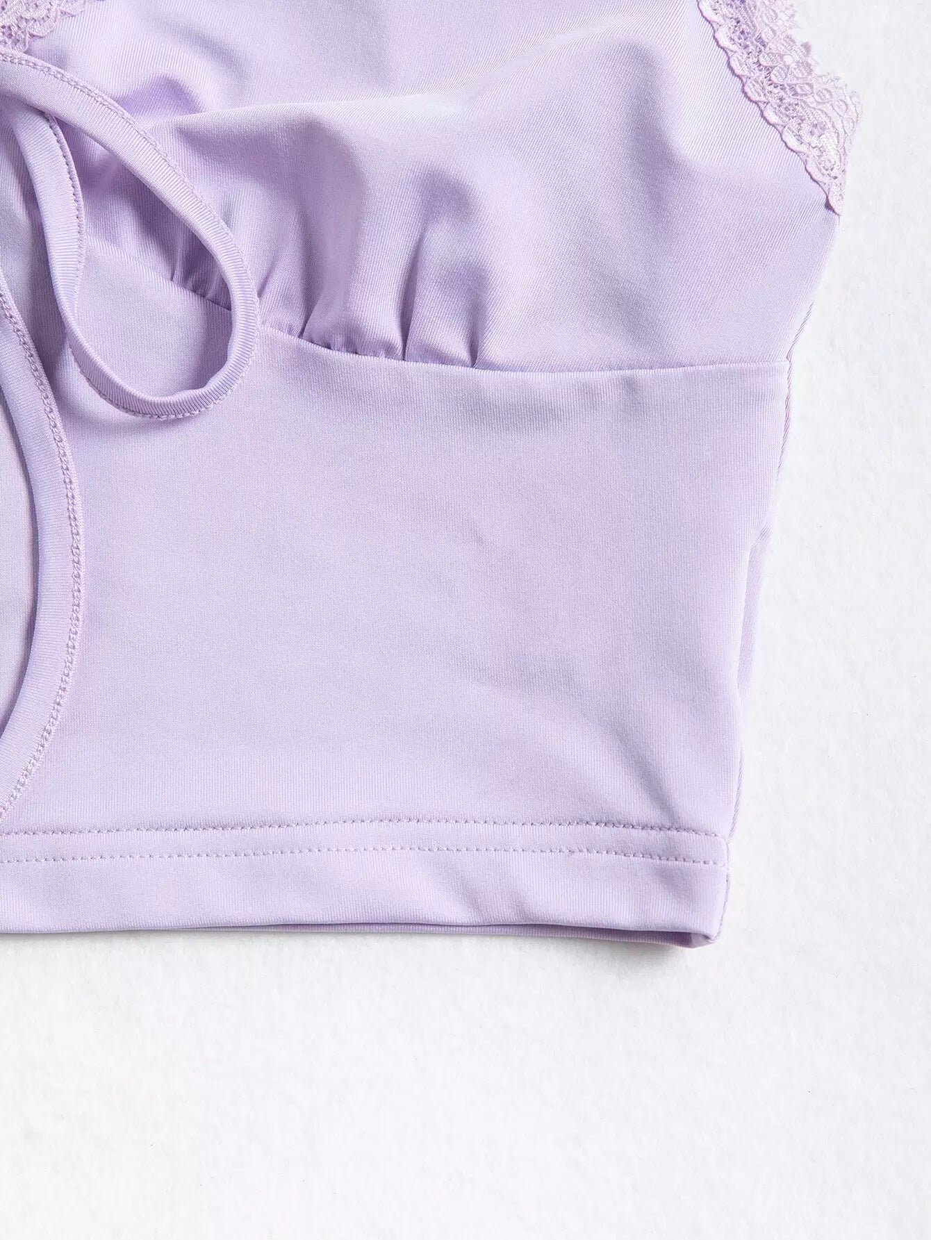 توب قصير قصير قصير برباط أمامي برباط من الدانتيل