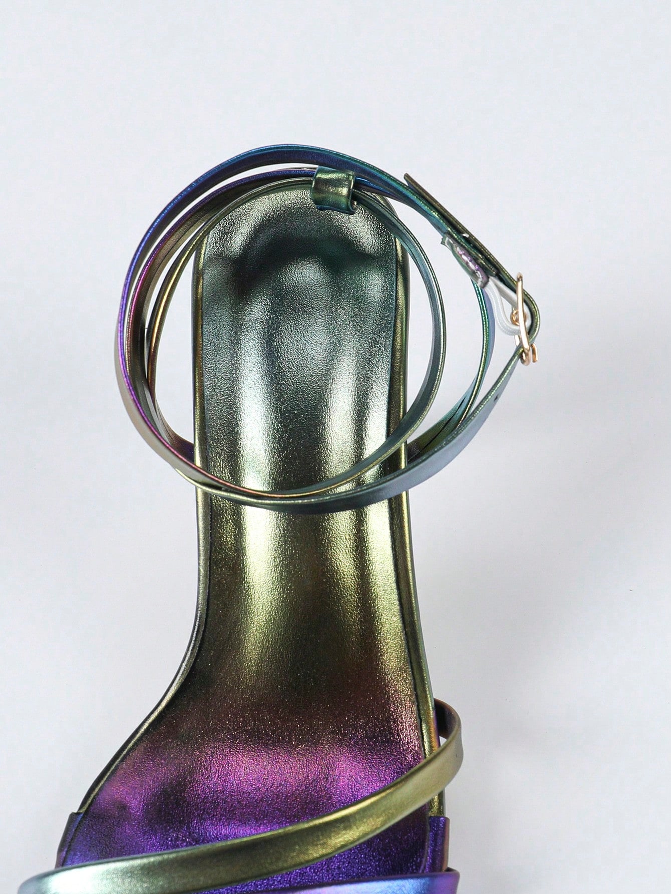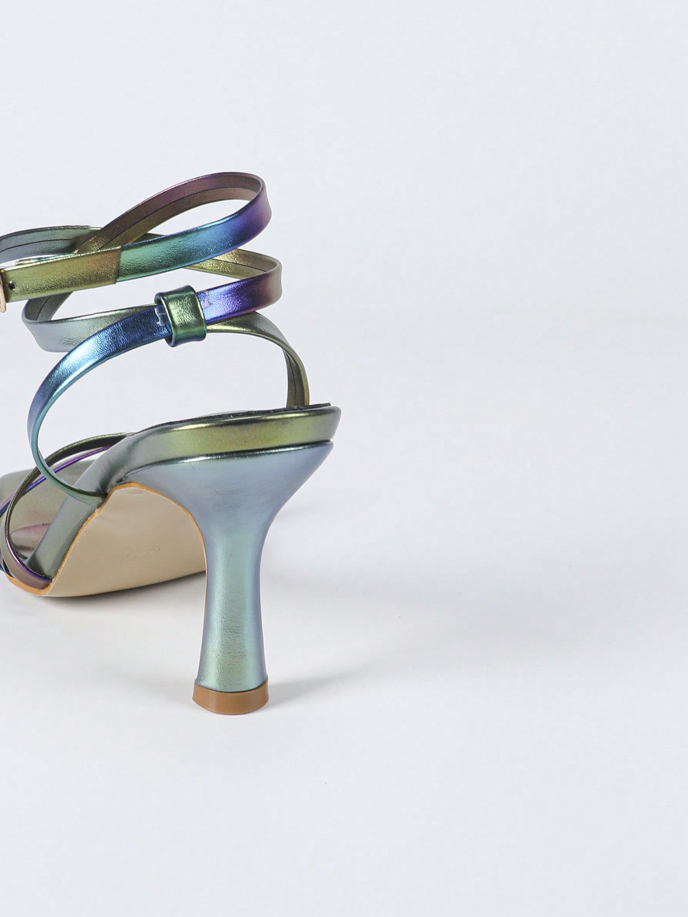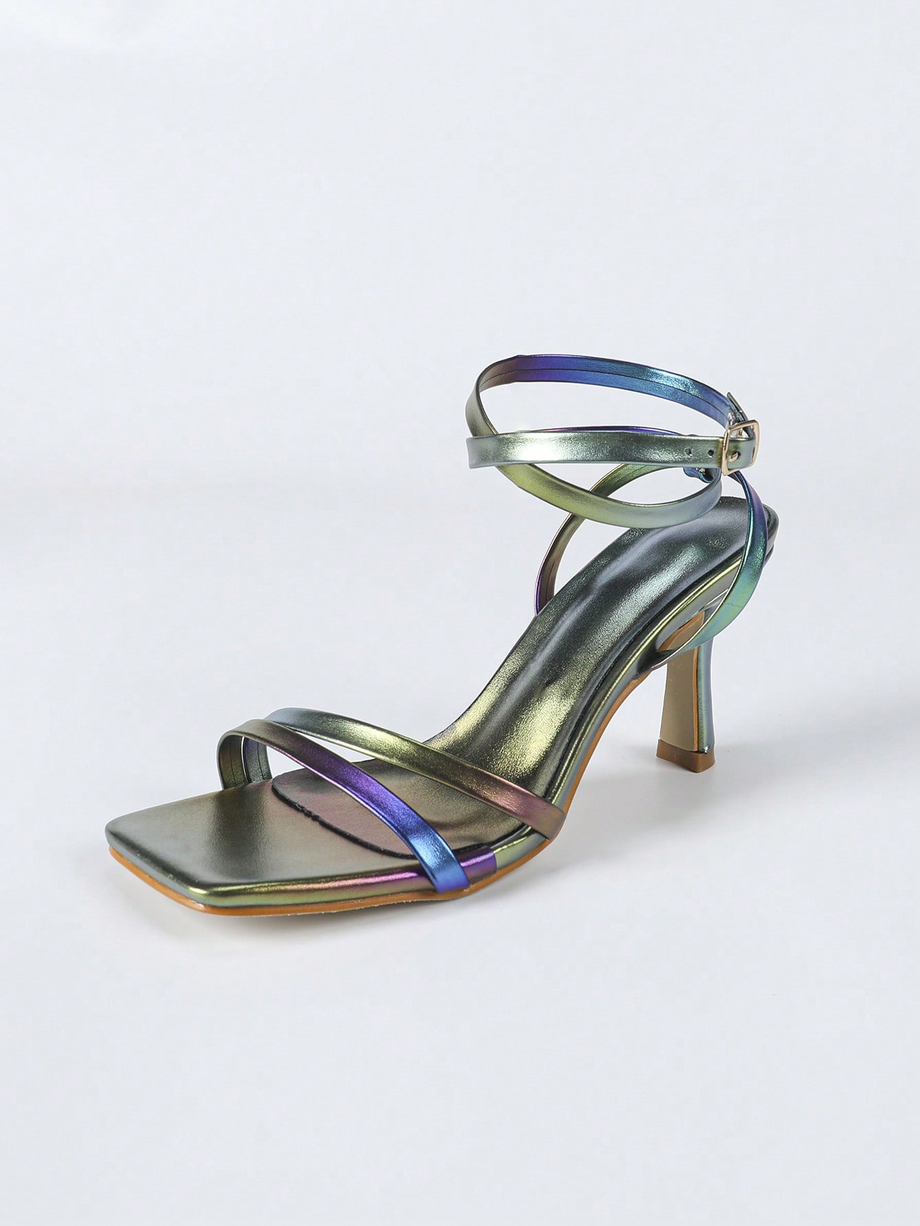 صنادل كعب عالٍ بمقدمة مربعة وأربطة للنساء