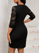 فستان أنيق بلون موحد مرقع من الدانتيل الملفوف