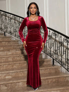 Lady Red Velvet Long Sleeve Winter Dress Long Sleeve Dress New Year Eve Dress Holiday Dress Women's Long