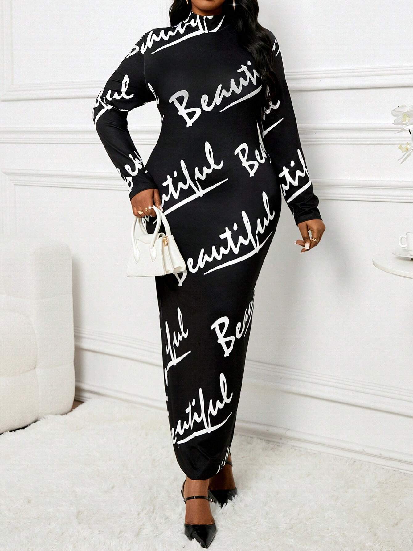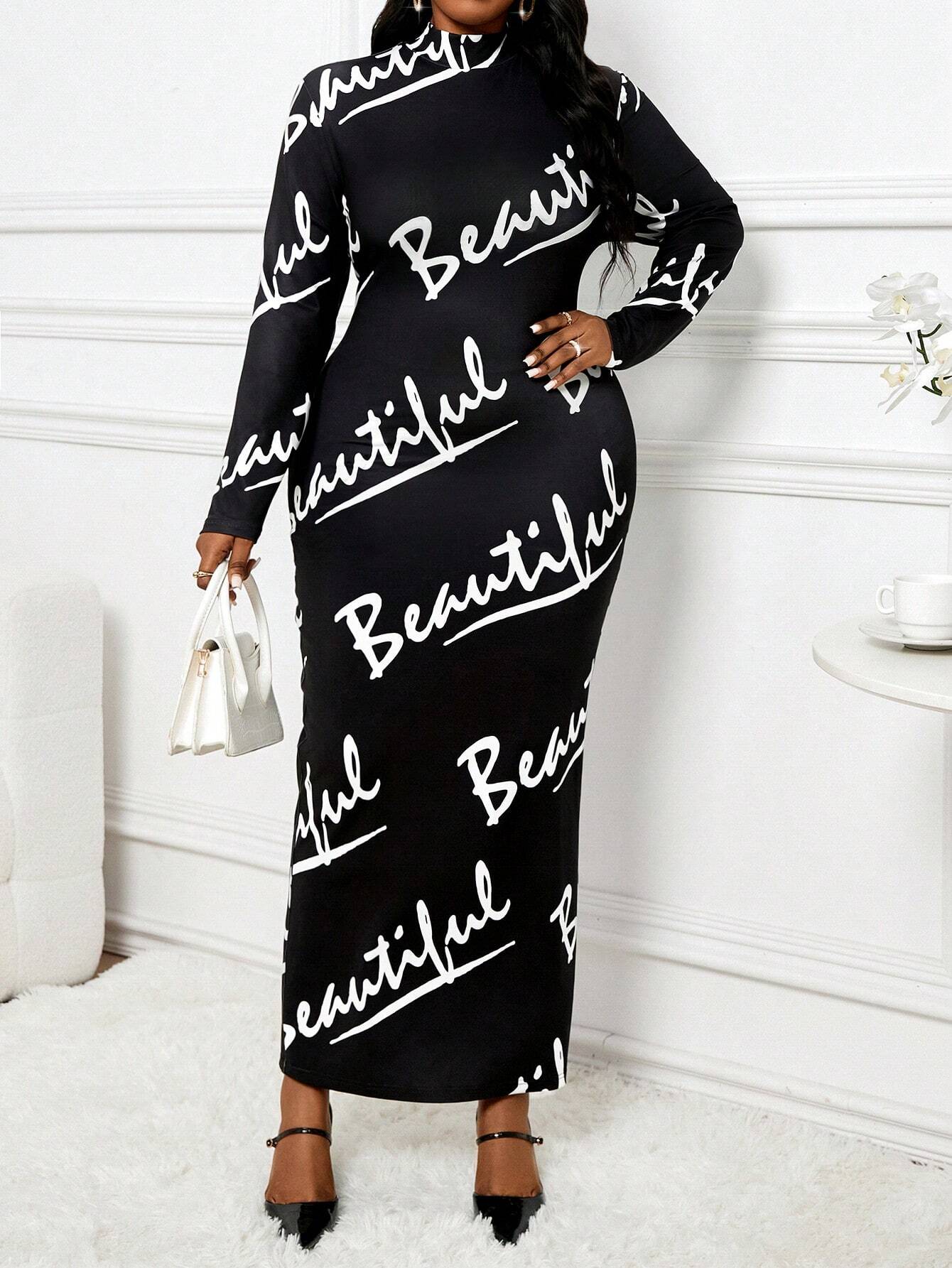 Lady Spring And SummerAutumn And Winter Casual Elegant Black And Knitted Stand Collar Pencil Long Long