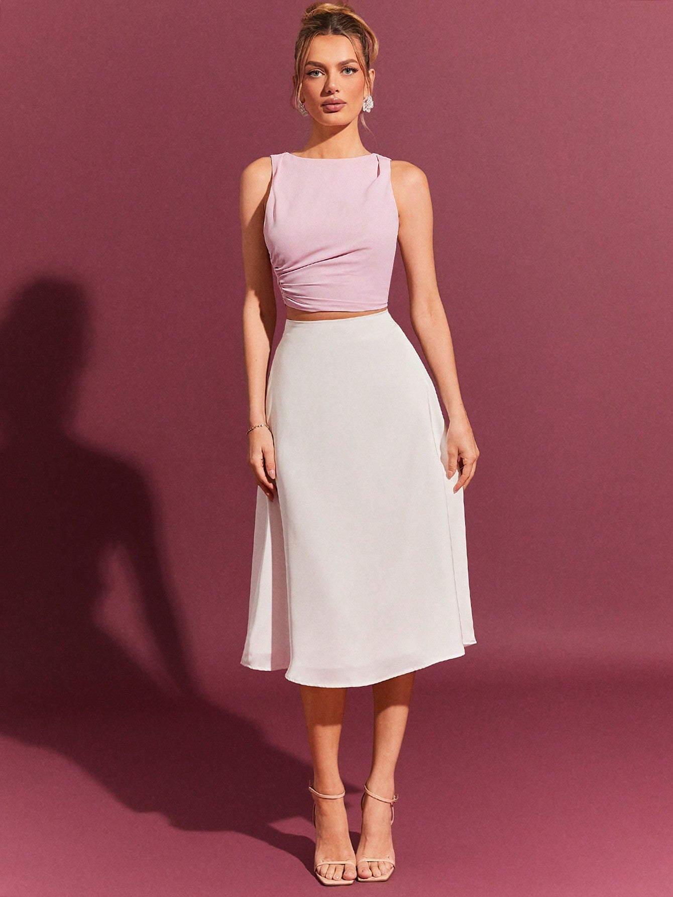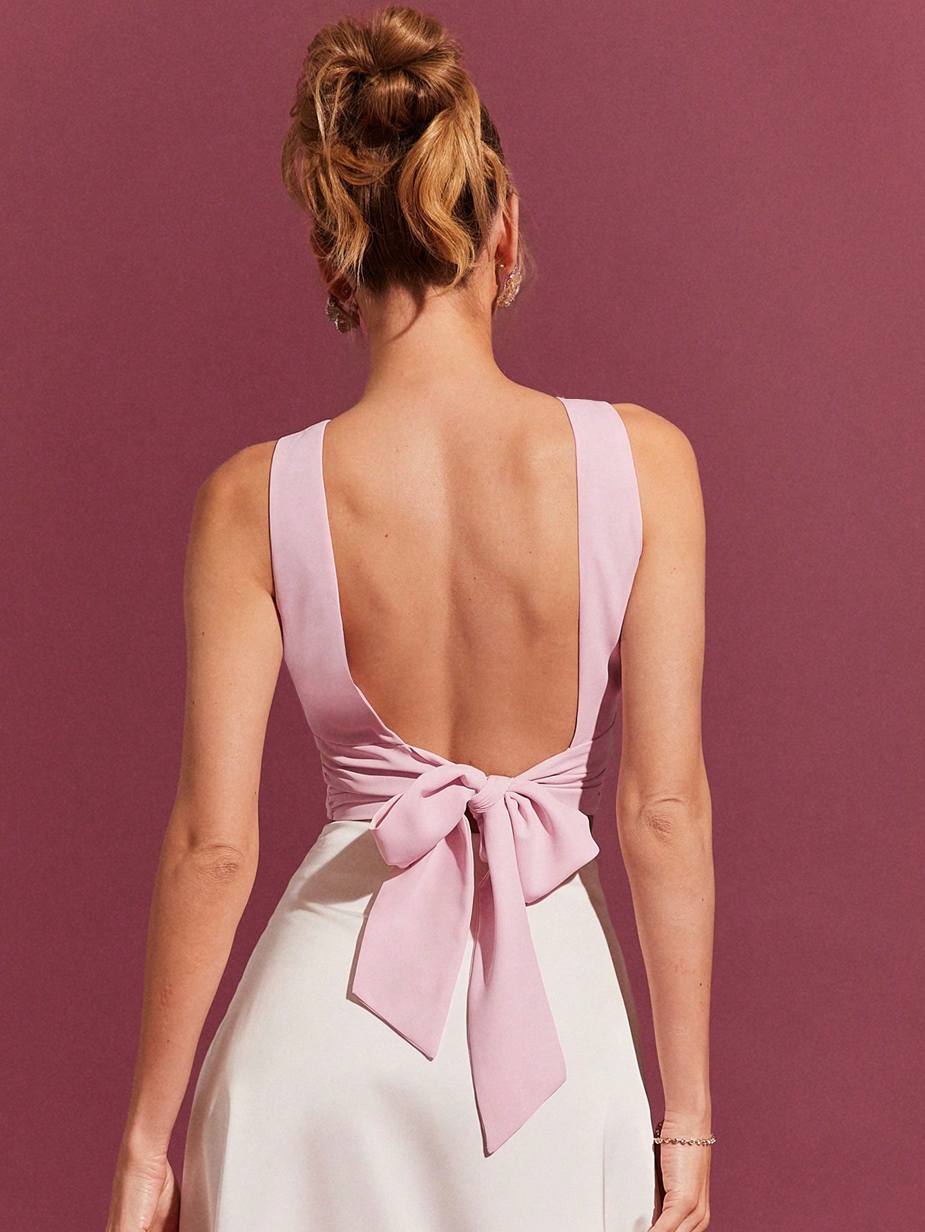 L'Amorae Valentine's Day Sleeveless Tie Back Pleated Top, Summer Outfits For Women