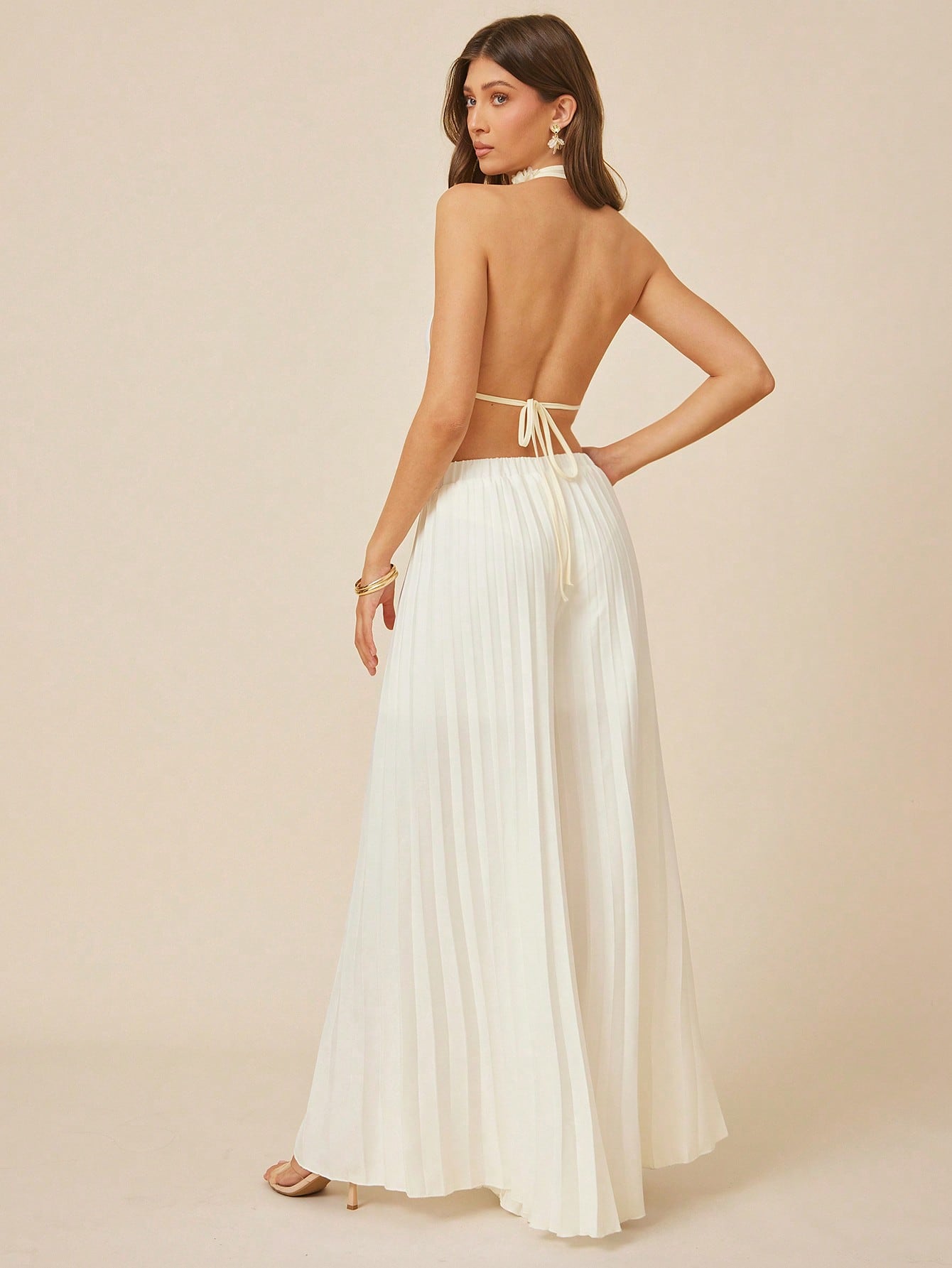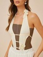 L'Amorae Women's Summer Sexy 3D Flower Decor Backless Halter Bodysuit