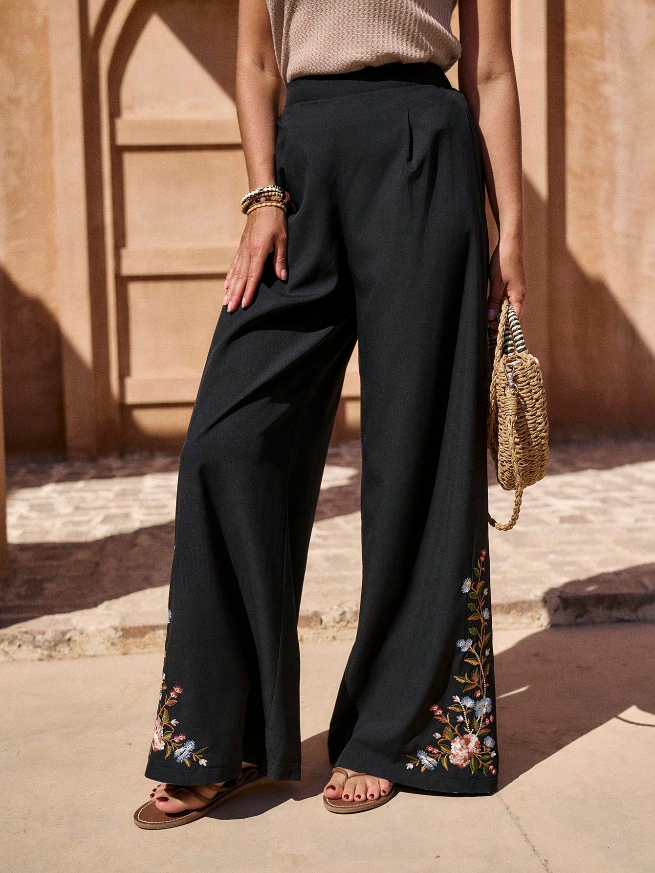 LanaWest Women's Embroidered Flared Leg Casual Vacation Pants