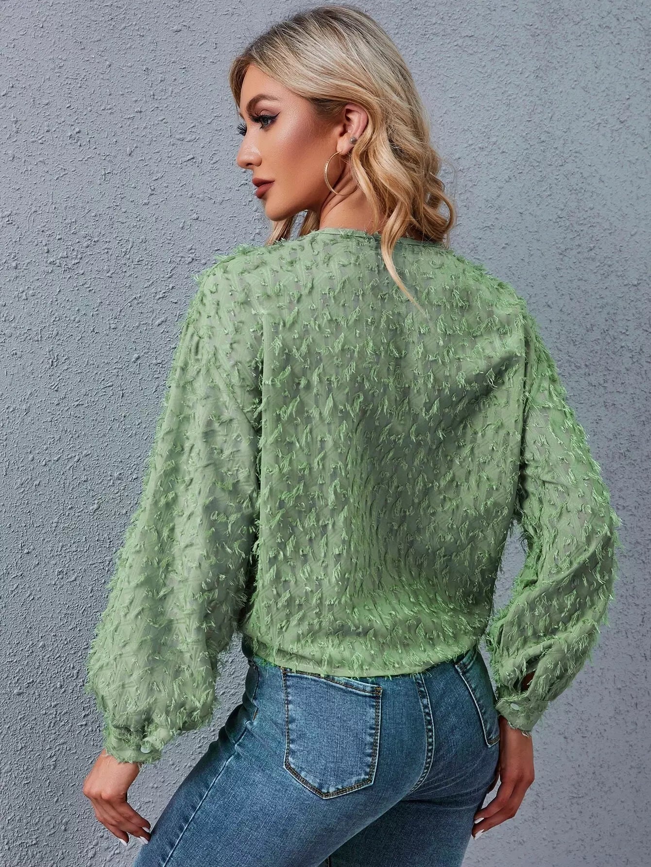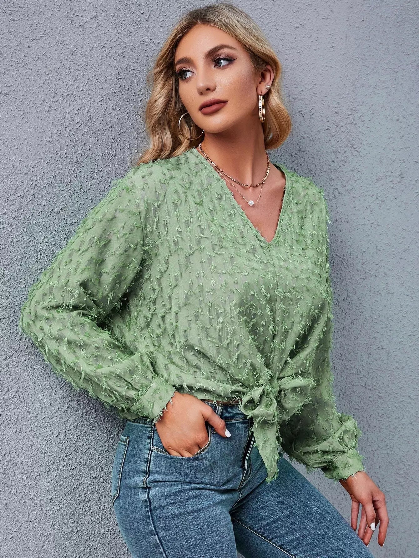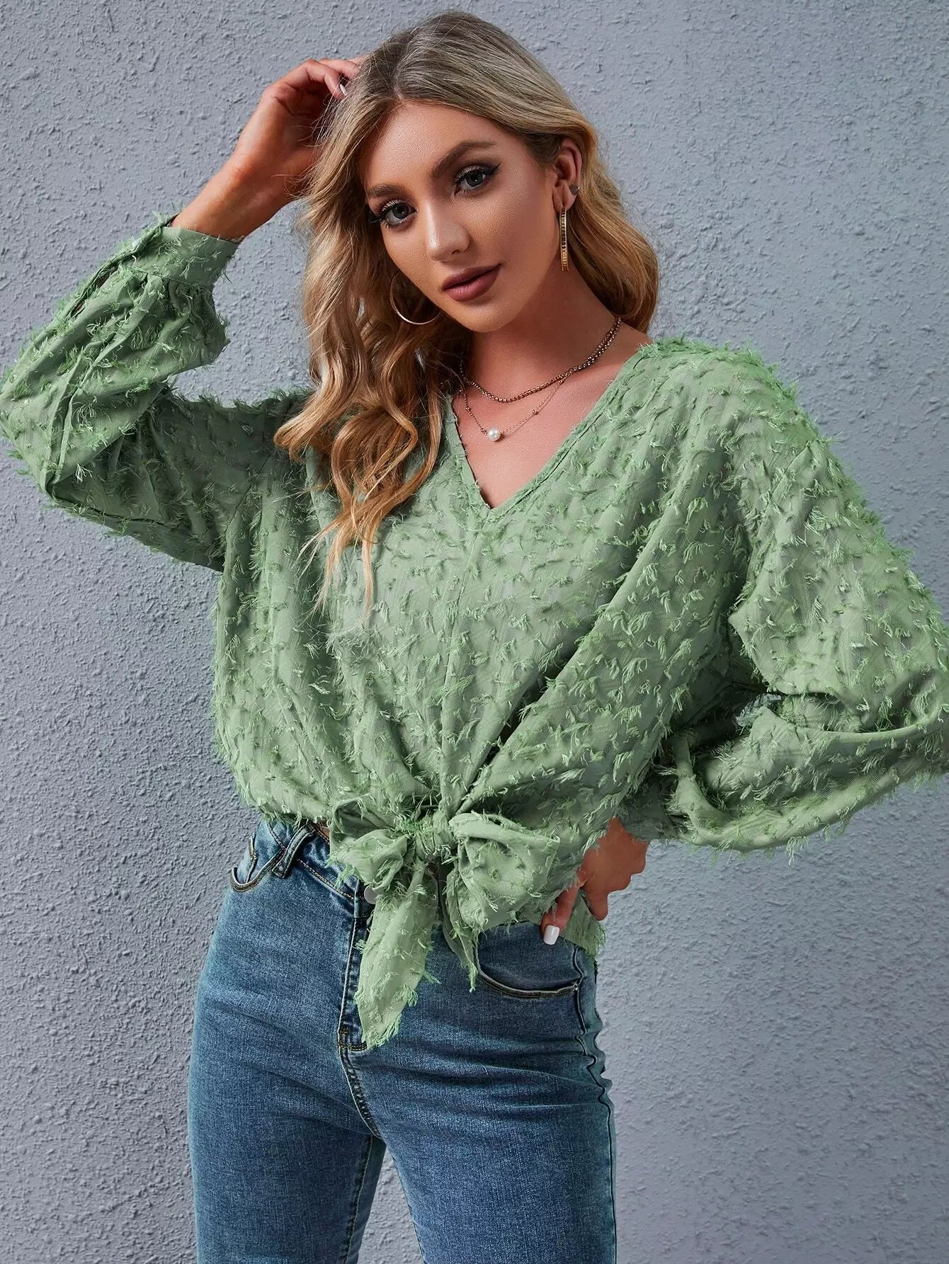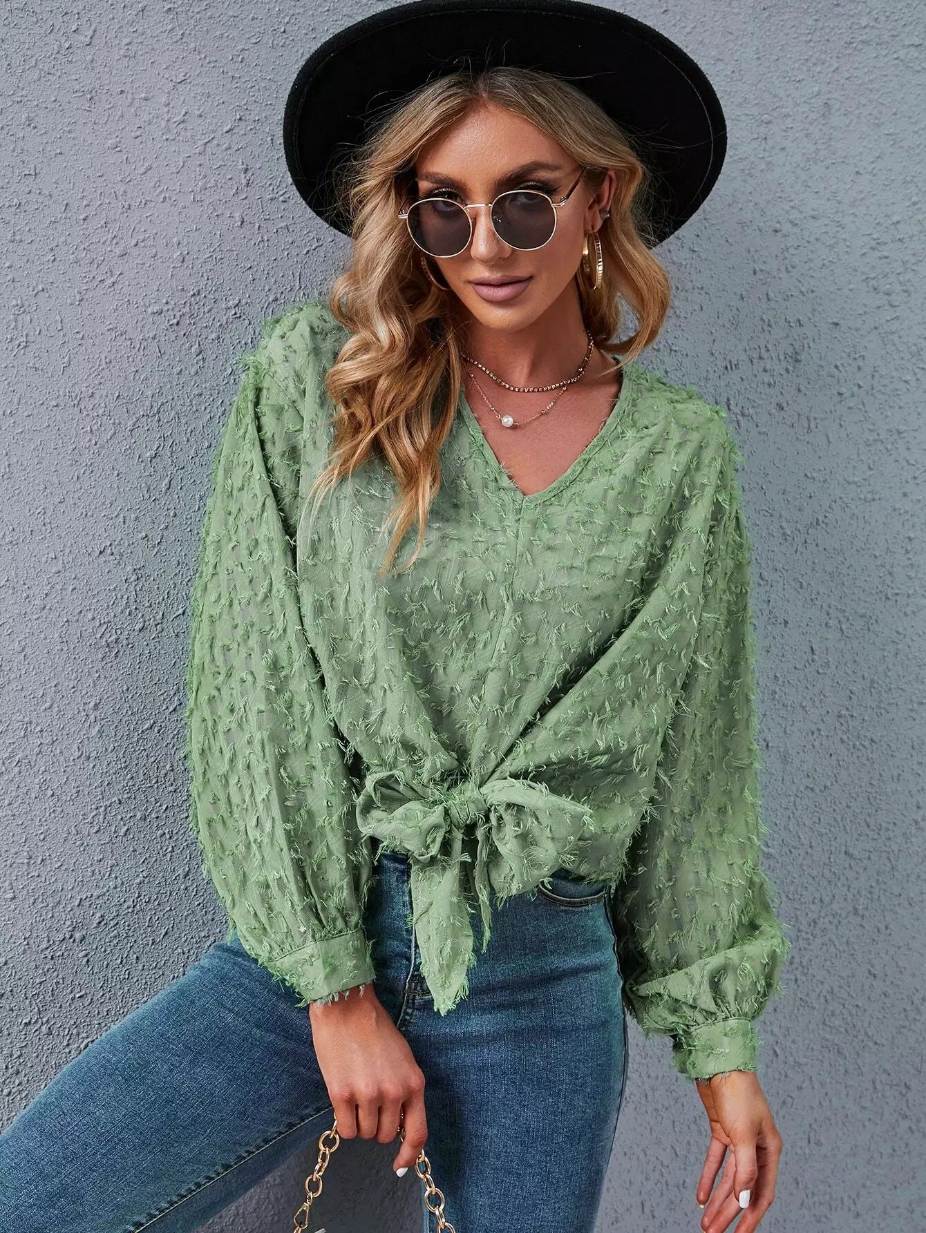 بلوزة بأكمام فانوسية ذات عقدة أمامية ضيقة من الأمام