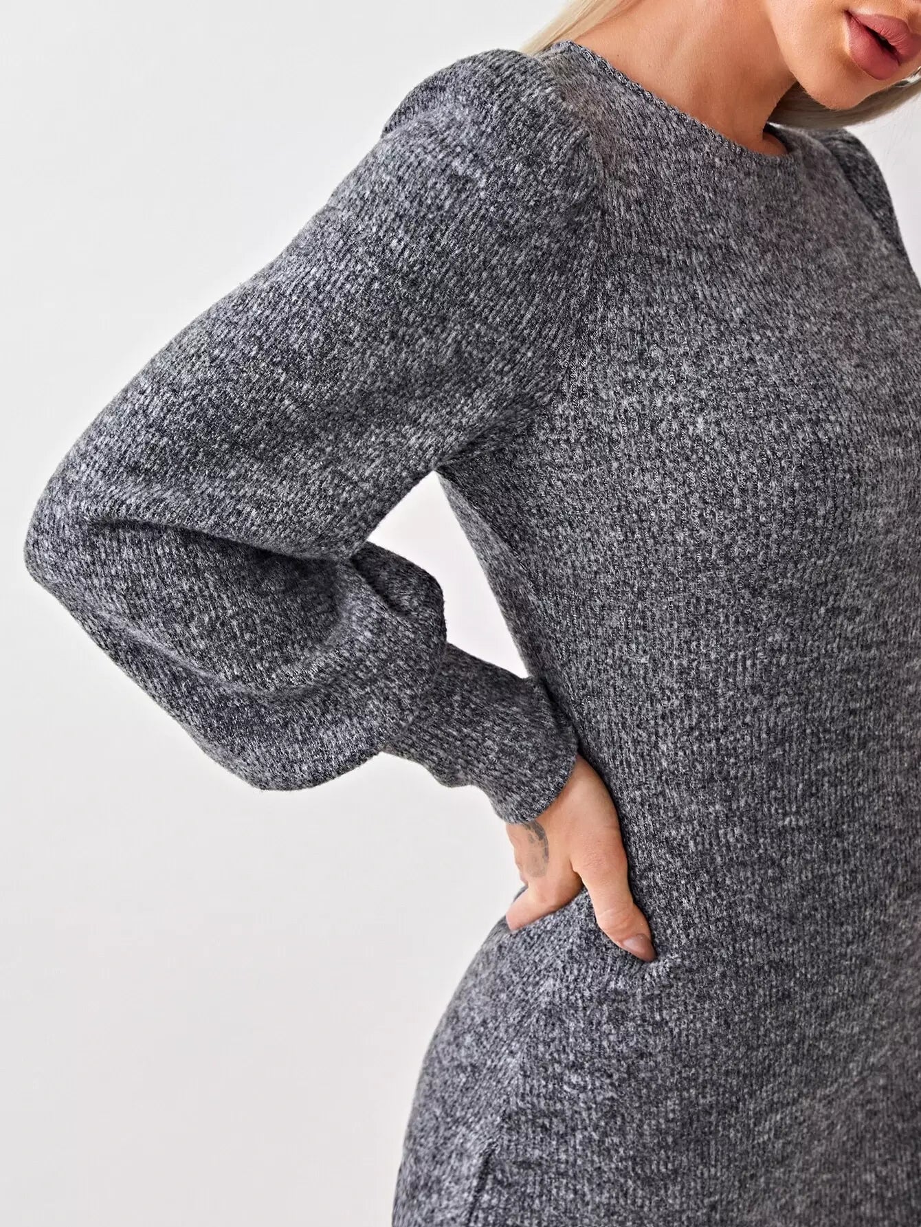 فستان بأكمام فانوس بأضلاع محبوكة على شكل ضلع