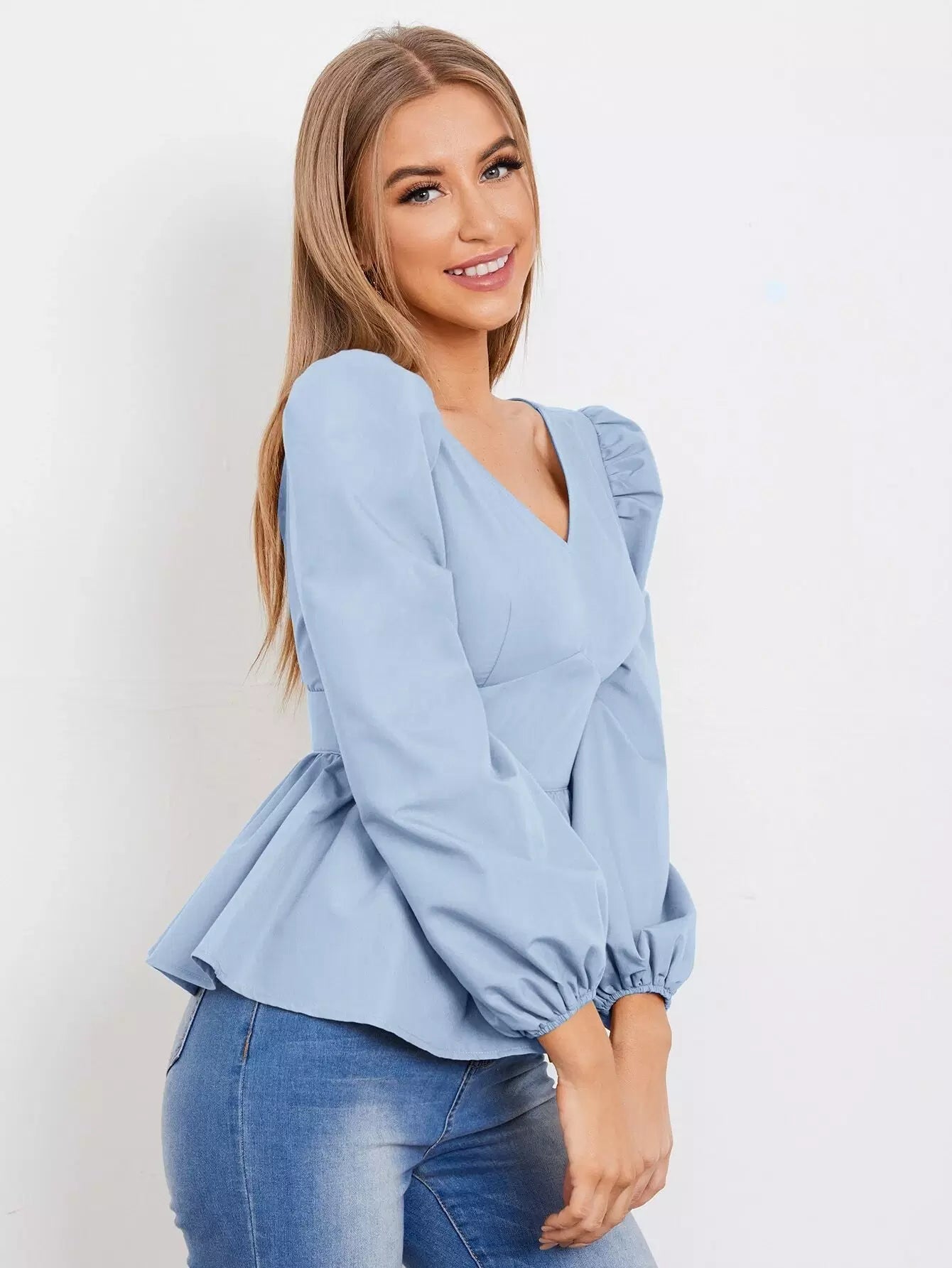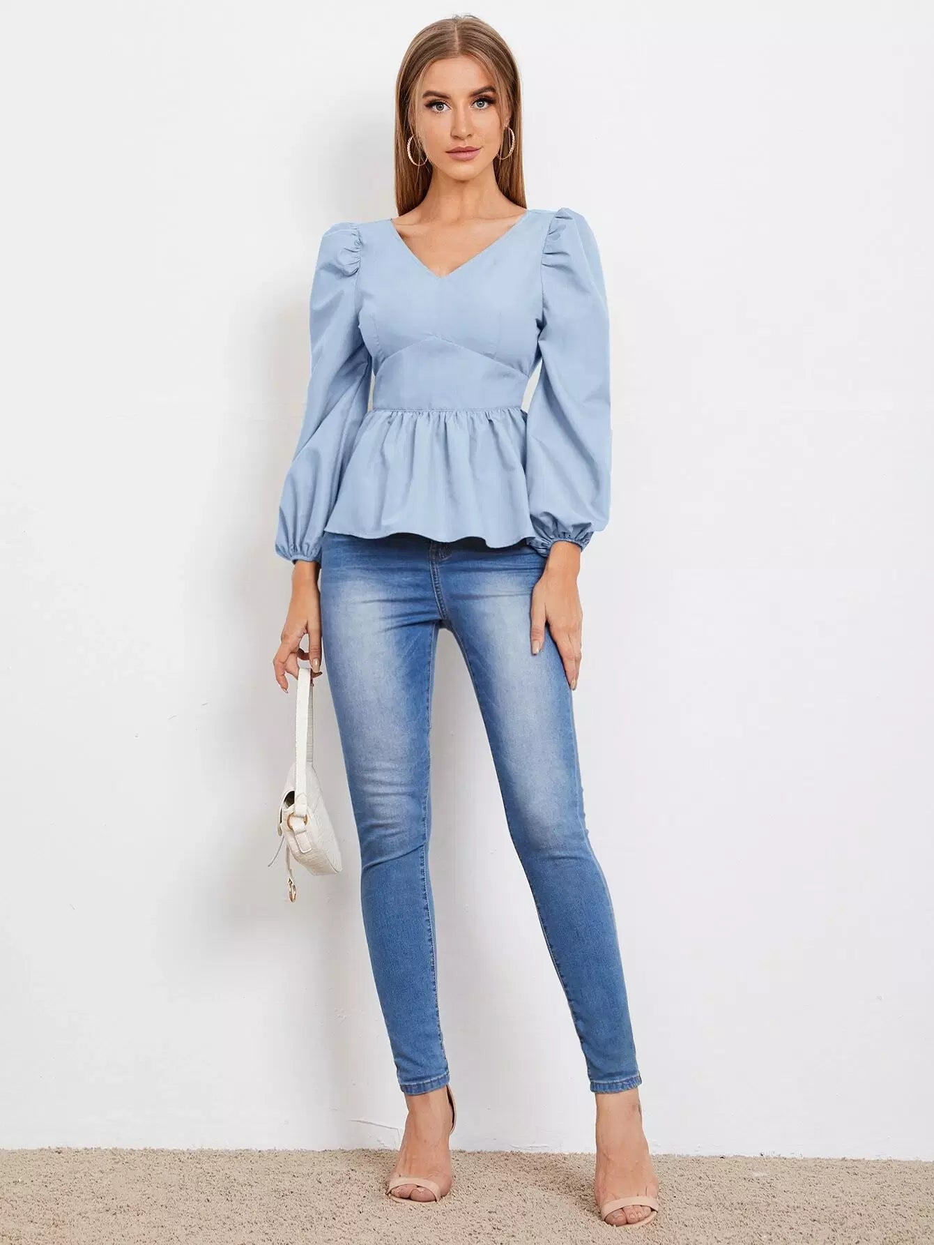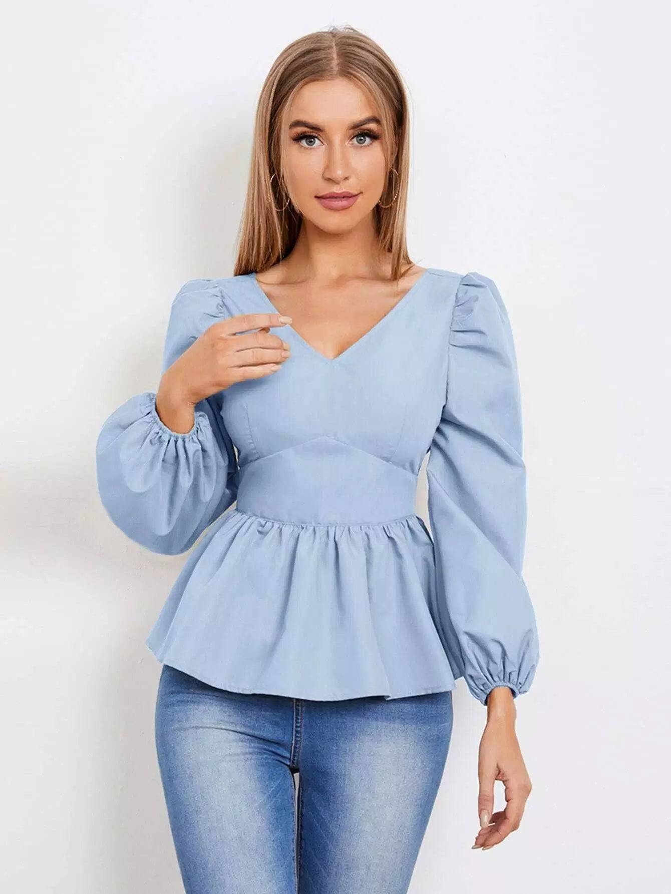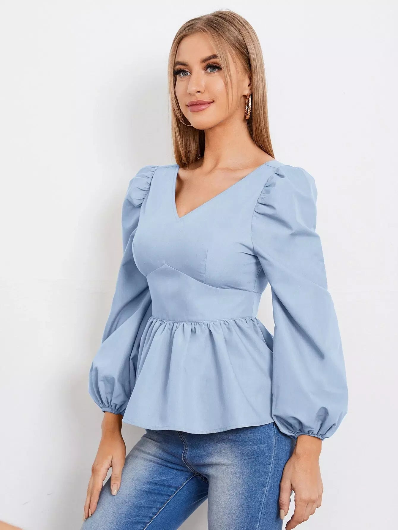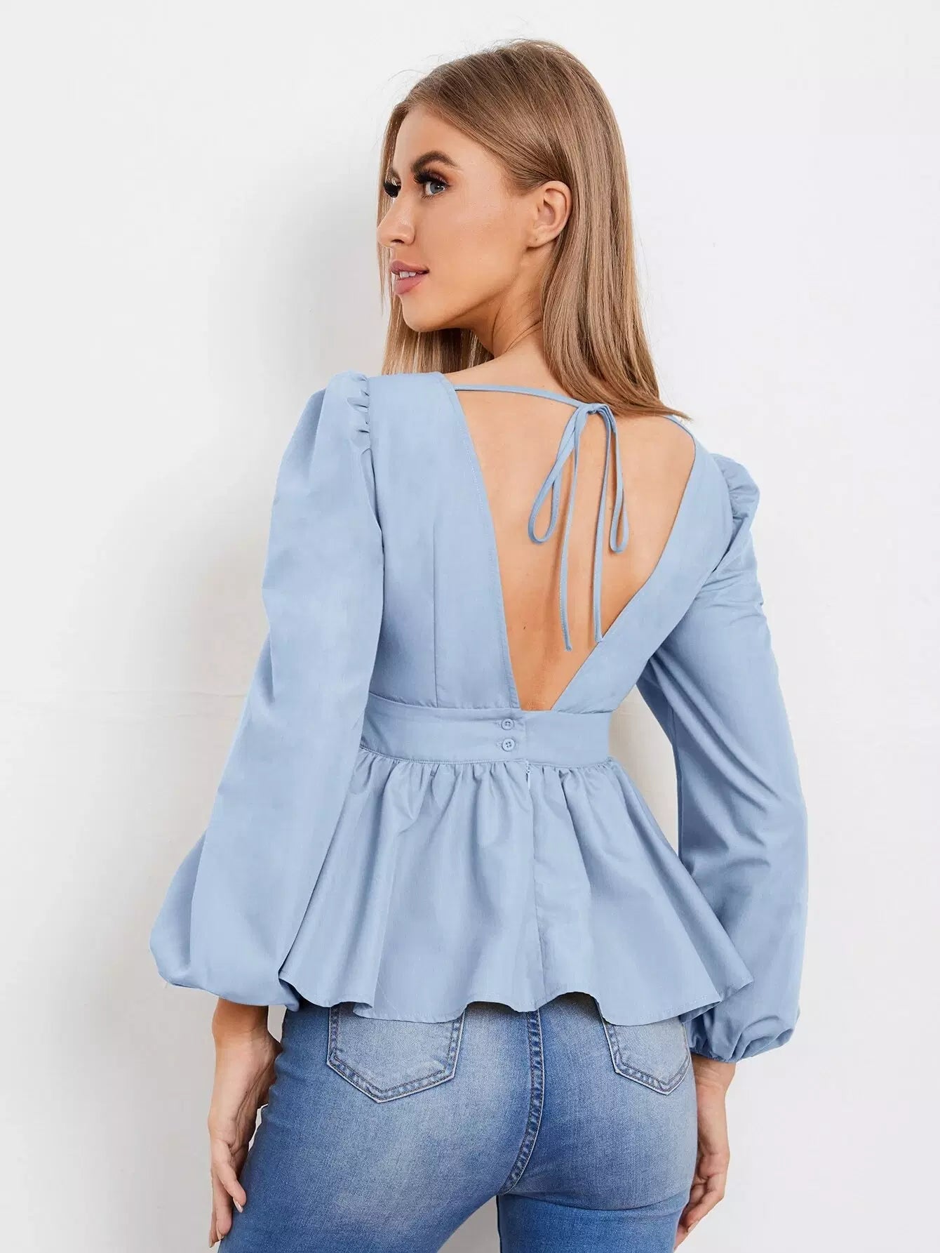 بلوزة بأكمام فانوسية مربوطة من الخلف بدون أكمام
