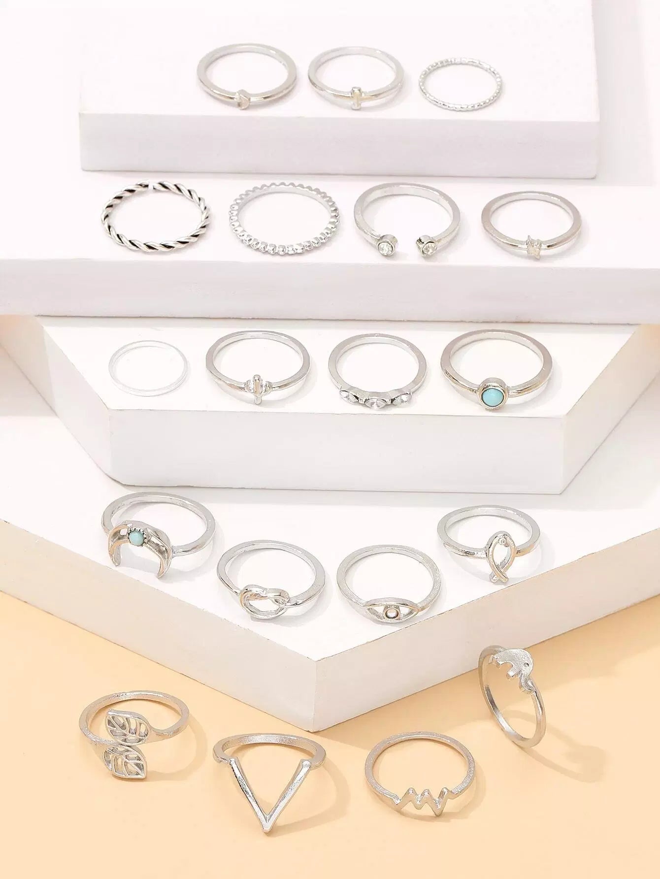 للنساء - خاتم ديكور ورق الشجر والقمر 18 قطعة