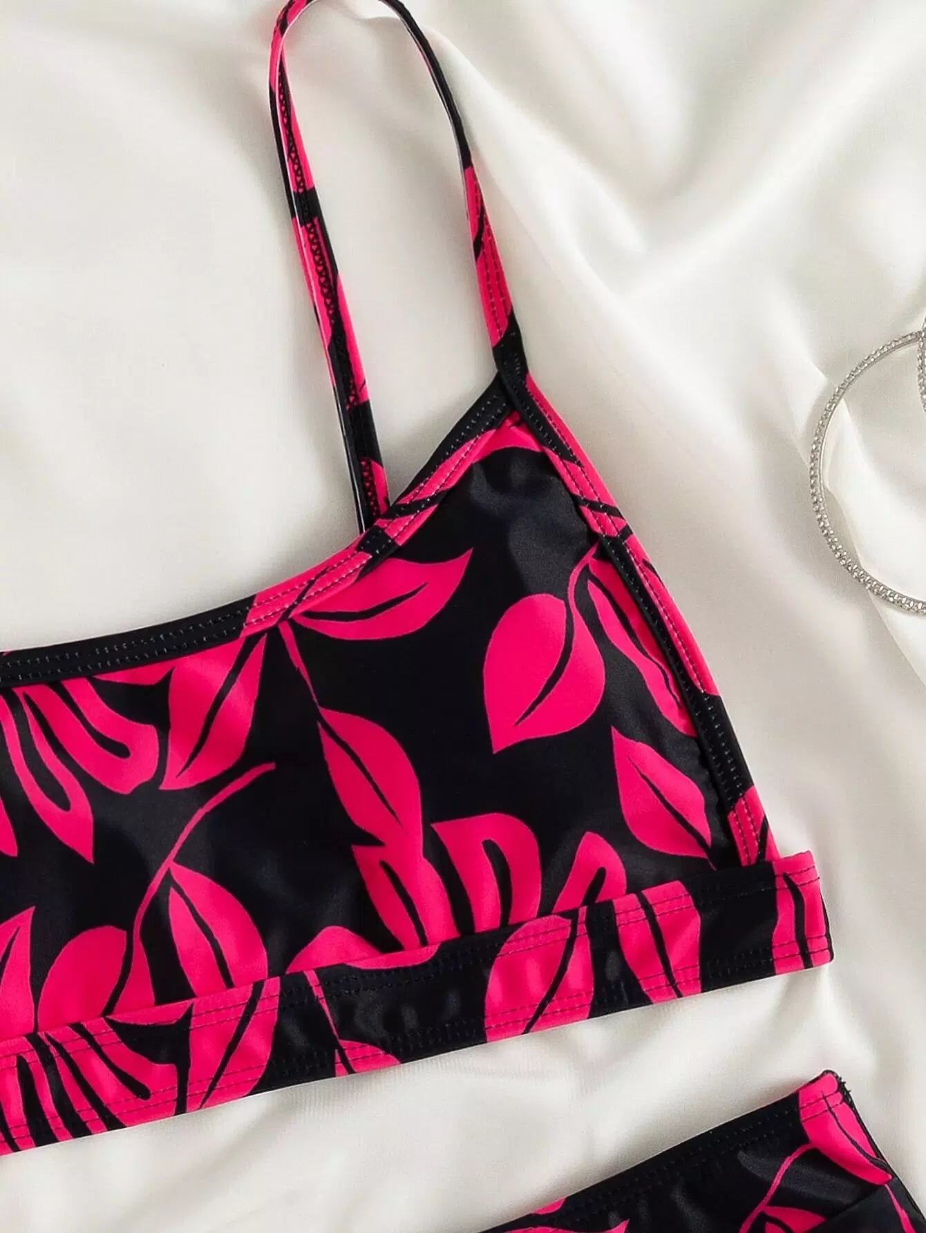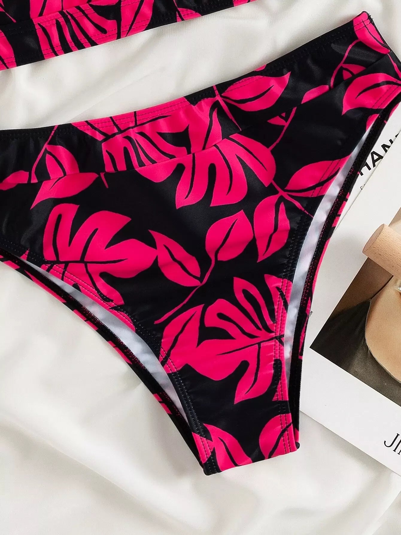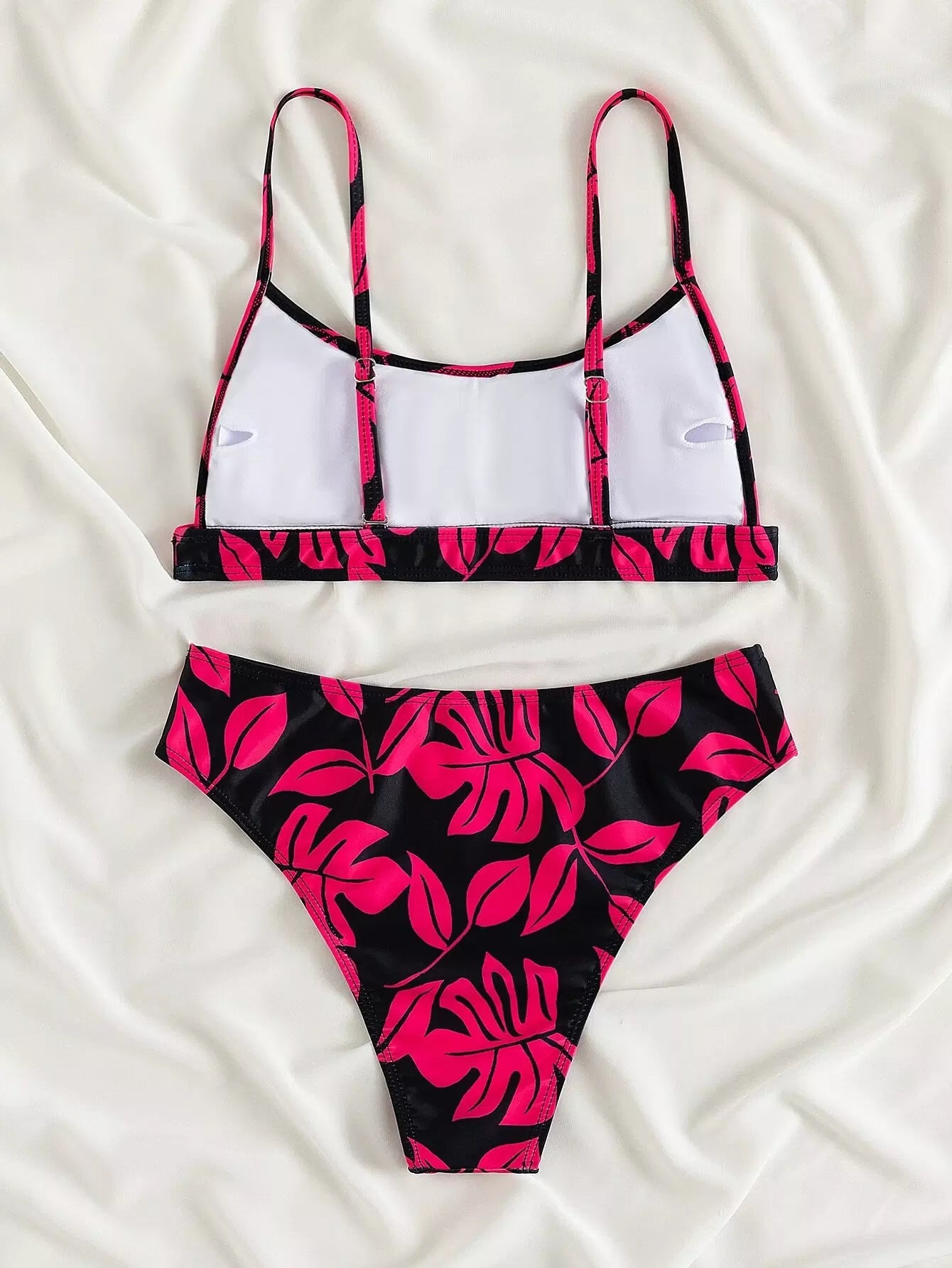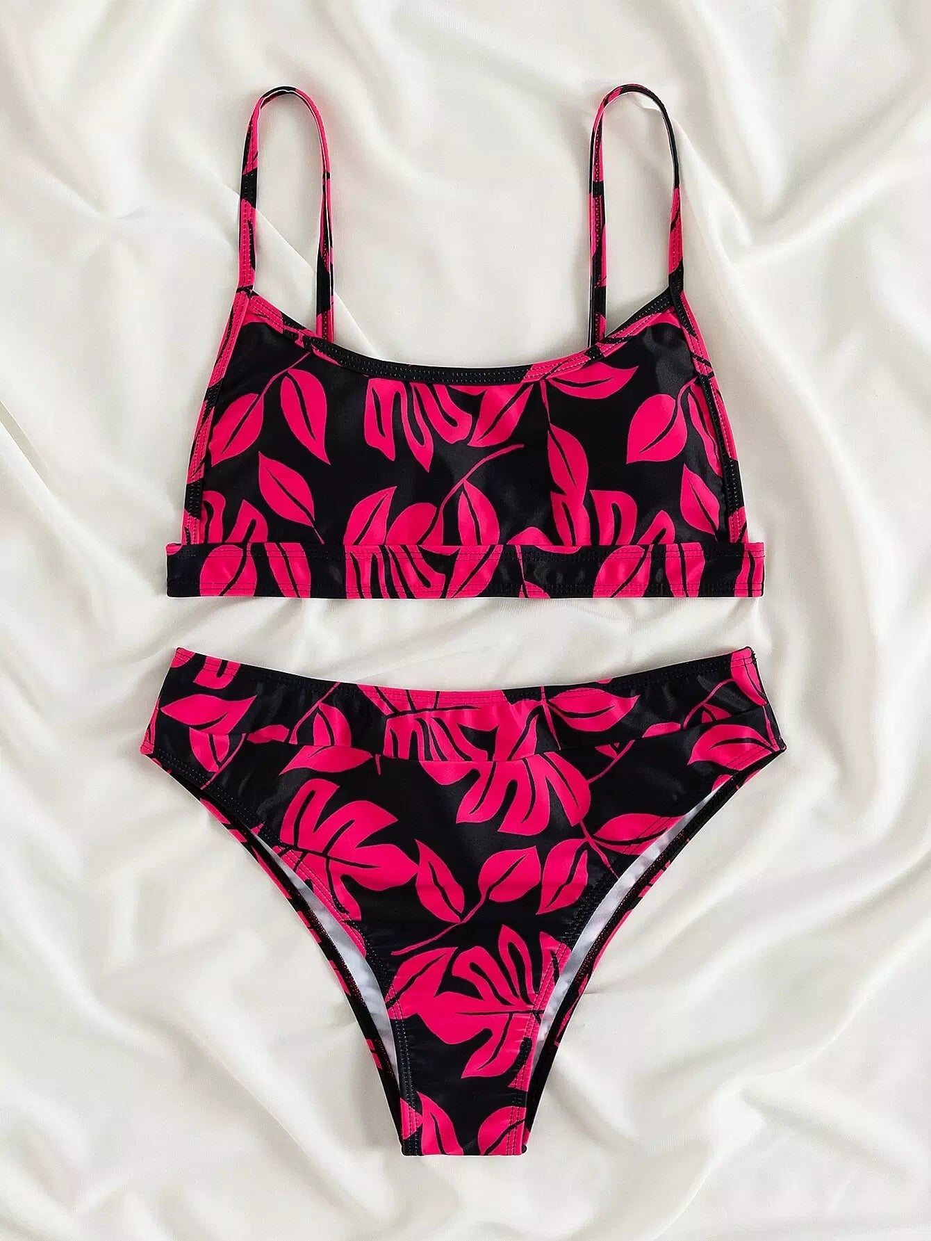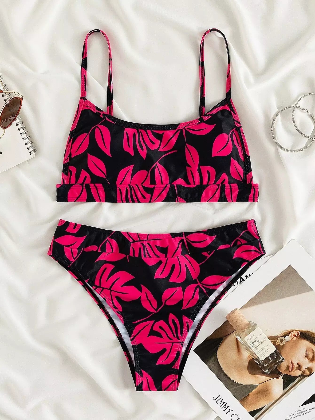 بيكيني سباحة بيكيني بطبعة أوراق الشجر العشوائية