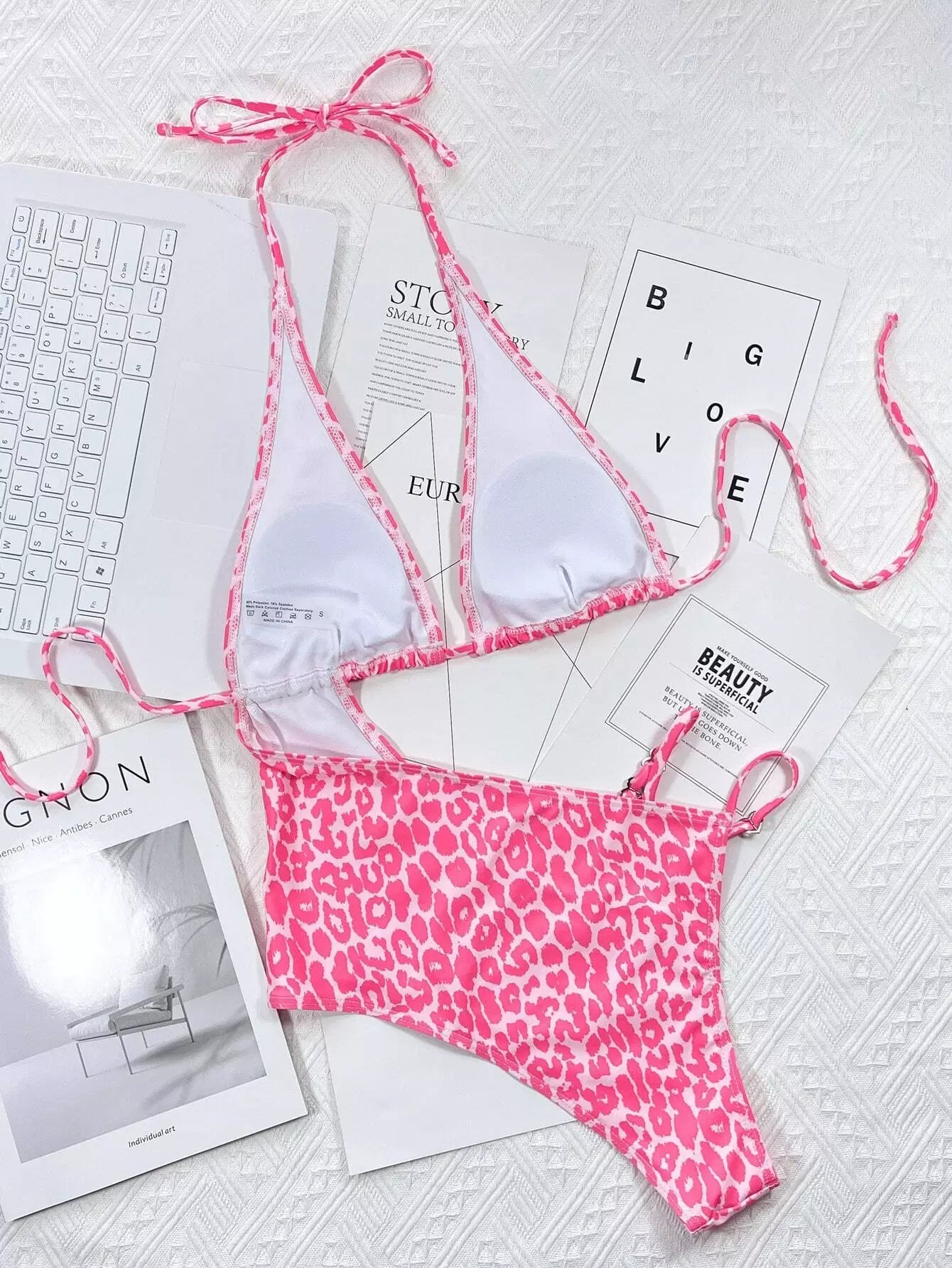 بدلة سباحة بقطعة واحدة غير متناسقة بقصّة جلد النمر