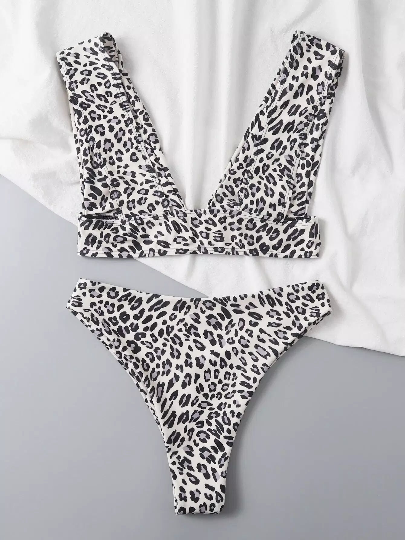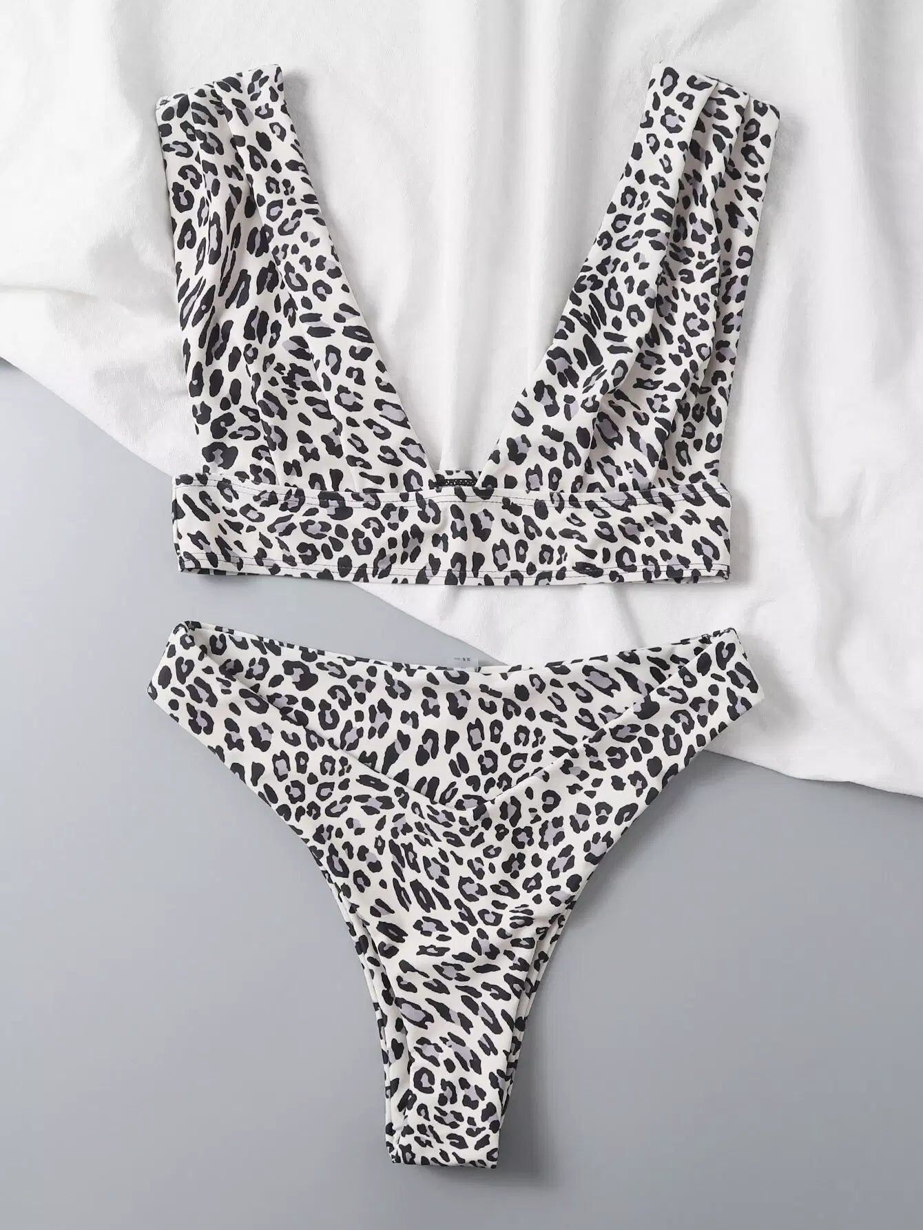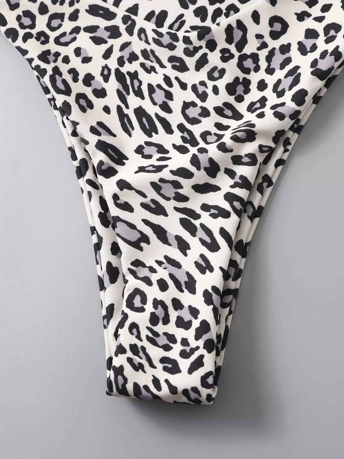 بدلة سباحة بيكيني بقصّة عالية بنقشة جلد النمر