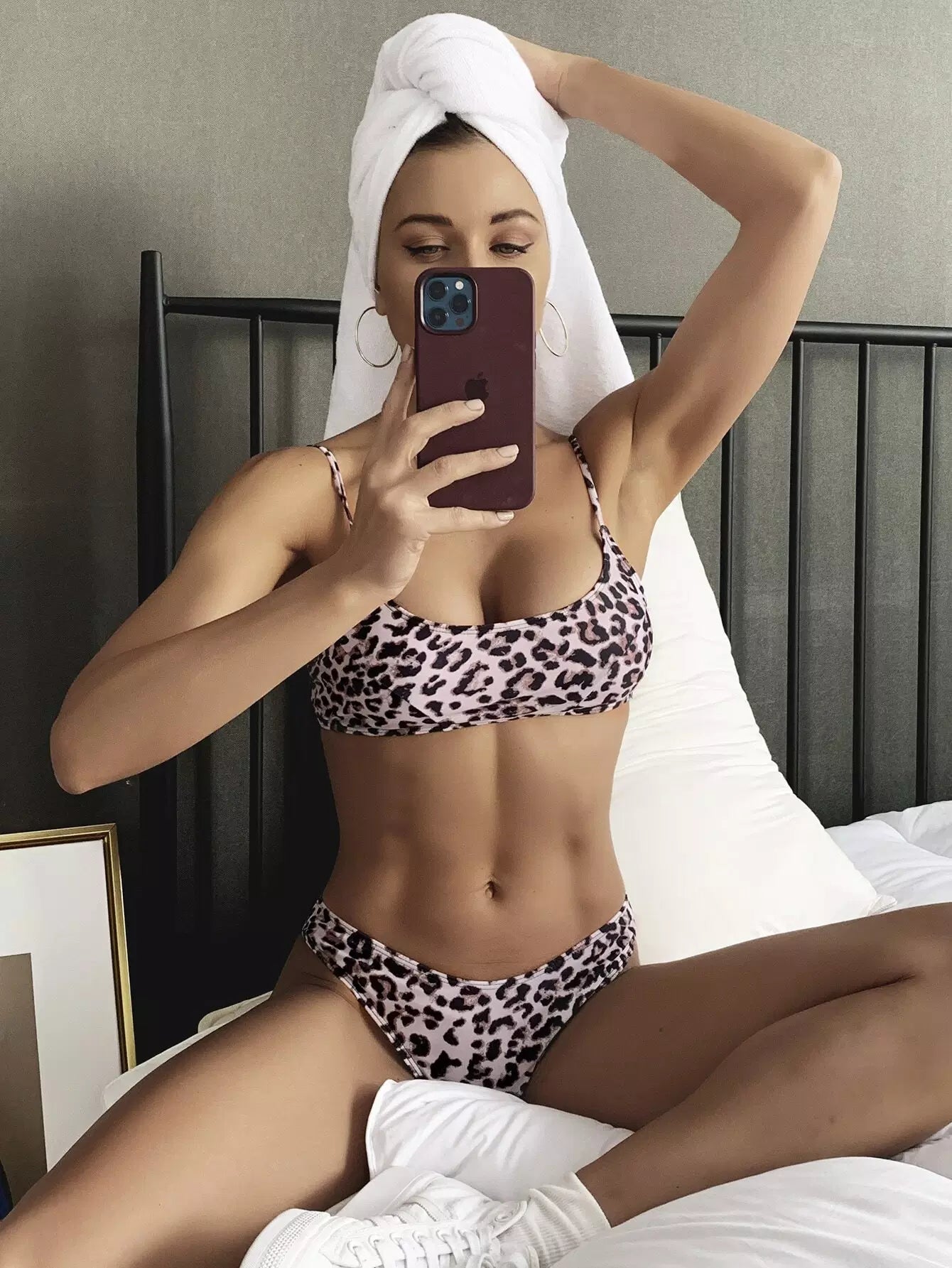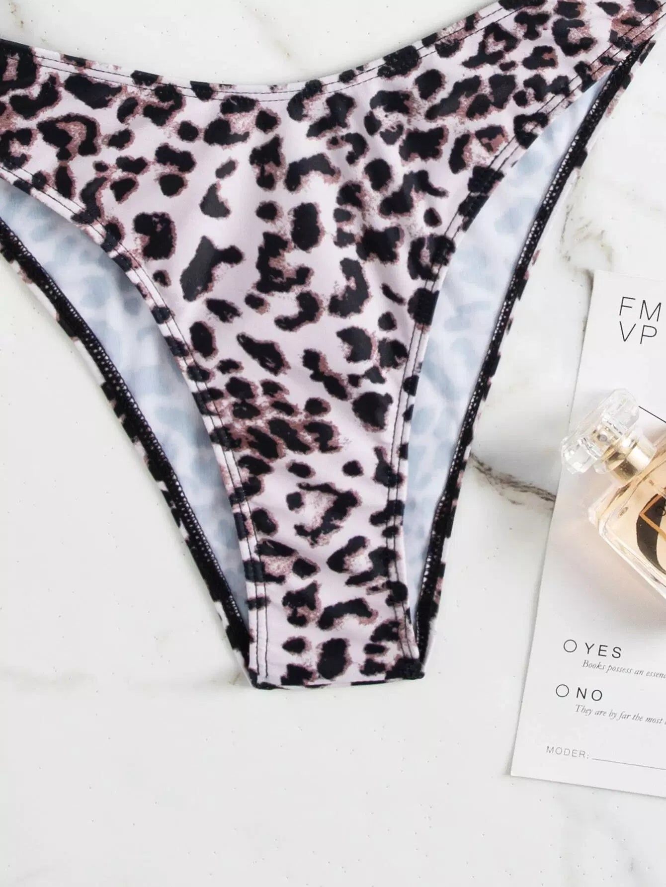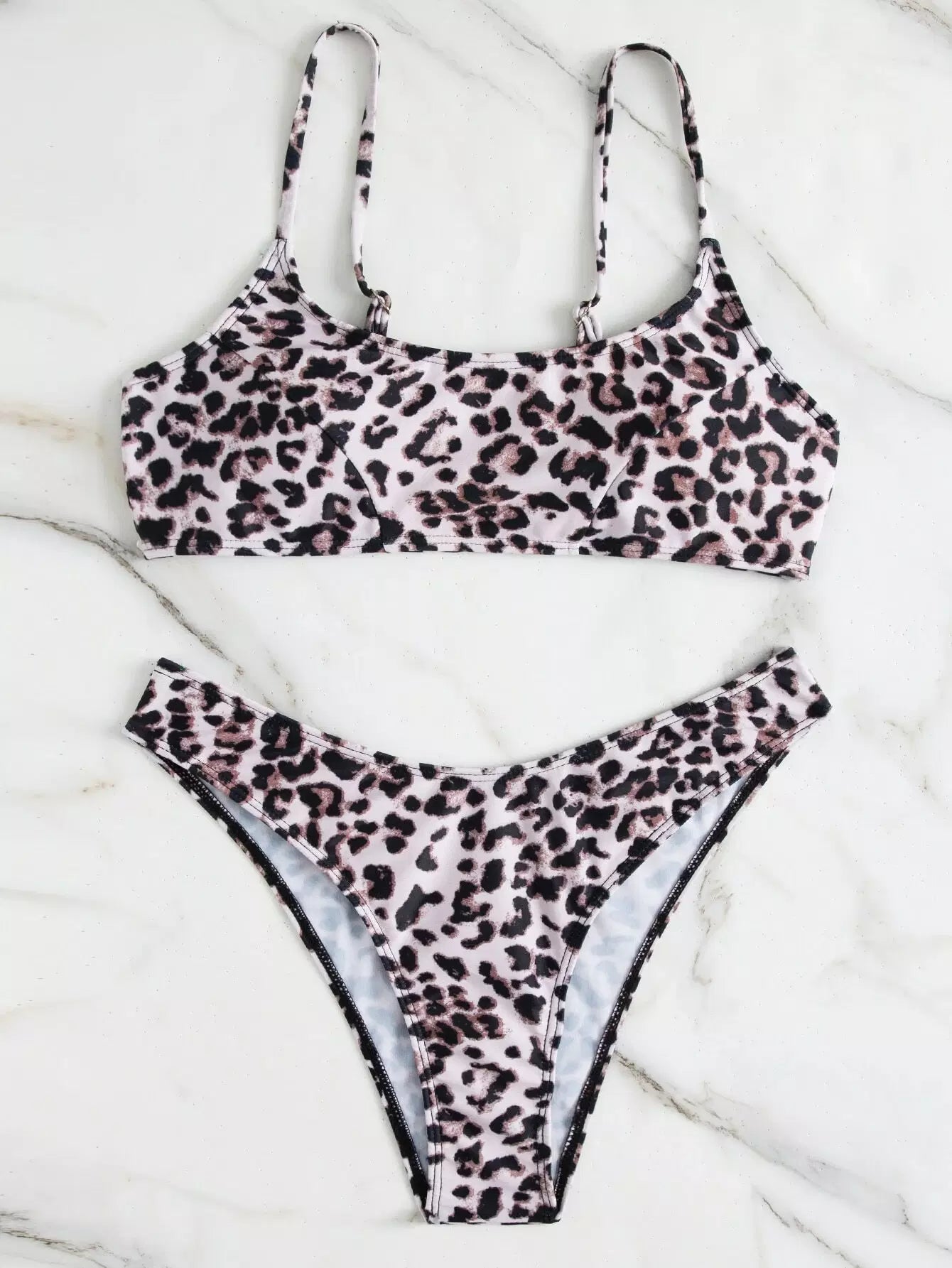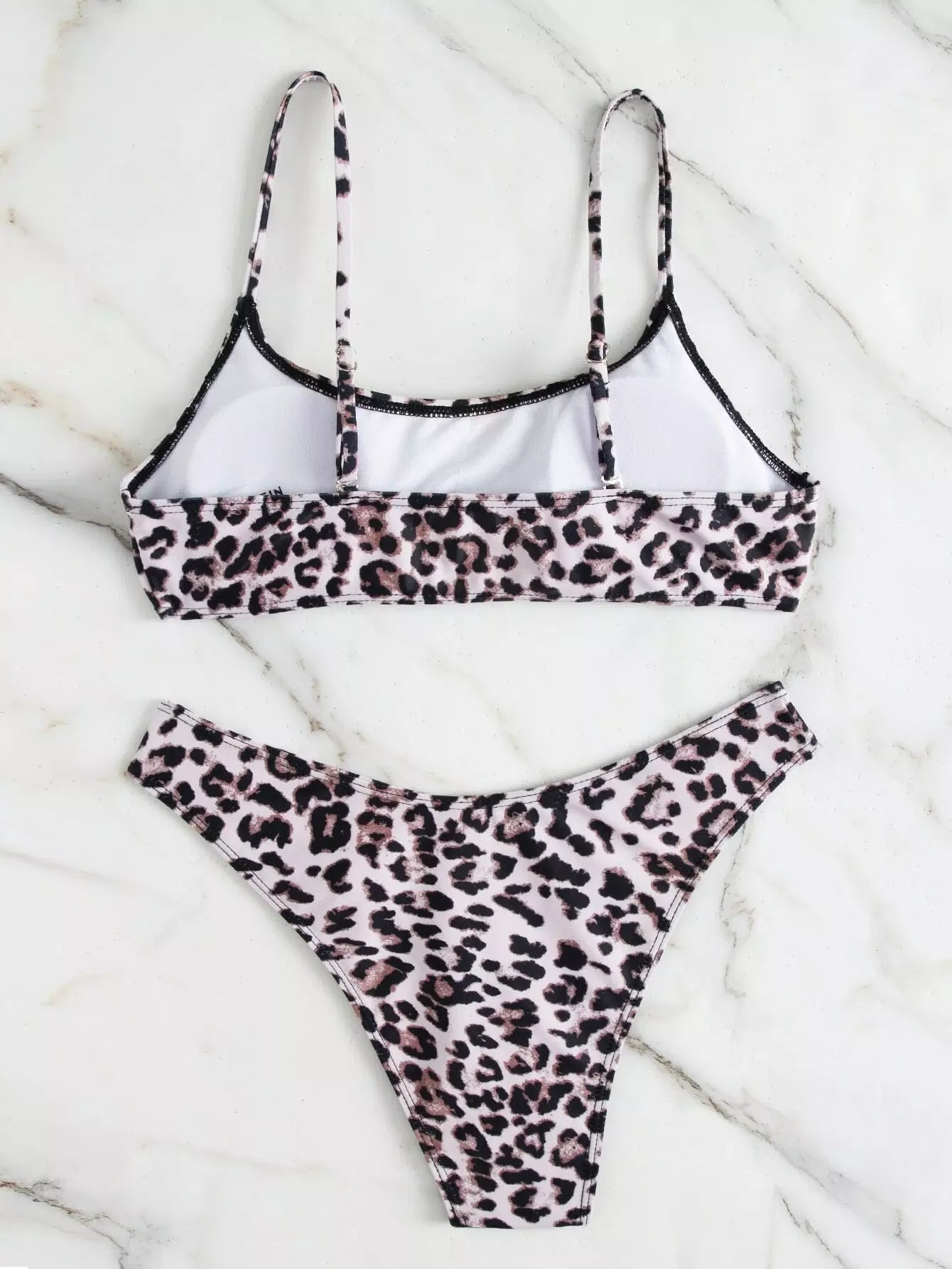 بدلة سباحة بيكيني بقصّة عالية بنقشة جلد النمر