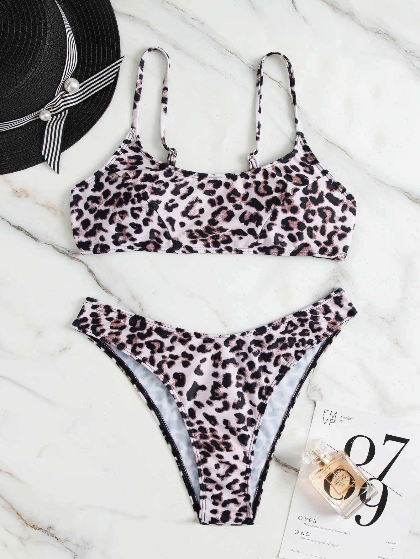النساء - ملابس السباحة بيكيني بقصة عالية على شكل جلد الفهد