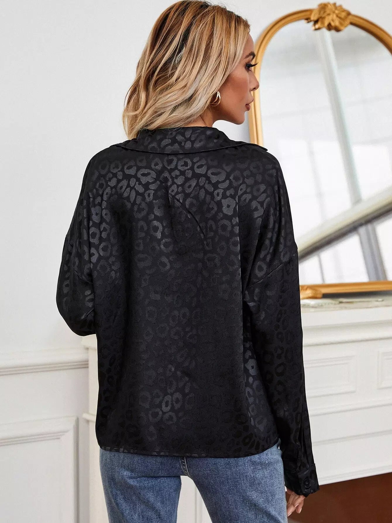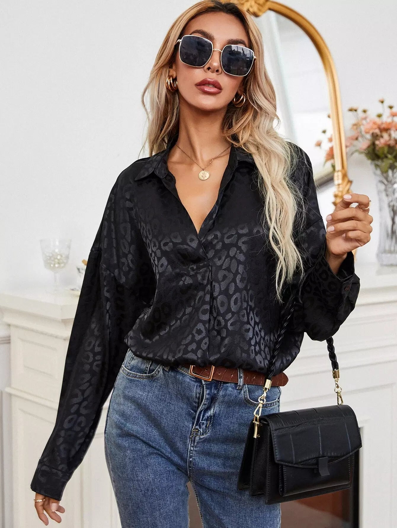 بلوزة بياقة من الجاكار على شكل حرف V برقبة على شكل جلد النمر