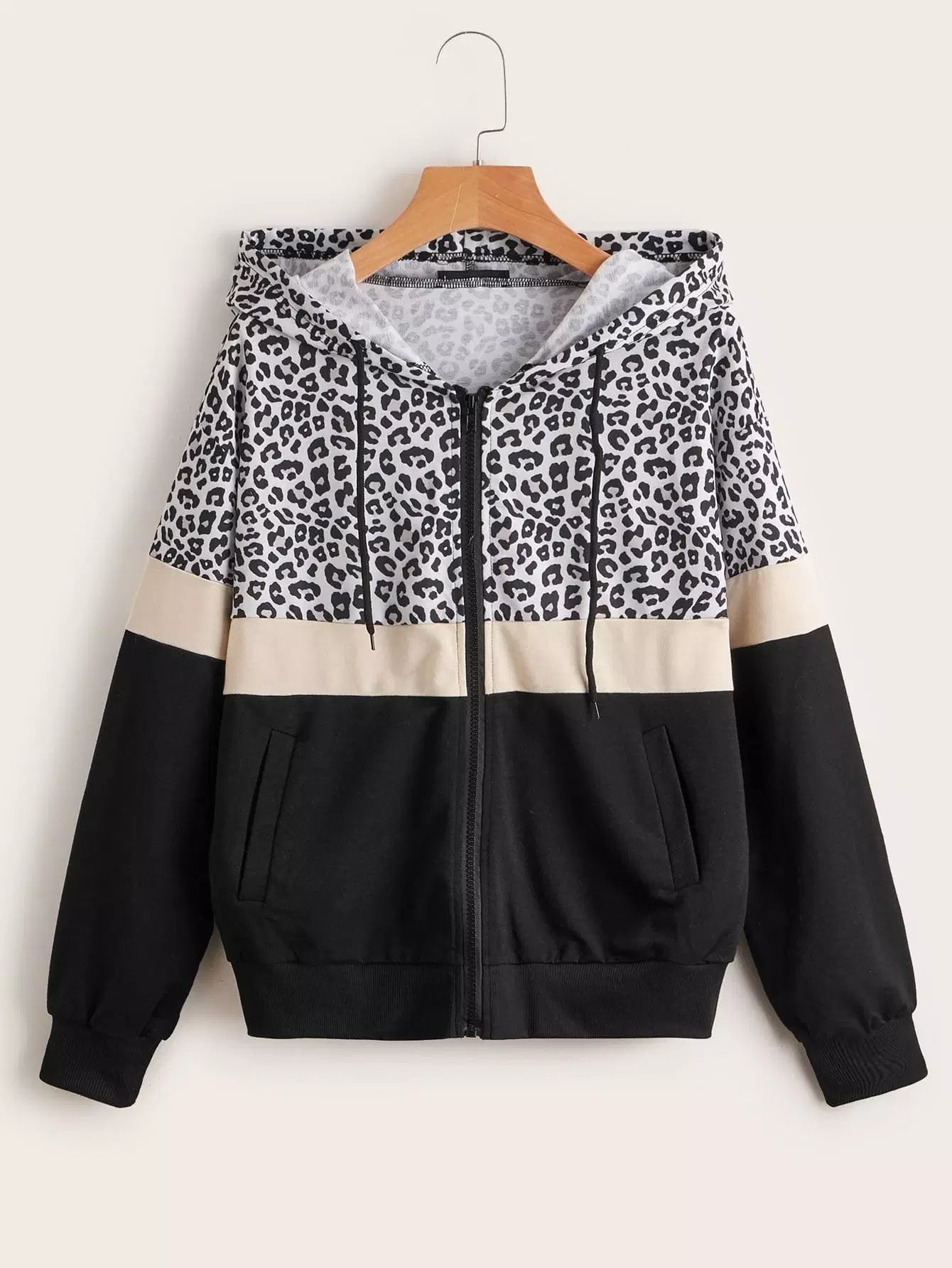 هودي بطبعة جلد النمر بطبعة ملونة برباط برباط