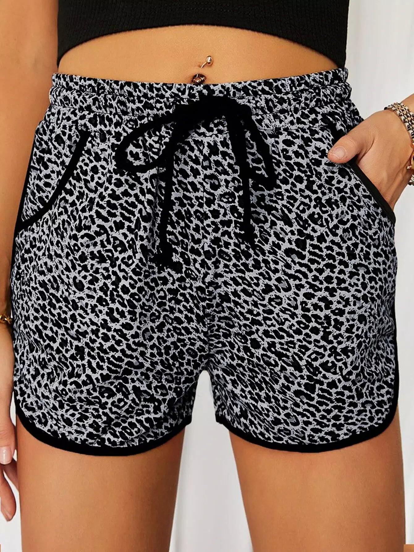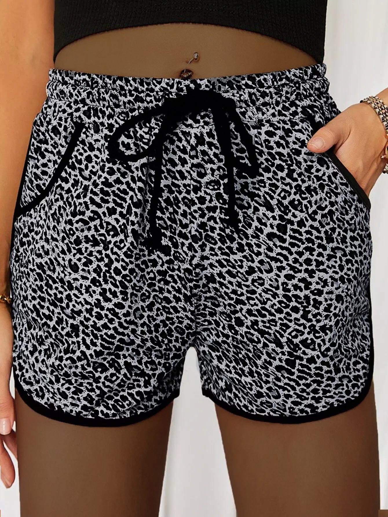 شورت بطبعات جلد النمر مع أربطة متباينة