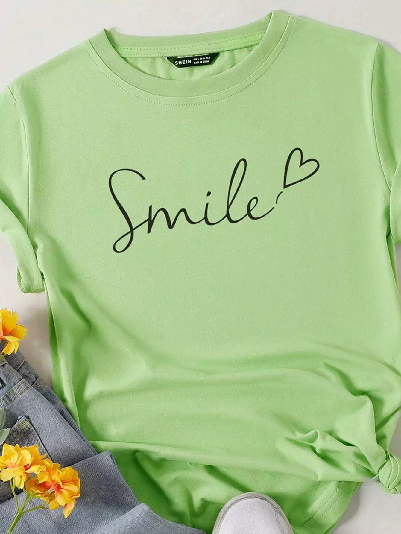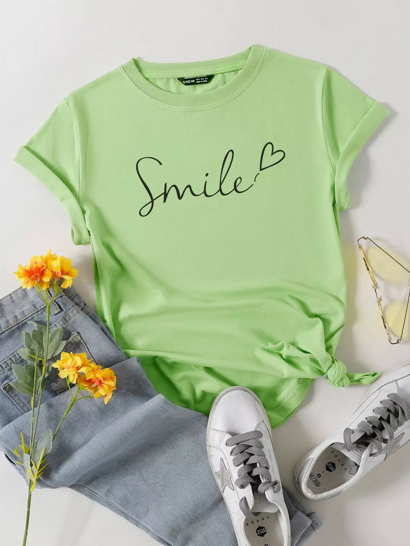 للنساء - تي شيرت مطبوع عليه حروف وقلب