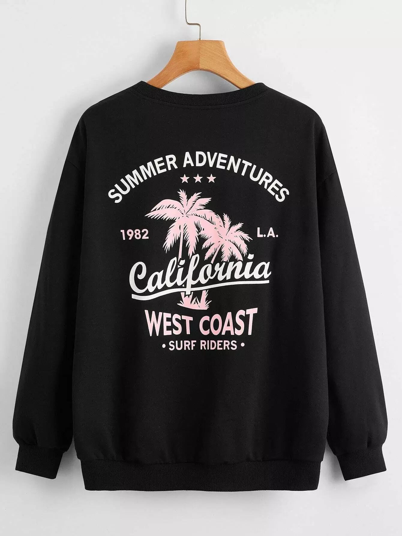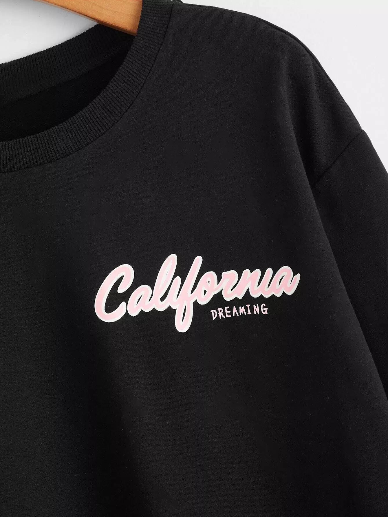 النساء - بلوفر بكتف منسدل مطبوع عليه حروف واستوائية