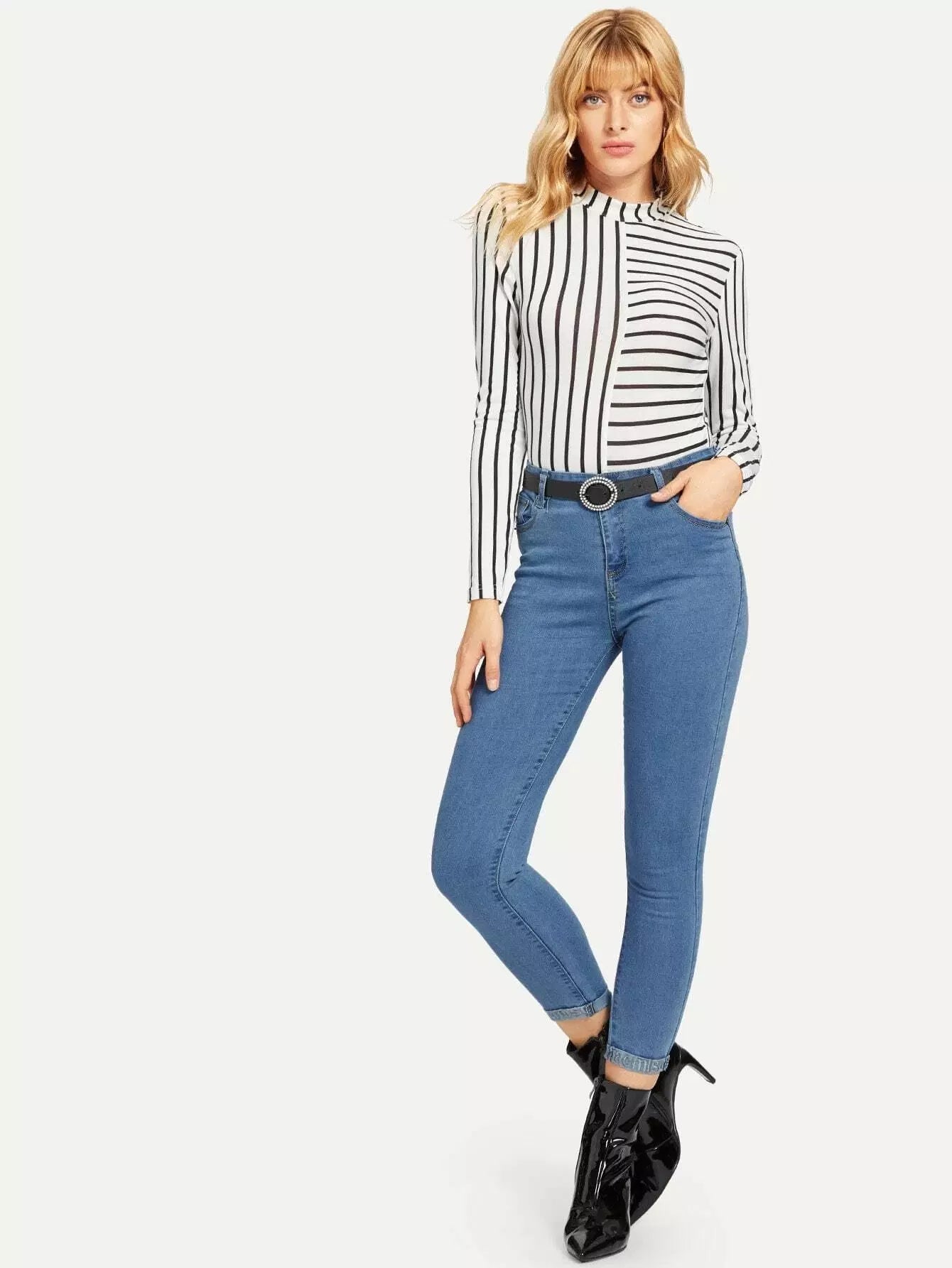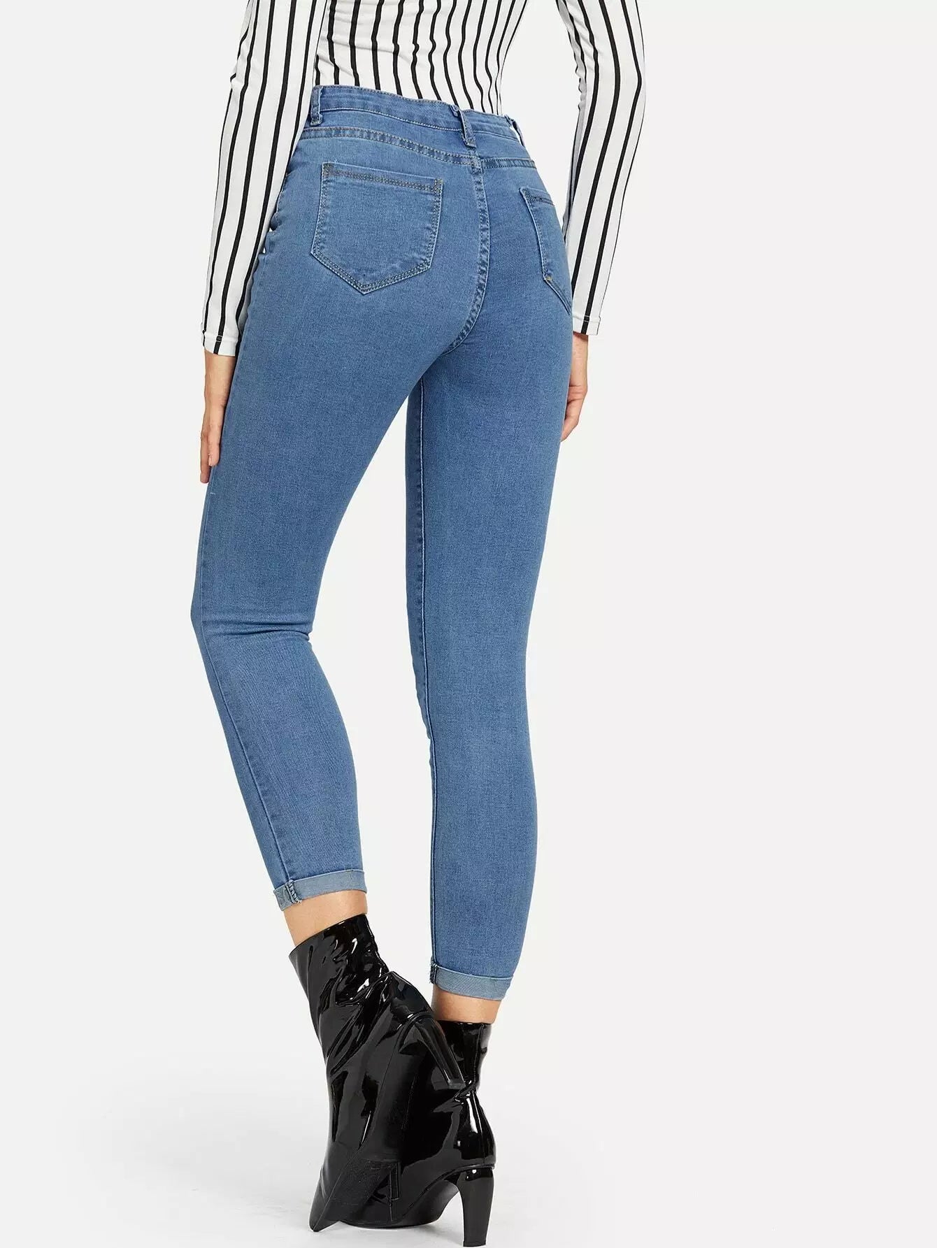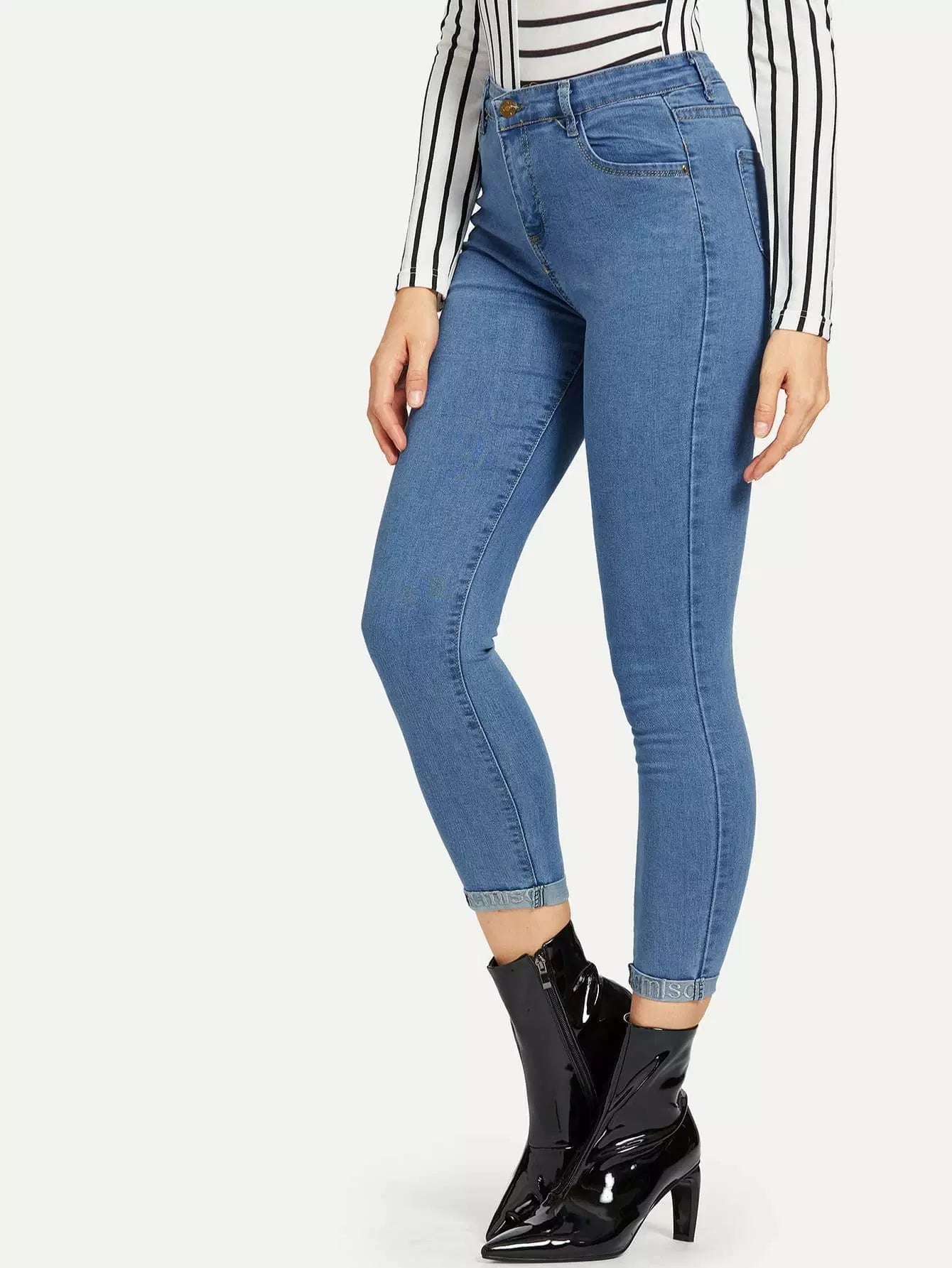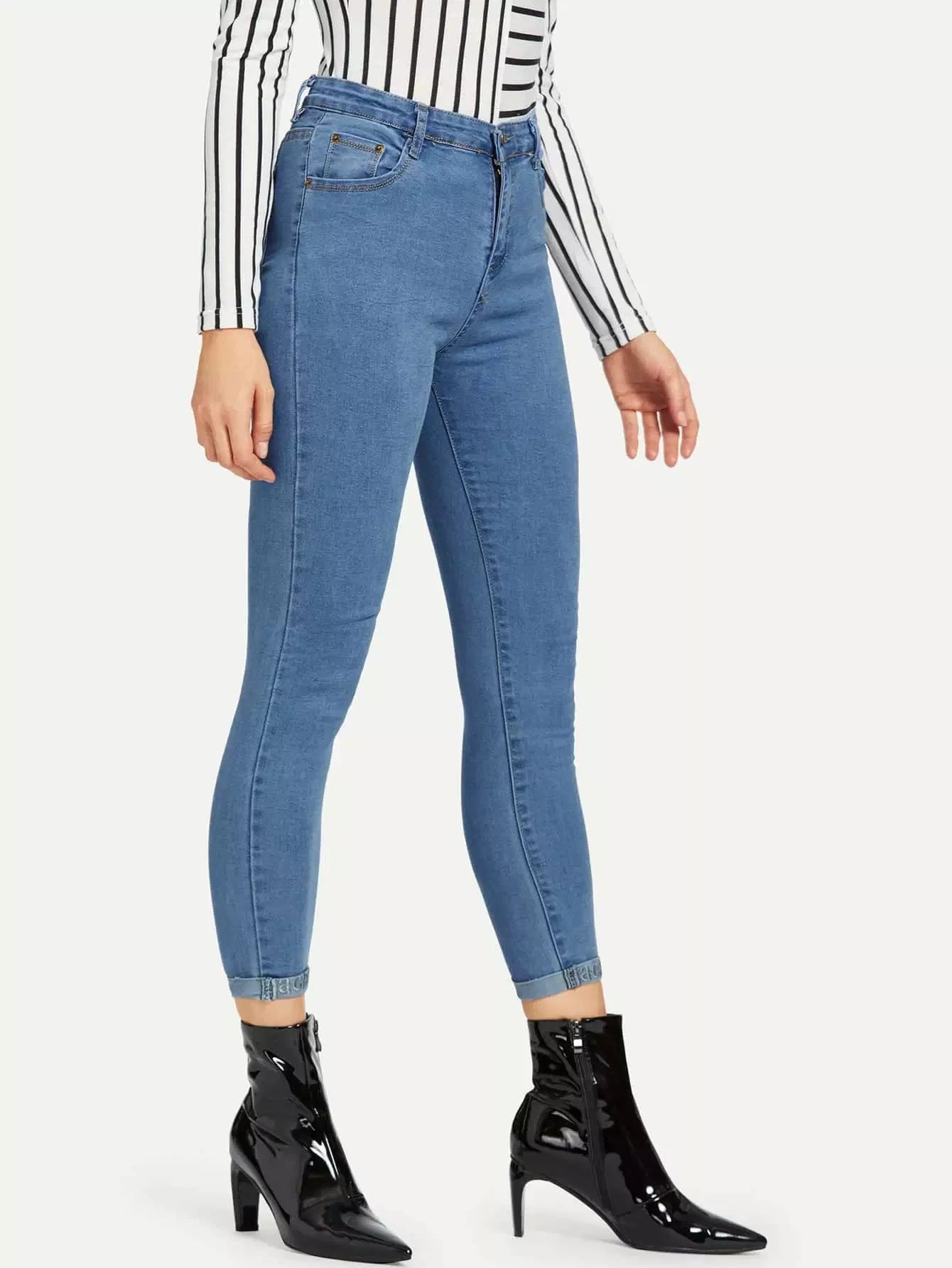 بنطلون جينز جينز رول أب مطرز بحروف