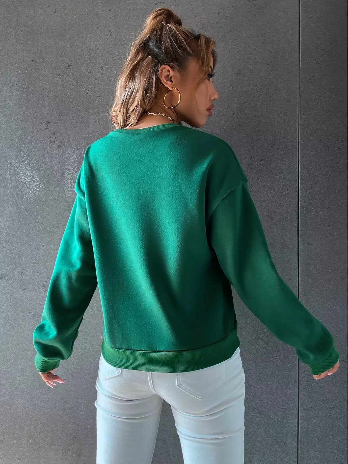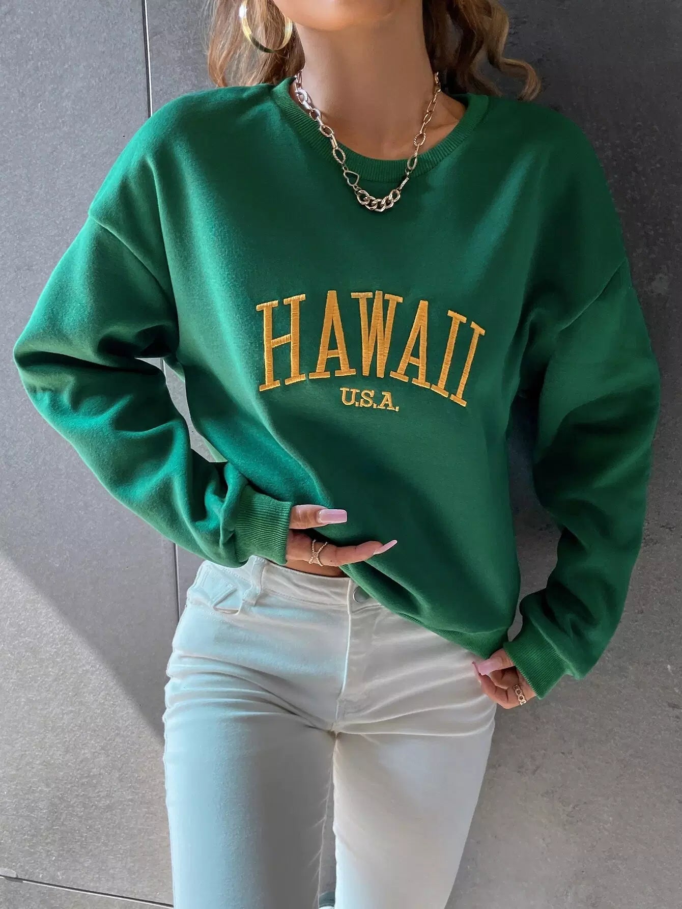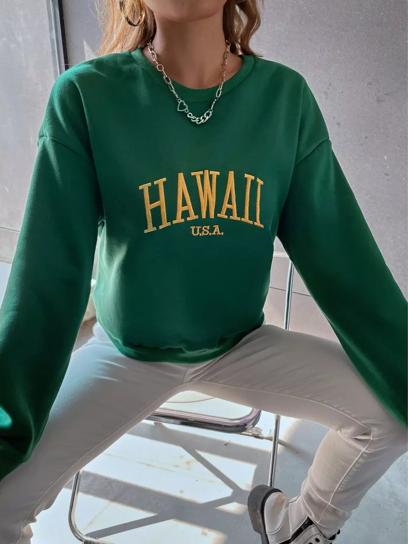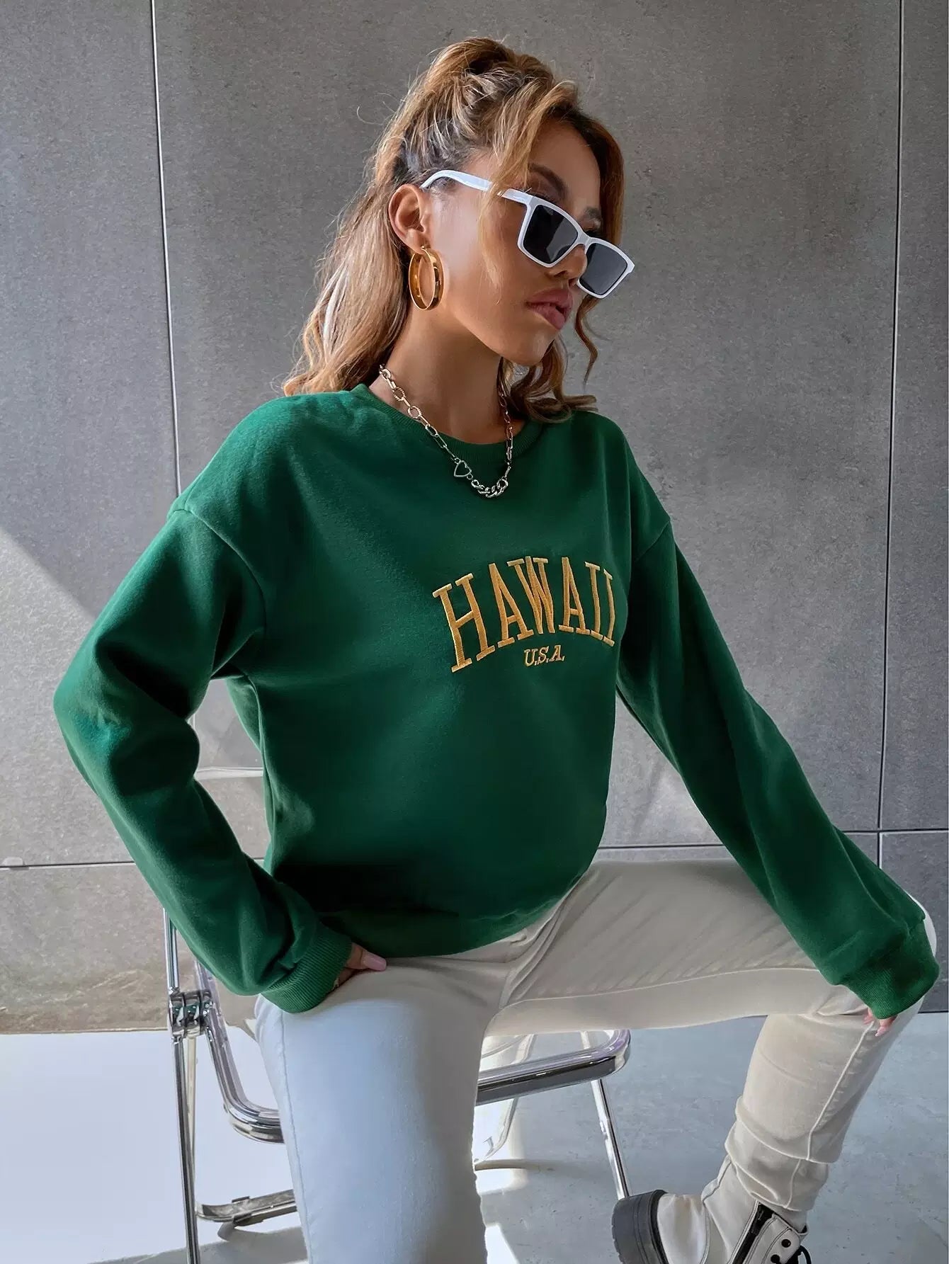سويت شيرت منسدل الكتف مطرز بتطريز حروف