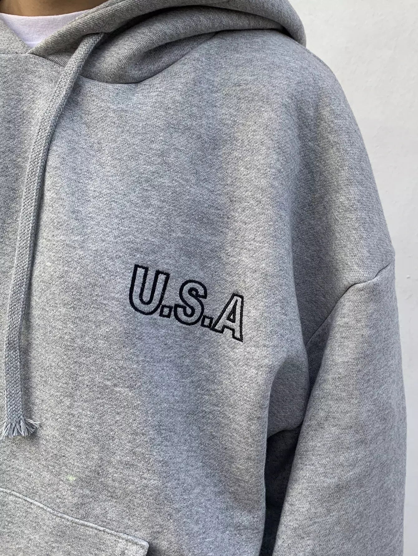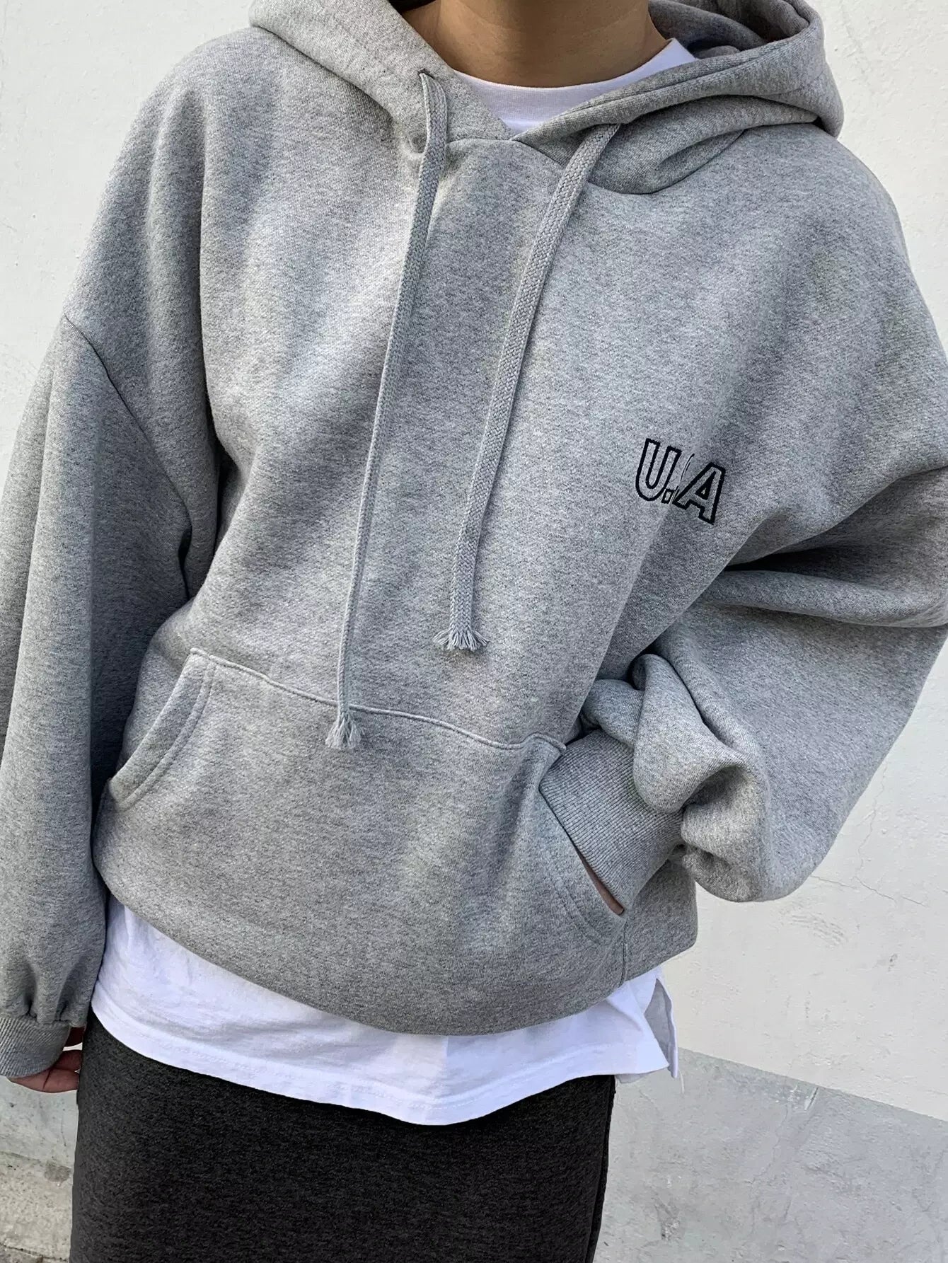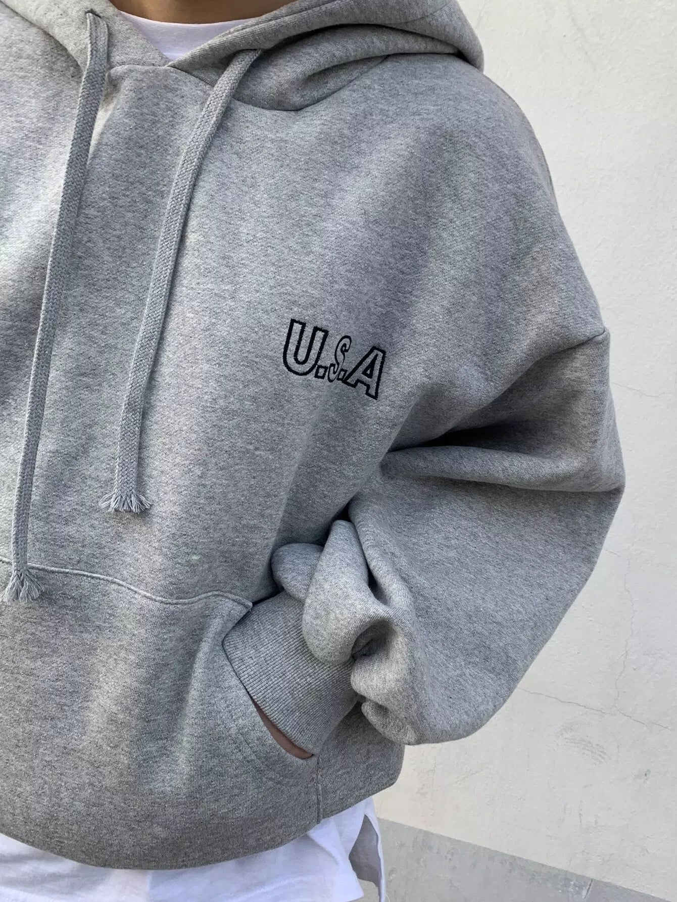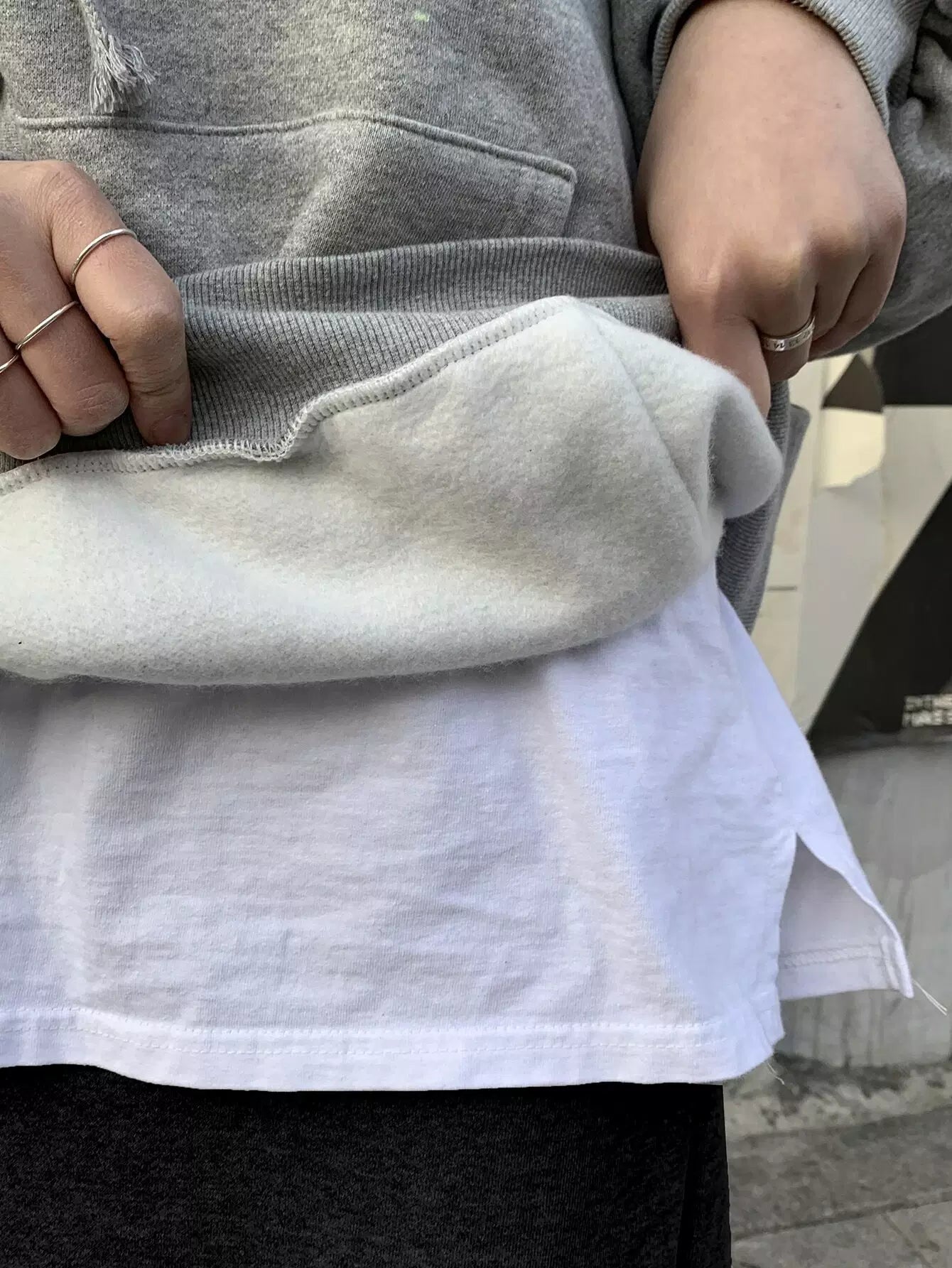 هودي حراري بدون قميص حراري مطرز بحروف كنغر بجيب منسدل على الكتف بدون قميص
