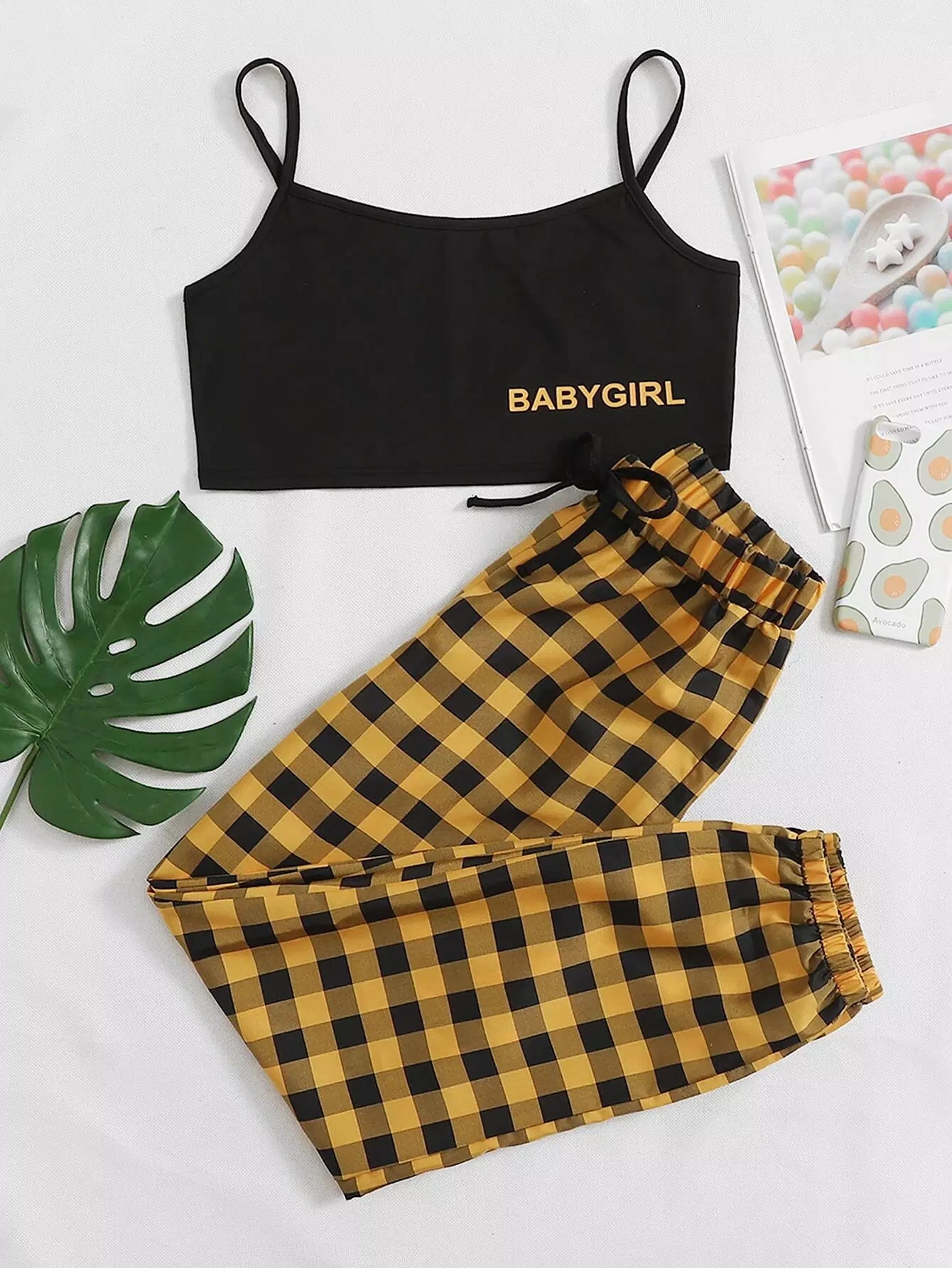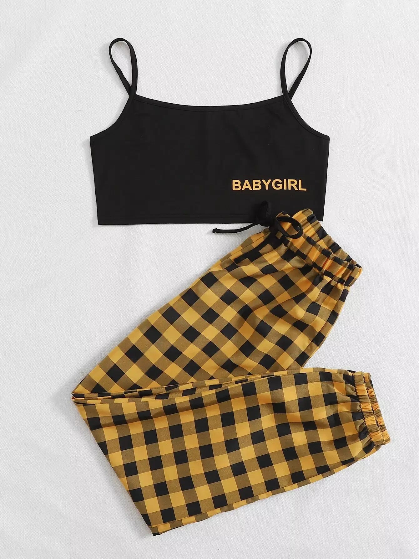 طقم بيجامة بنطلون قطني وقميص كامي برسومات حروف وبنطلون قطني