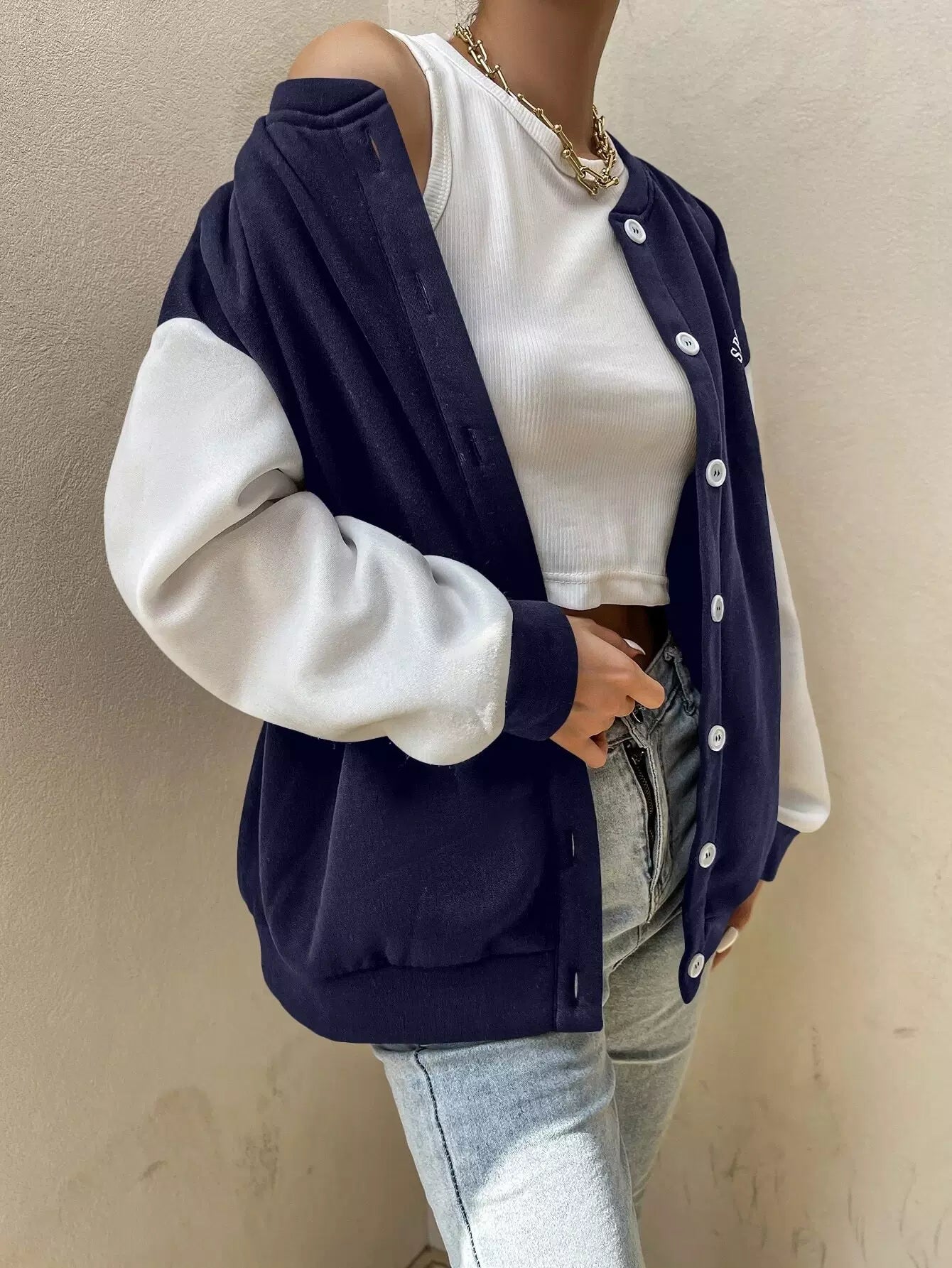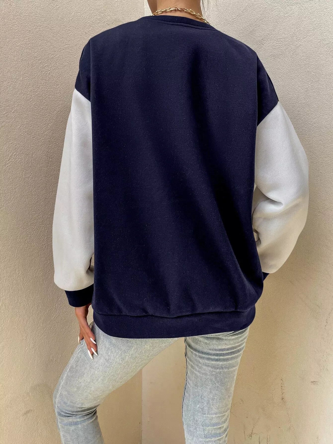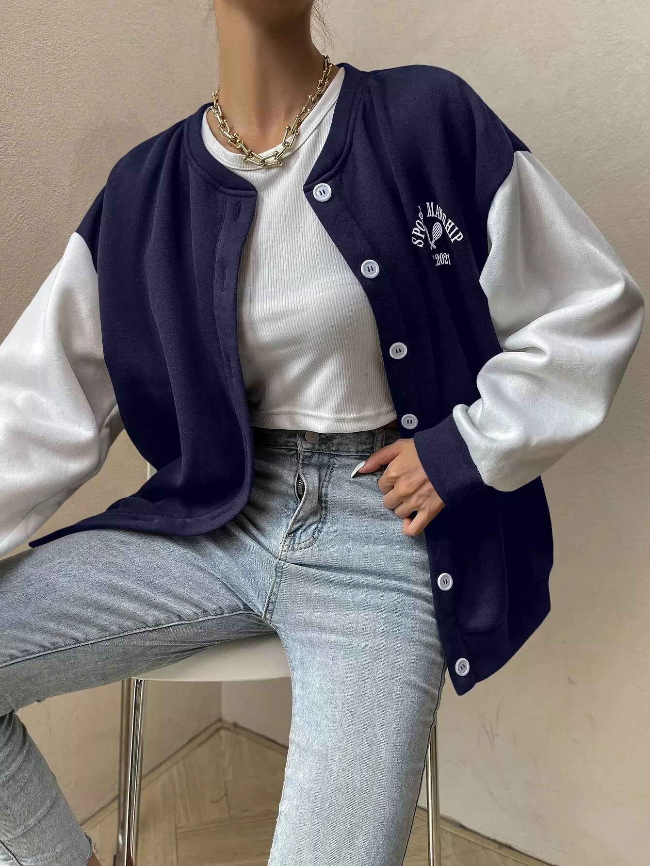 سويت شيرت برسومات حروف ملونة منسدلة على الكتف بأزرار أمامية