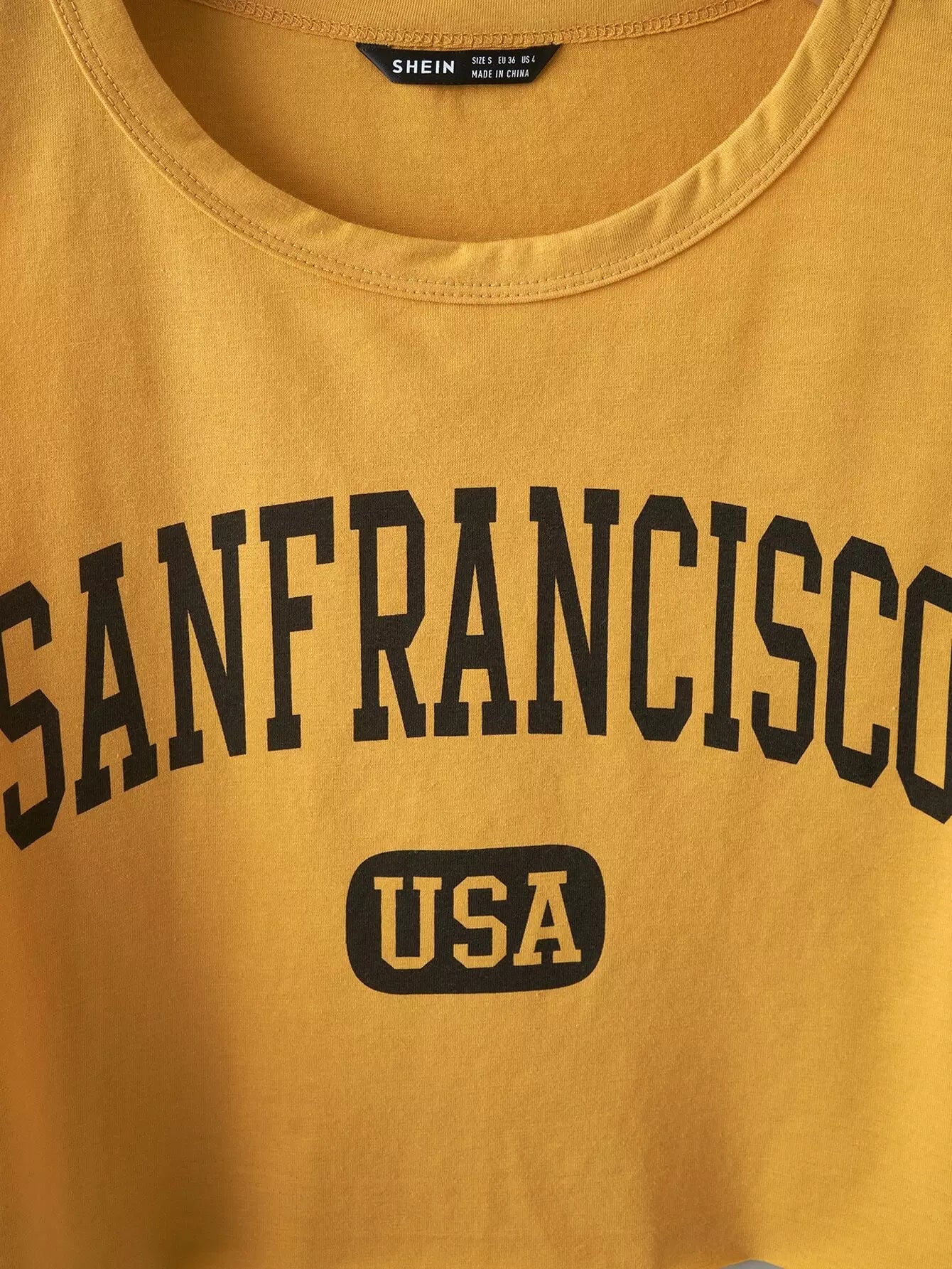 تيشيرت بدون أكمام قصير قصير برسومات على شكل حرف