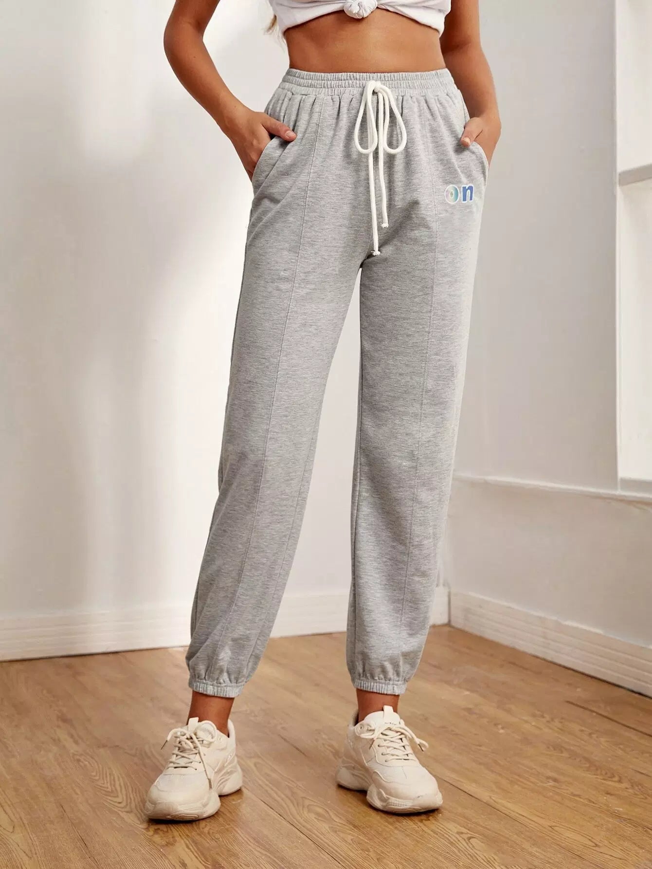 بنطال رياضي قصير مزين بأحرف جرافيكية