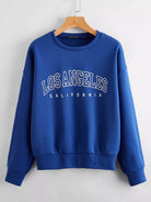 للنساء - سويت شيرت بكتف منسدل ورسومات عليها حروف