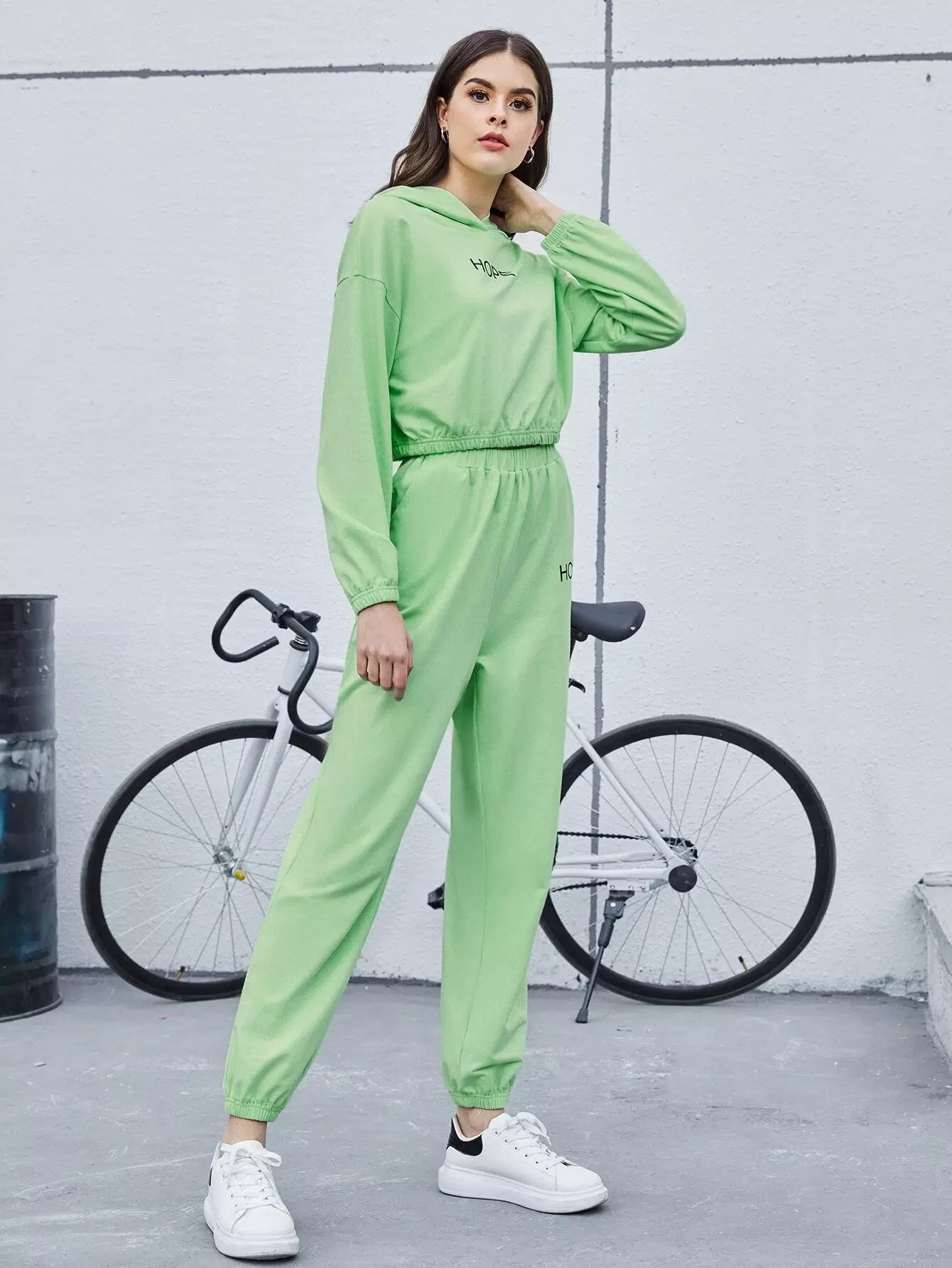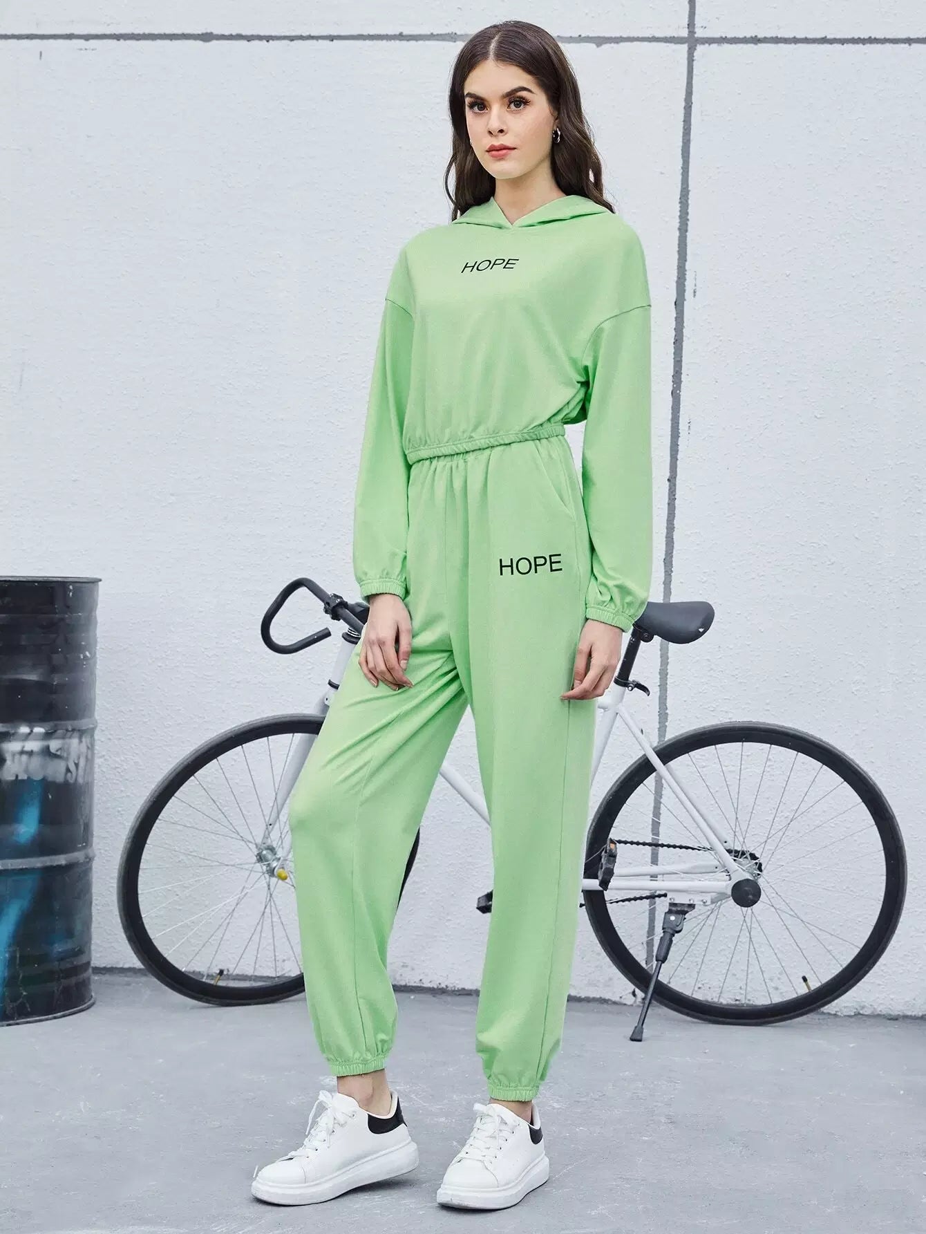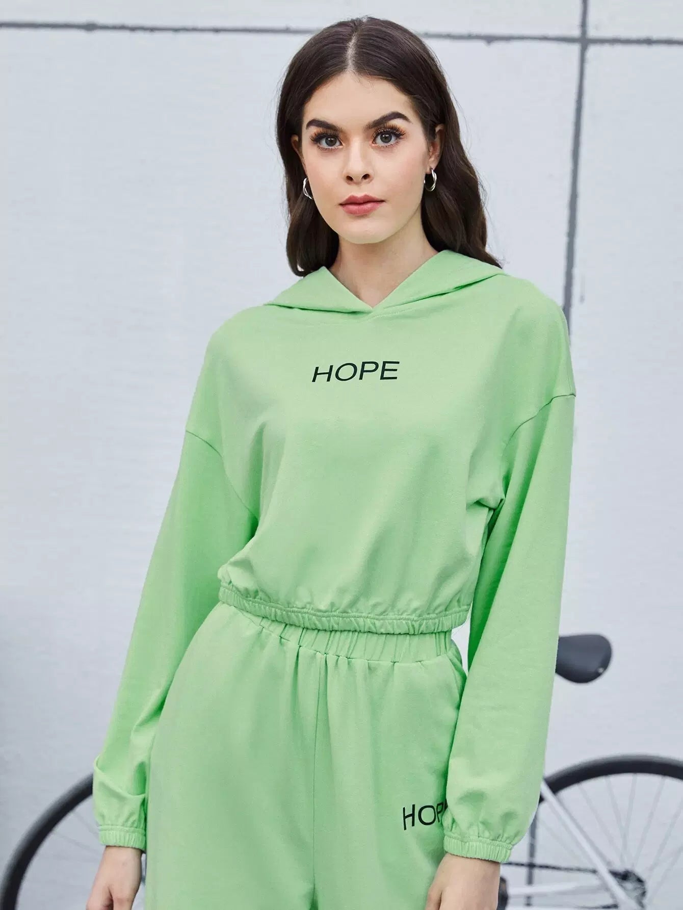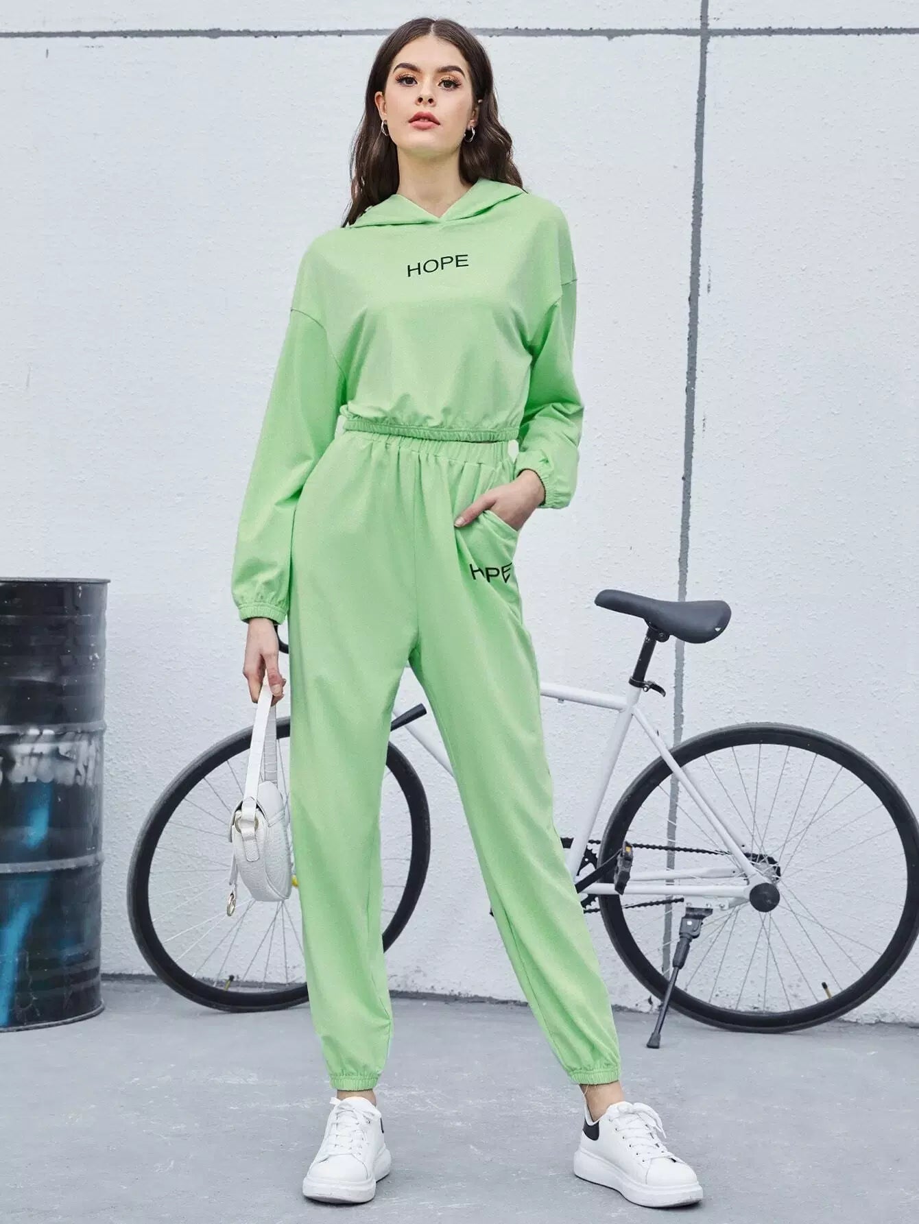 طقم هودي هودي برسومات حروف وجيب مائل بجيب مائل