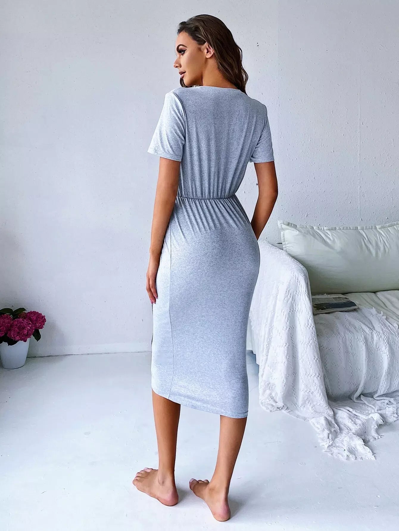 فستان نوم مفصل بعقدة جرافيك على شكل حرف