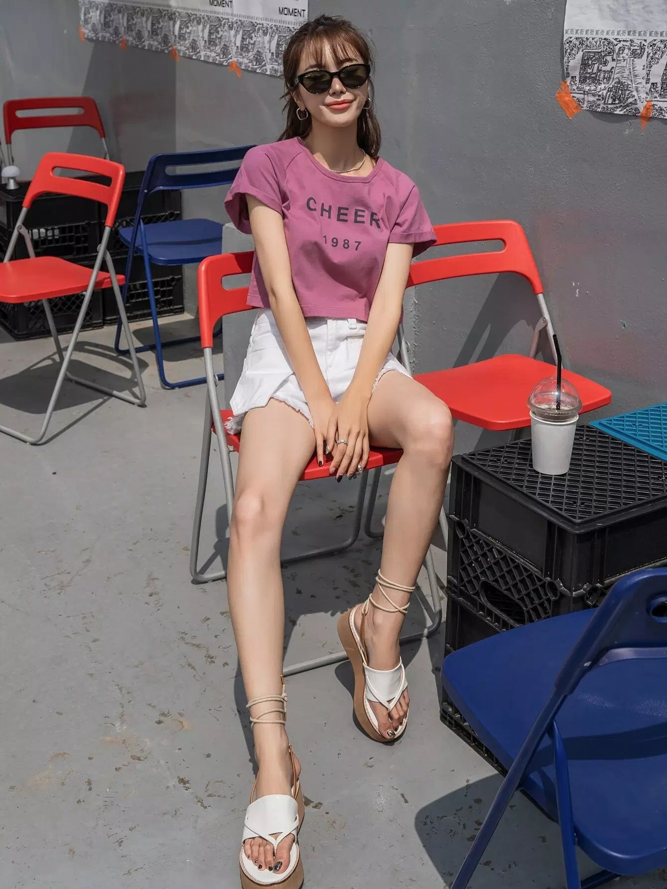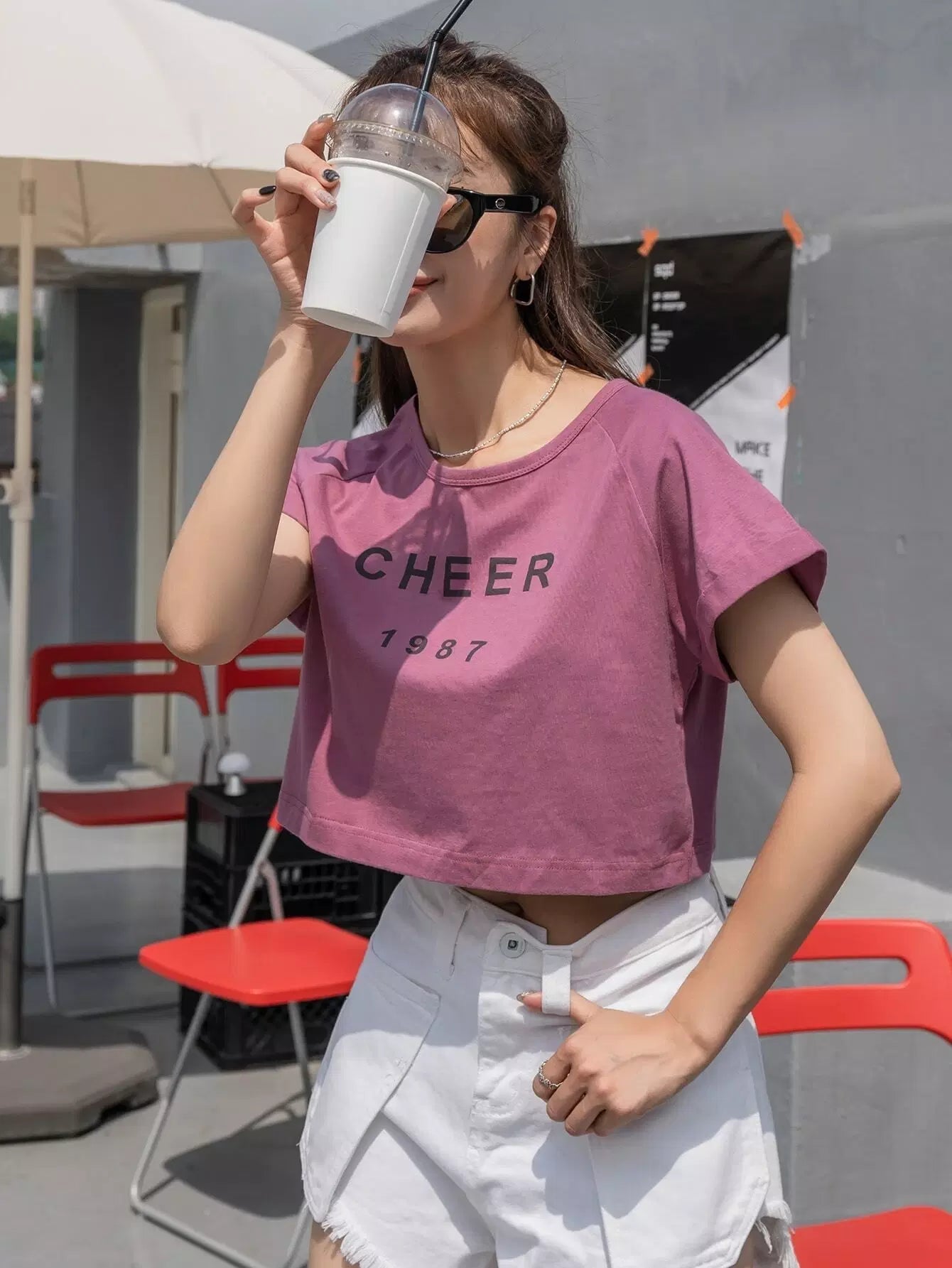 تي شيرت قصير بأكمام راجلان ورسومات أحرف