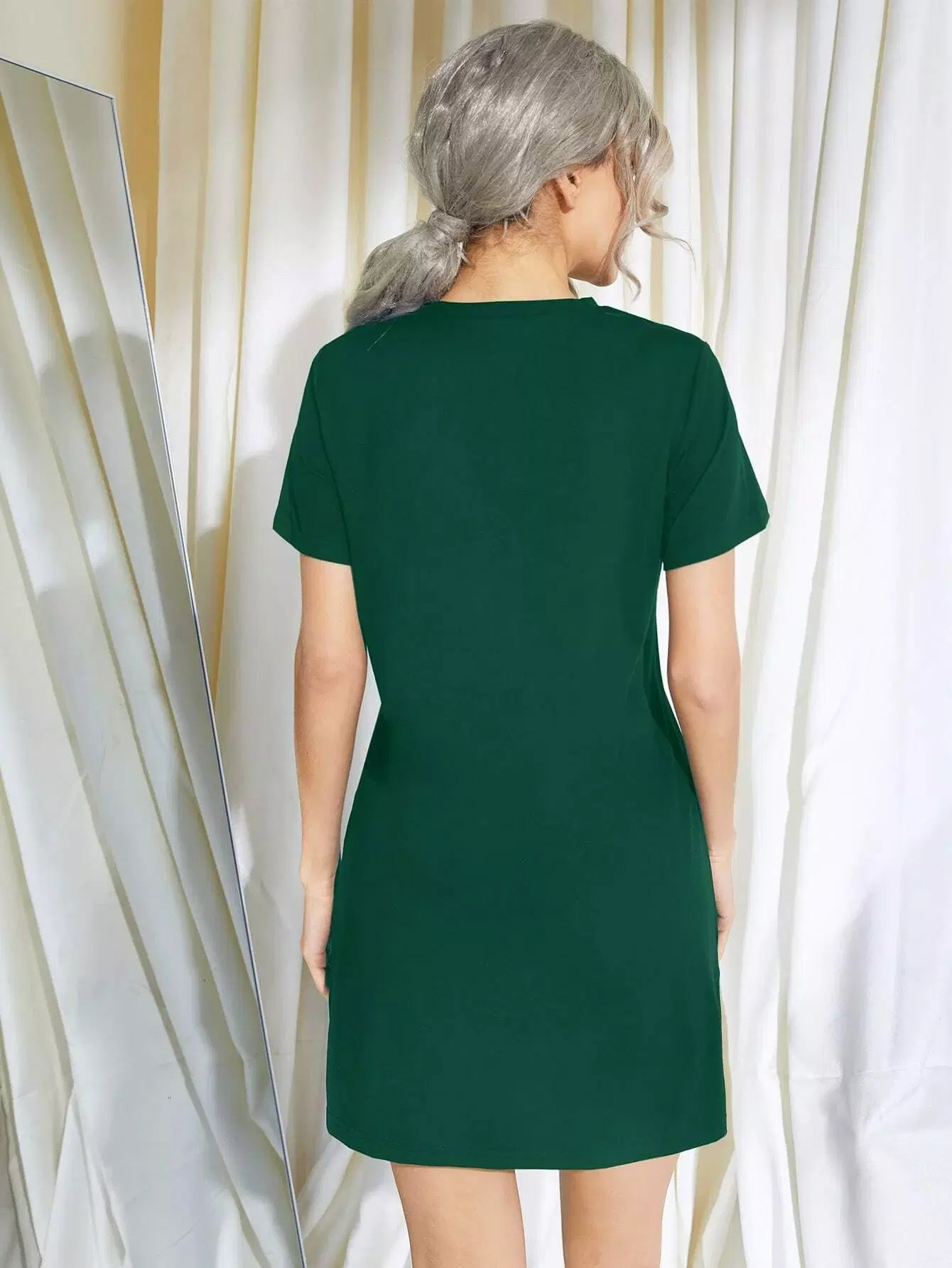 فستان نوم بأكمام قصيرة برسومات حروف قصيرة الأكمام
