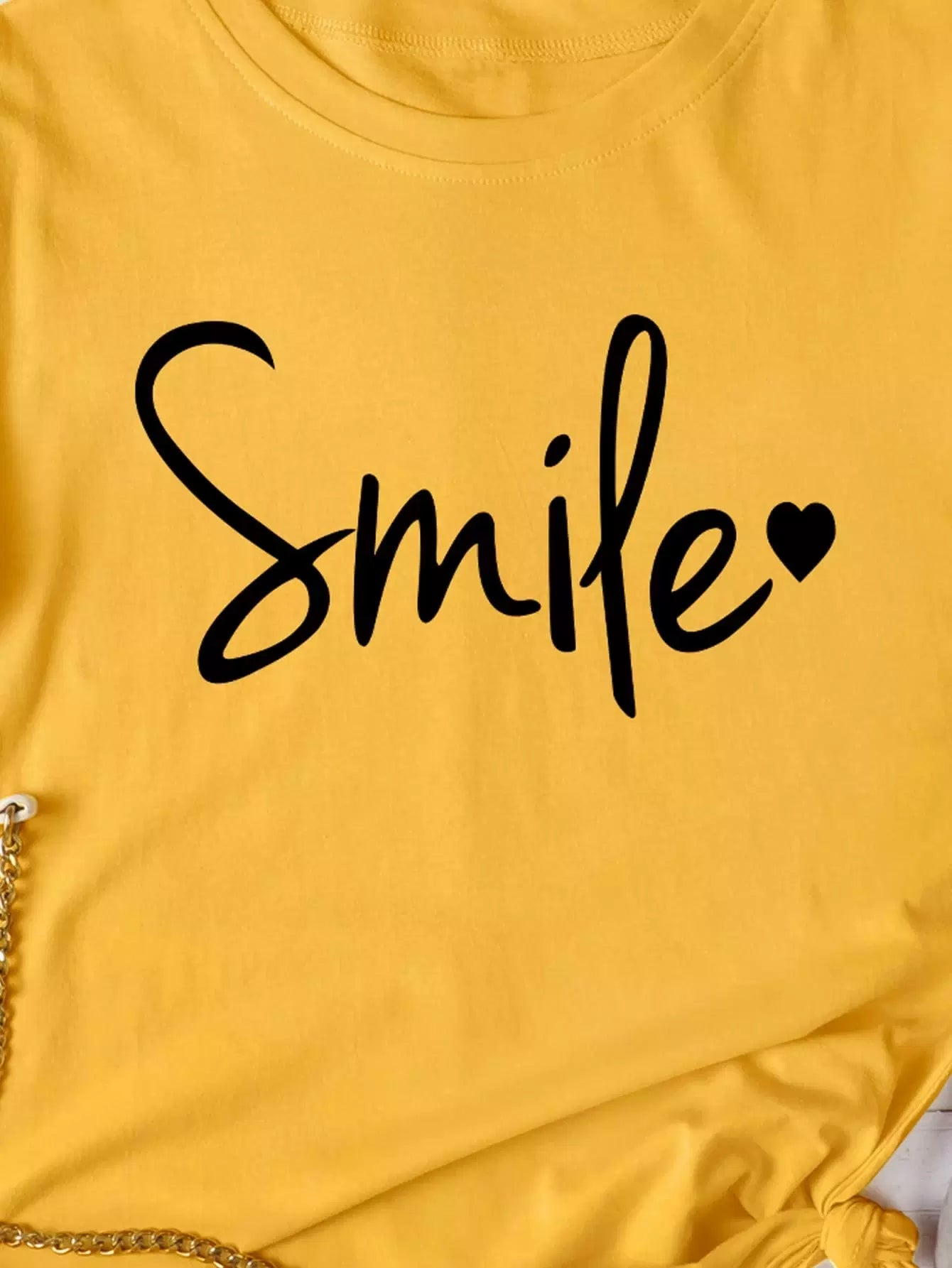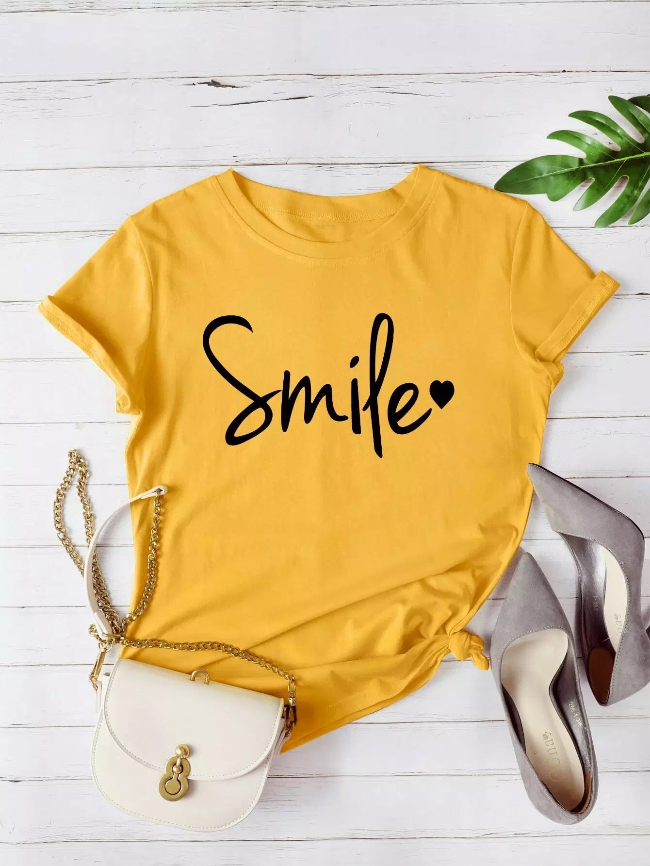 للنساء - تي شيرت قصير الأكمام برسومات الحروف
