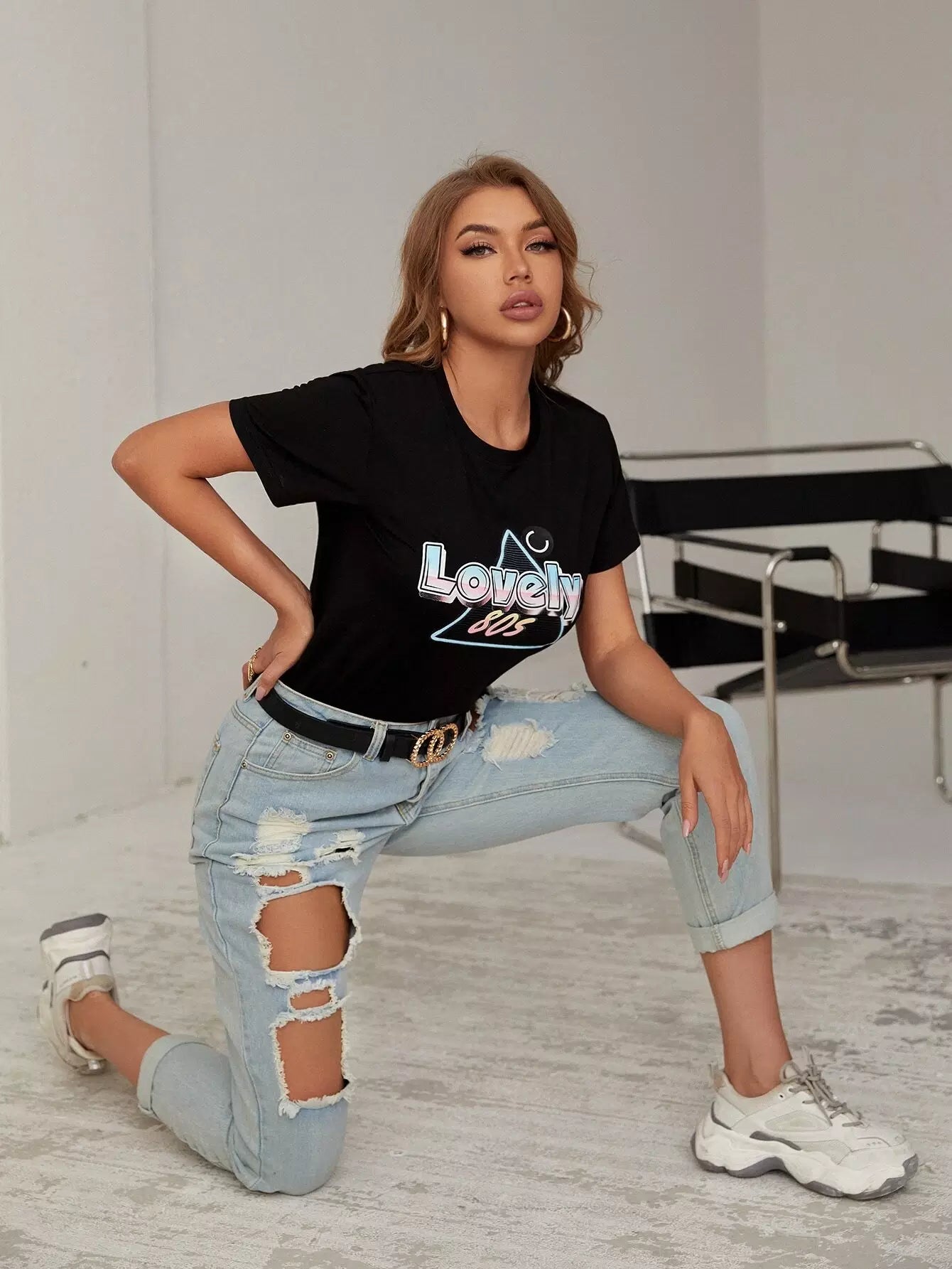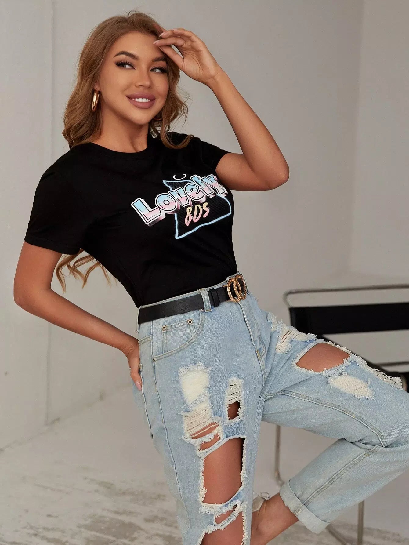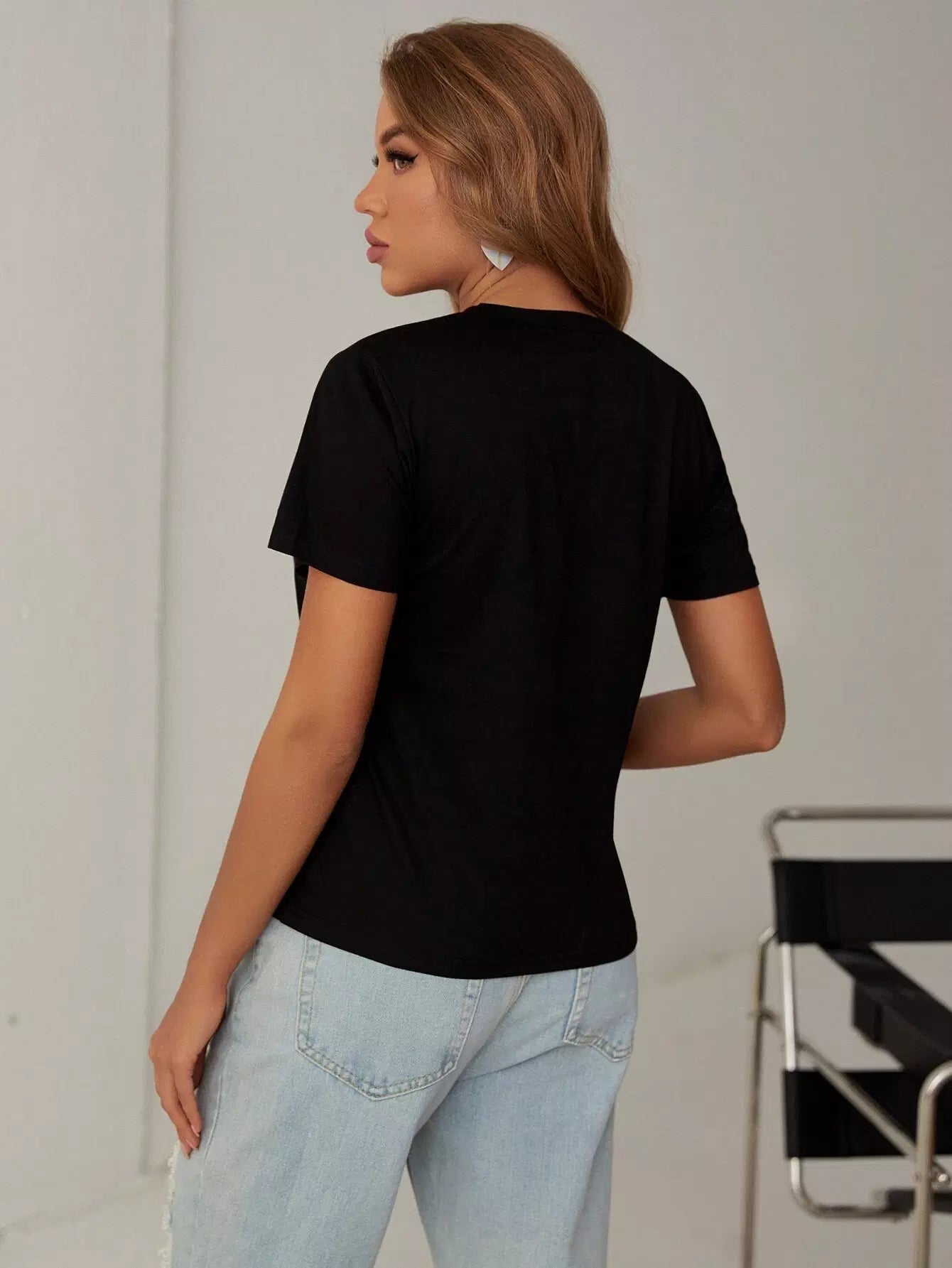 تي شيرت بأكمام قصيرة برسومات حرفية