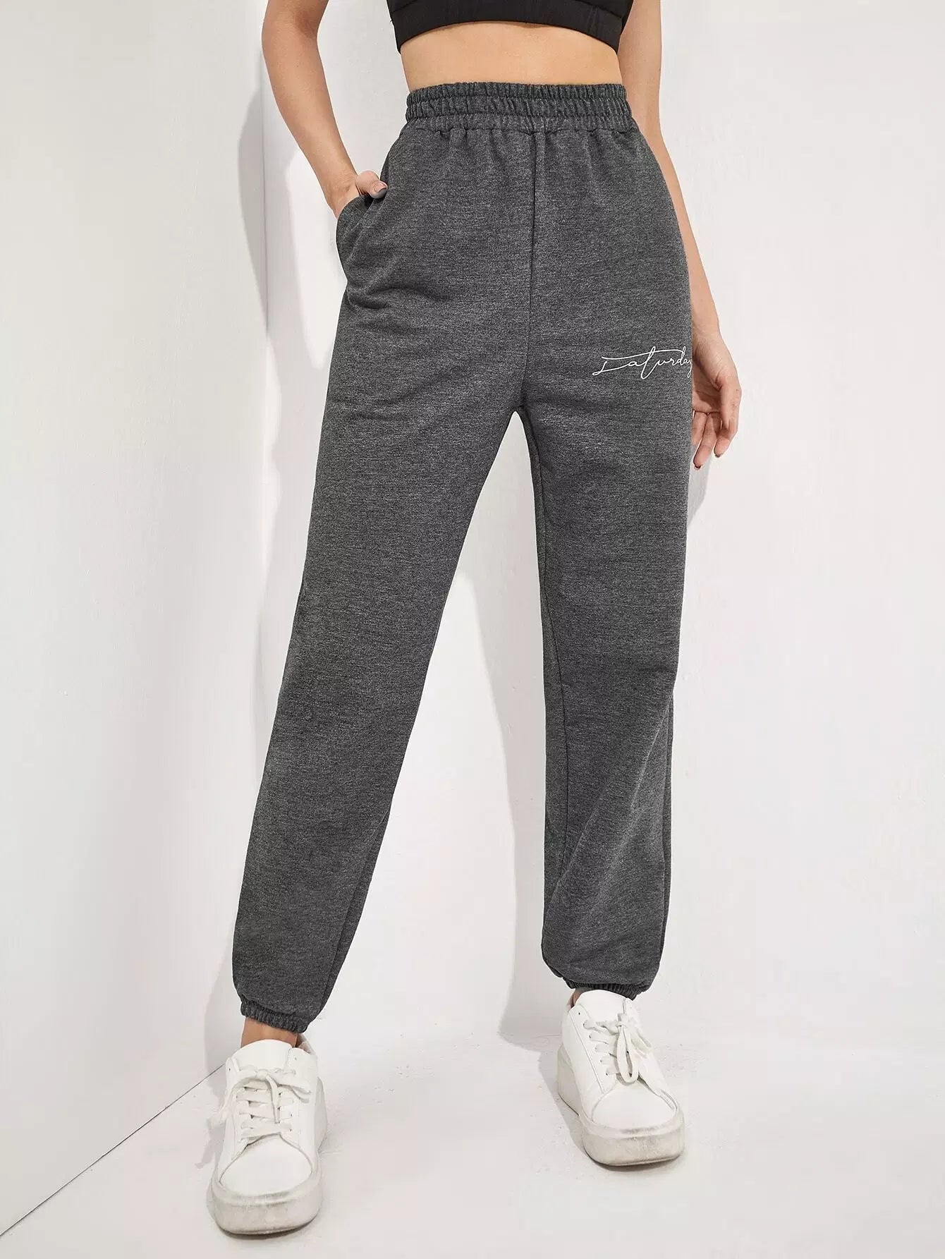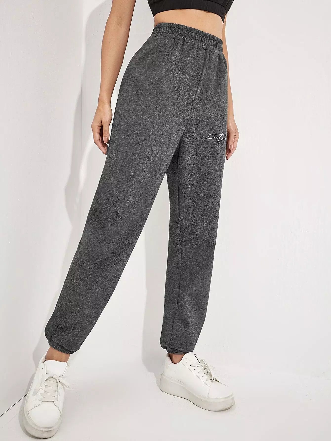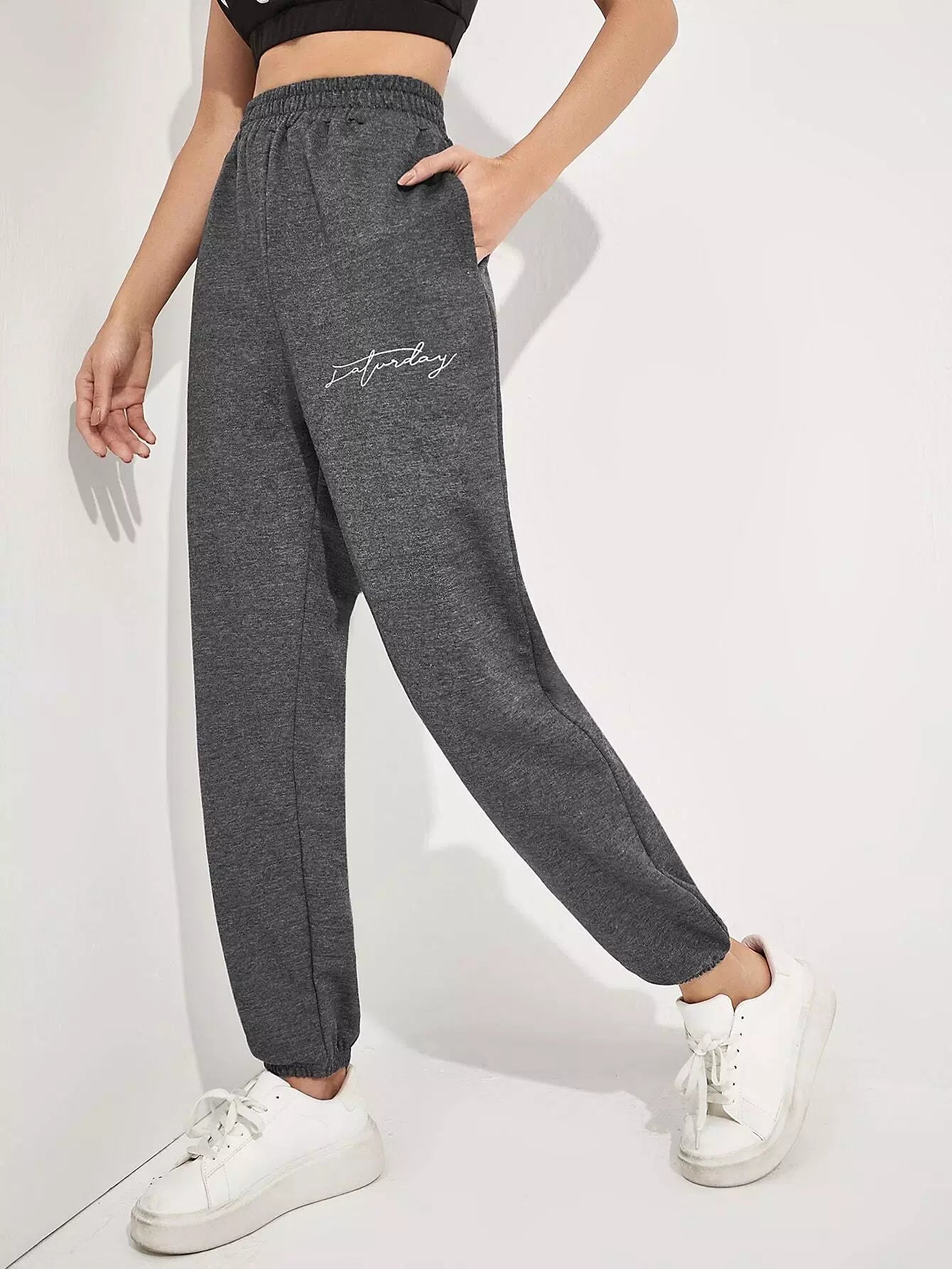 للنساء - بنطال رياضي بجيب مائل ورسومات الحروف